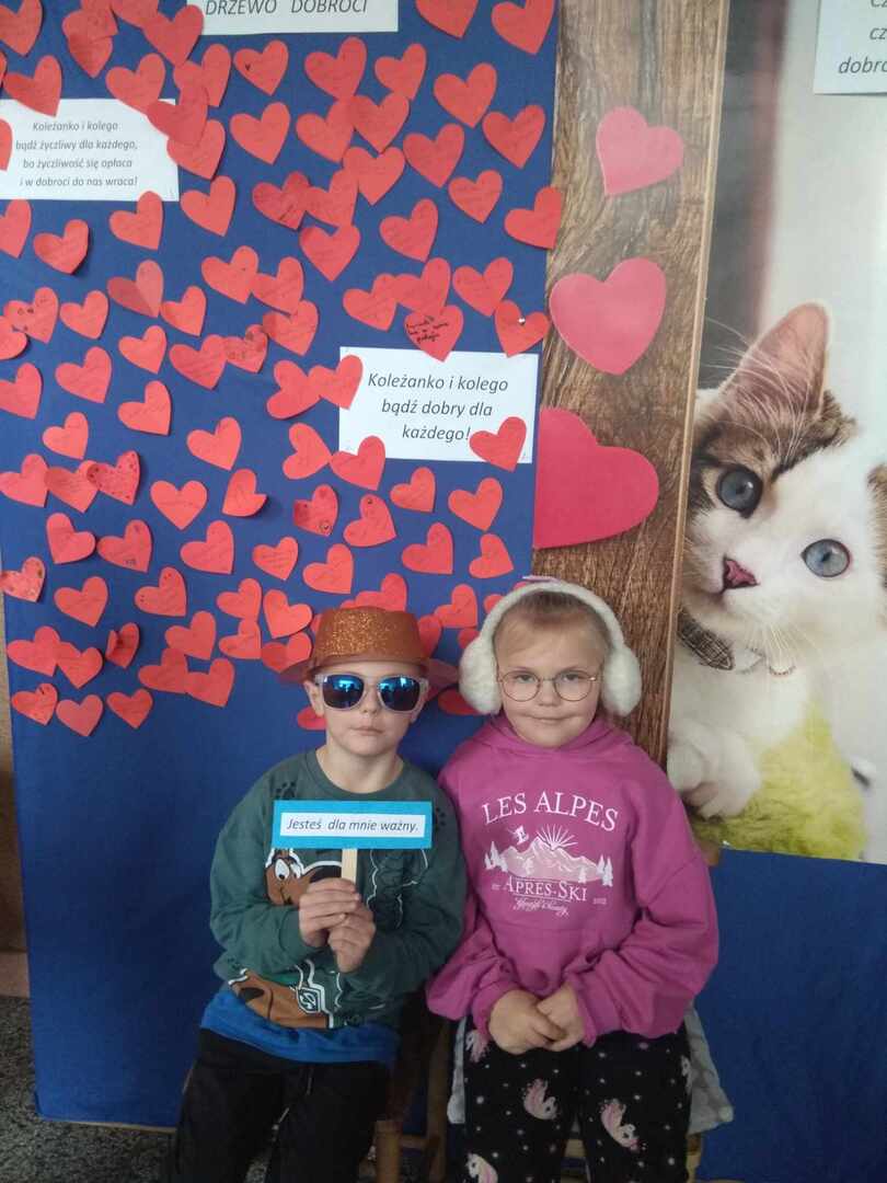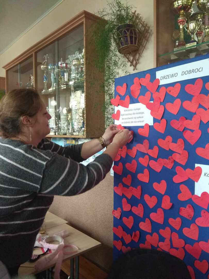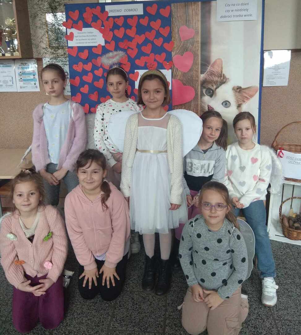 Światowy Dzień Dobroci to inicjatywa organizowana cykliczne od 1998 roku przez Światowy Ruch Dobroci, przypadająca na 13 listopad. Dzień ten ma podkreślić dobre uczynki, pozytywną siłę i życzliwość. Nasza szkoła przyłączyła się do tej kampanii. Wychowawczyni klasy II Beata Klause wraz ze swoimi uczniami zorganizowała taki dzień w murach naszej szkoły. Już od samego rana na szkolnych korytarzach pojawiły się przysłowia, sentencje i cytaty mówiące o tym, że warto czynić dobro. W klasie II pojawiły się dobre duszki, które w tajemniczych okolicznościach podrzucały do plecaków wcześniej przygotowane laurki dla wylosowanego kolegi lub koleżanki. Po otrzymanych kartkach na twarzach dzieci zagościły szczere uśmiechy. Następnie akcja przeniosła się do pozostałych klas gdzie każdy uczeń oraz nauczyciel zostali obdarowani przez szkolne aniołki słodkim cukierkiem z dobrym słowem na przyszłość. Aniołki rozdały także uczniom i nauczycielom czerwone serca, na którym należało wpisać dobry uczynek, który się wykonało. Z uzupełnionych serc na korytarzu powstało Szkolne drzewo dobroci przy, którym podczas przerw chętni uczniowie pozowali do zdjęć. Głównym celem akcji było promowanie inicjatyw mających na celu podawanie ręki drugiemu człowiekowi i przypomnienie młodzieży o zasadach dobrych manier, życzliwości i empatii. Tego dnia nie zabrakło uśmiechu i ciepłych słów.