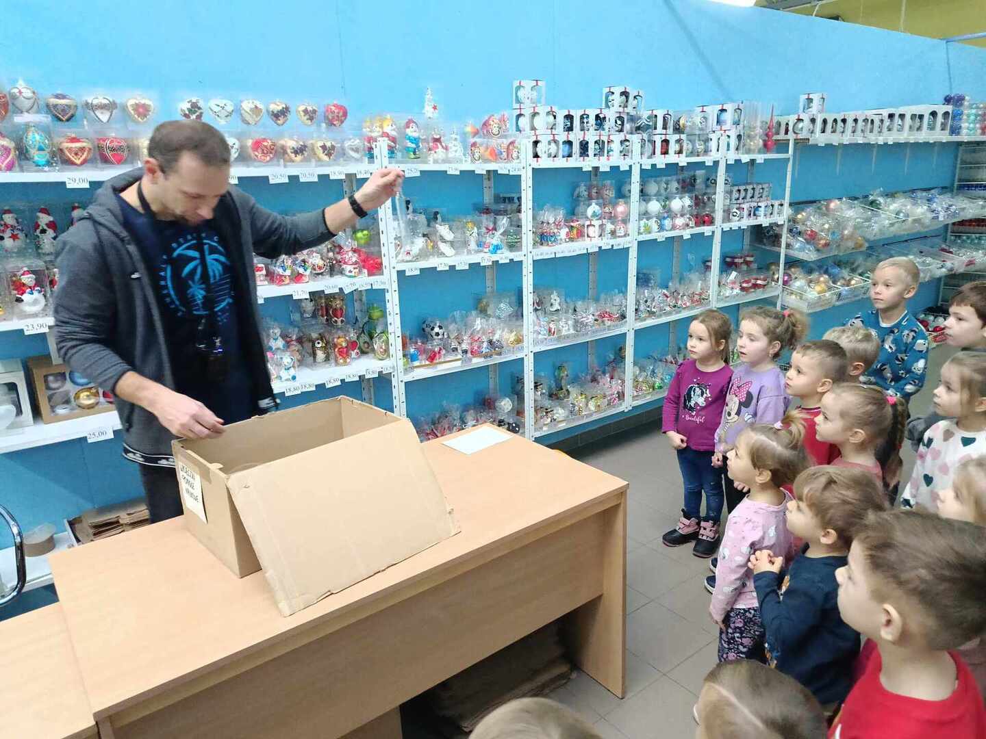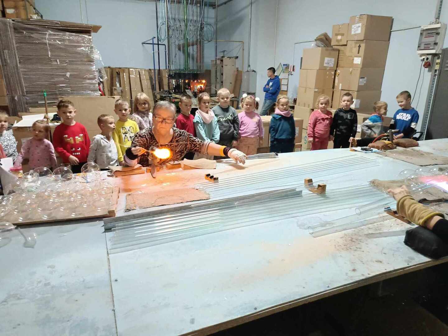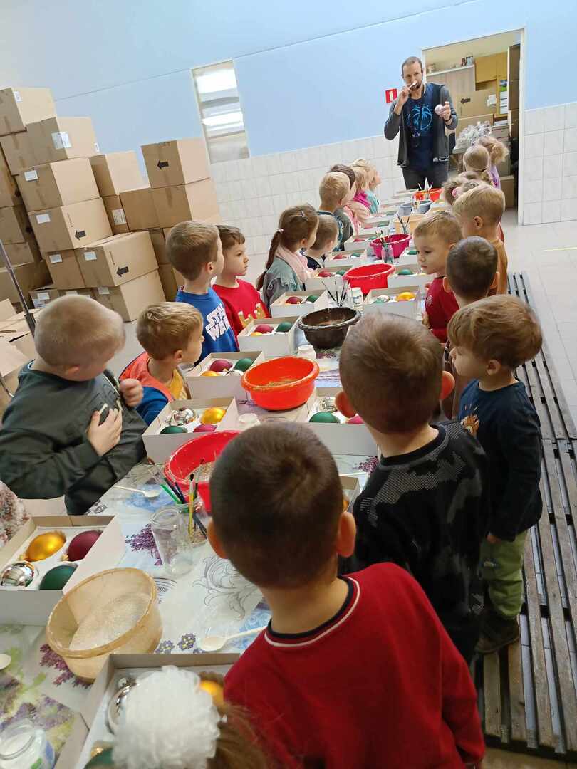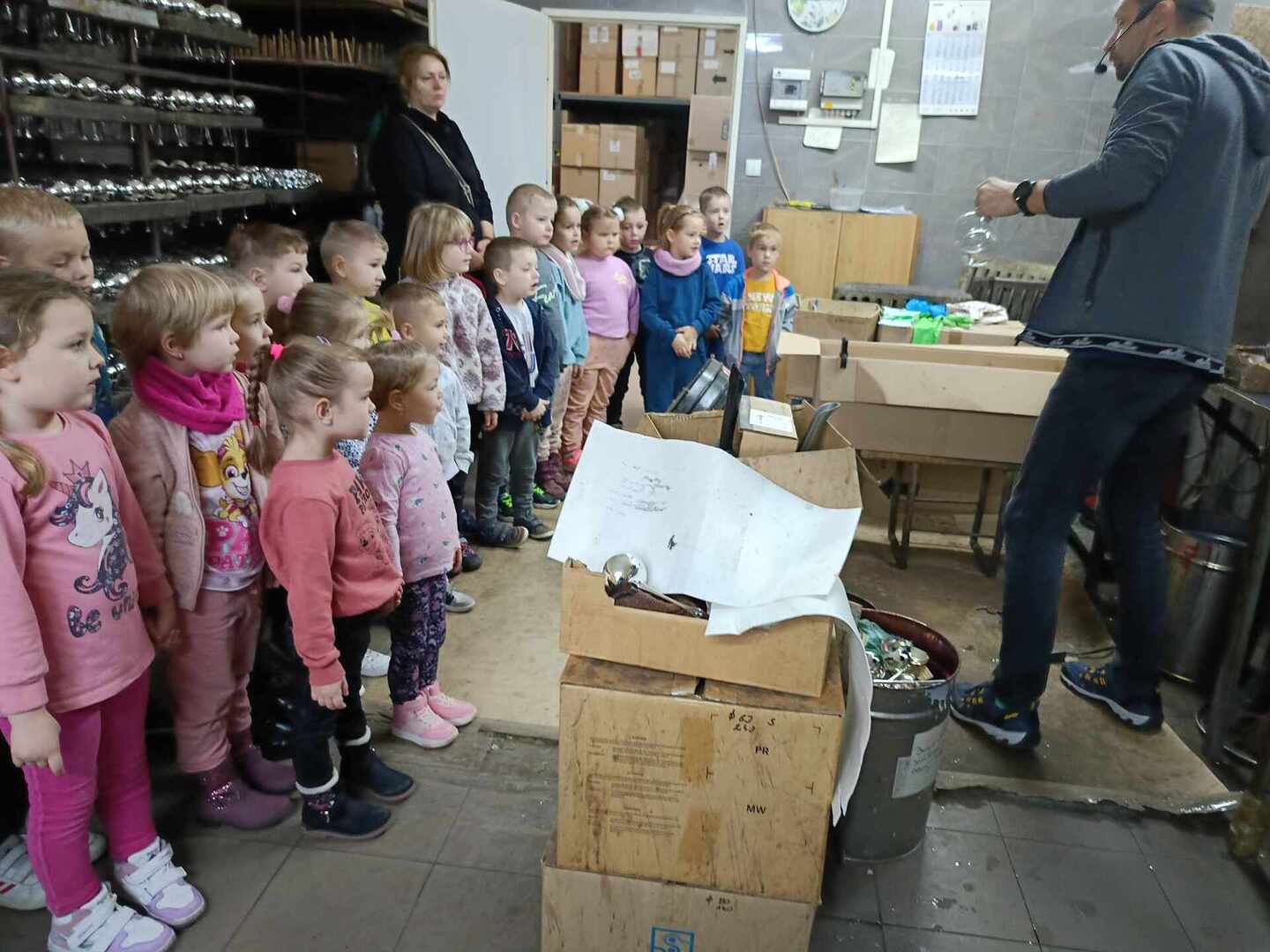 Przedszkolaki z grupy 3,4 latków i 5,6 latków odwiedziły fabrykę bombek LOTOS w Nowej Obrze. Dzieci poznały etapy powstawania najważniejszych i najpiękniejszych, świątecznych ozdób choinkowych. Każdy z uczestników miał możliwość dekorowania własnych bombek.