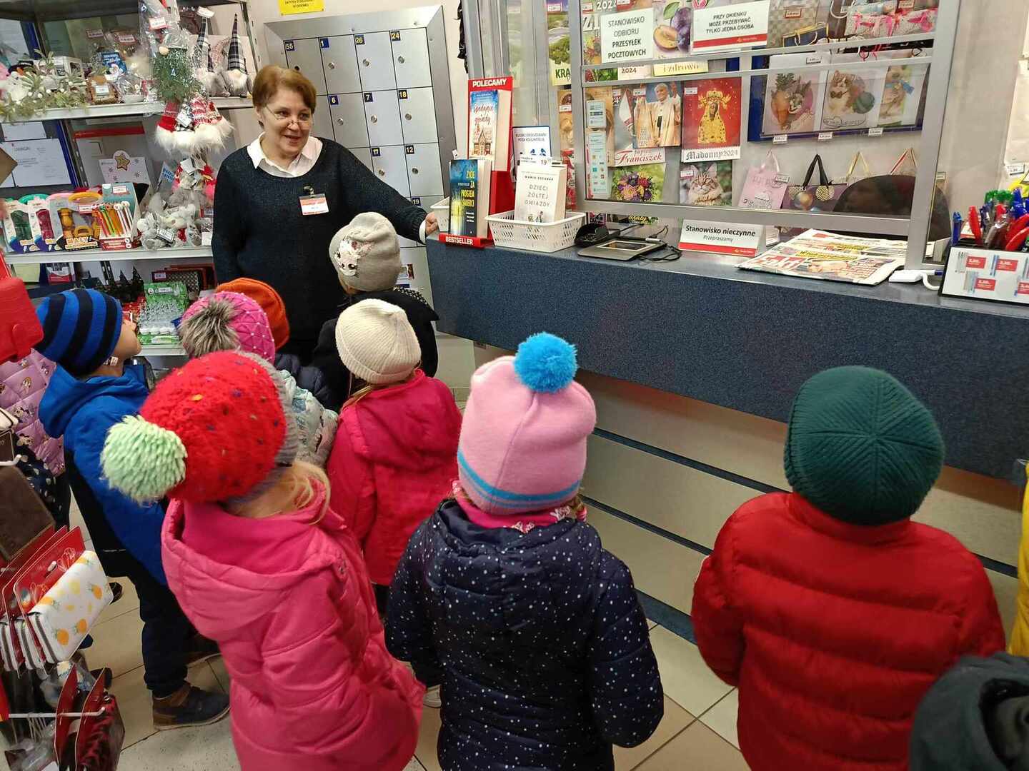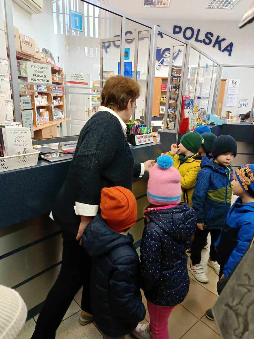 Następnym punktem wyjazdu był Urząd Pocztowy w Koźminie Wlkp. Tam dzieci poznały pracę urzędników i listonoszy oraz to w jaki sposób wysłać list do św. Mikołaja.