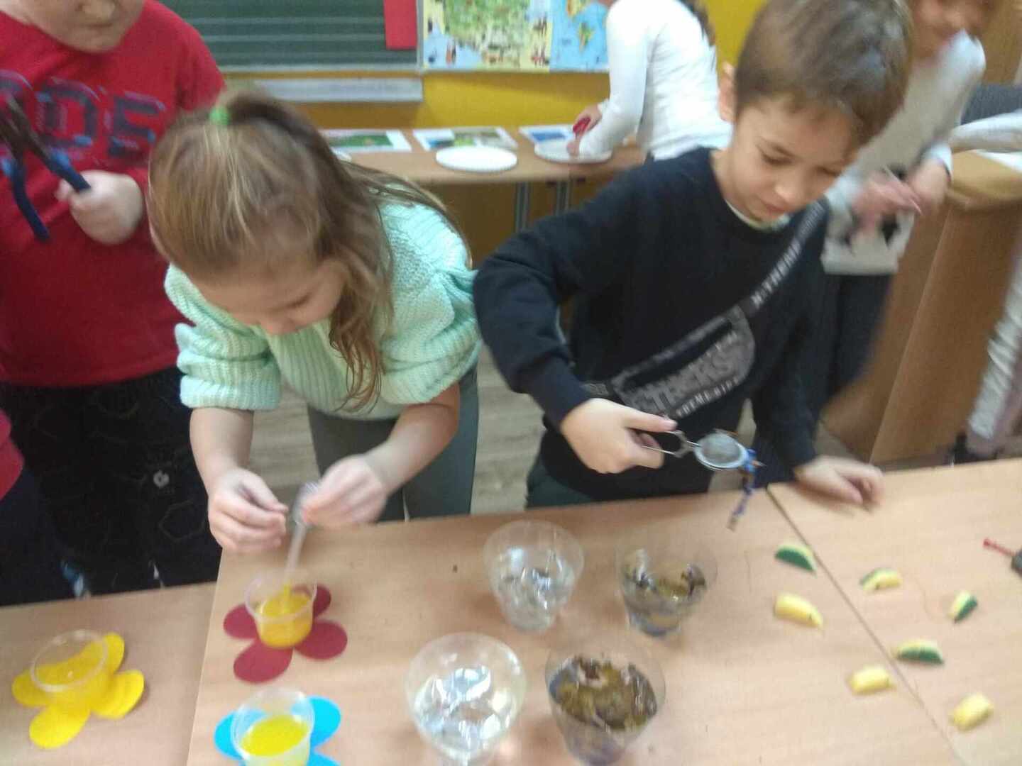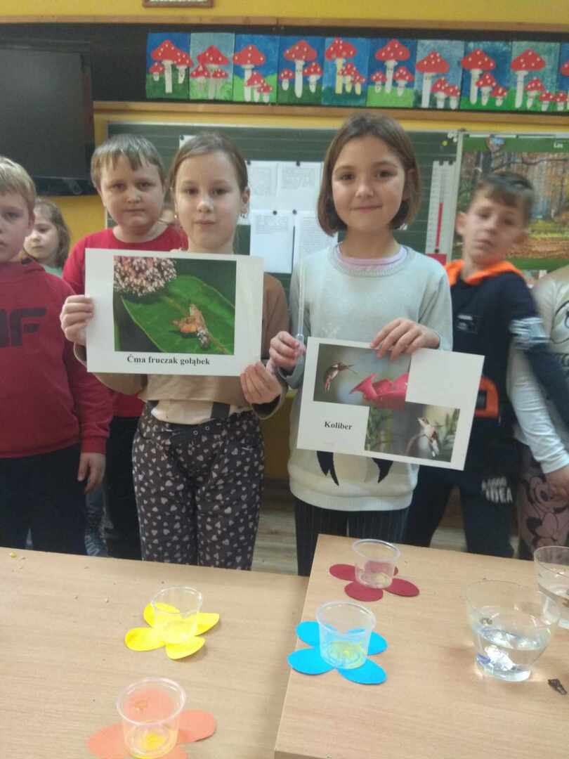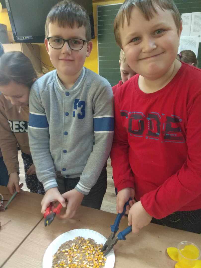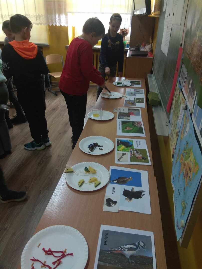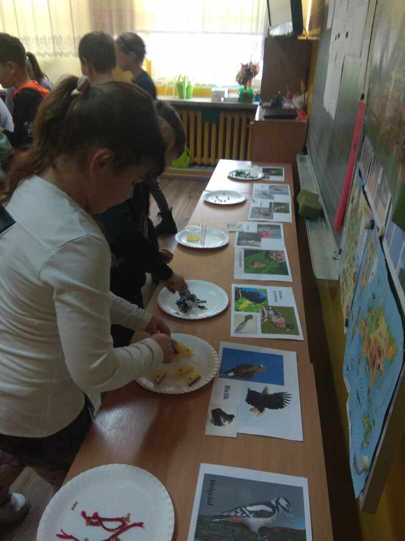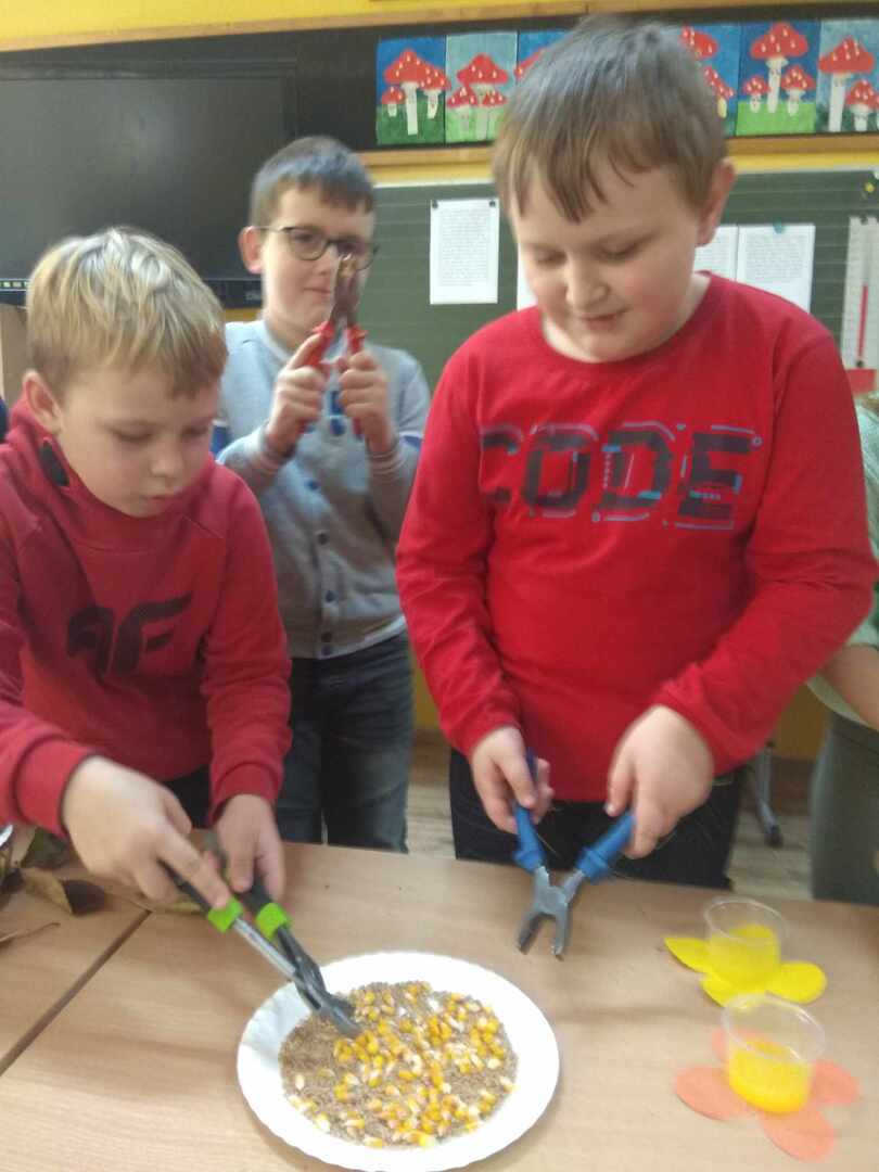 Czy ptaki mają zęby? Czy ptaki plują? W jaki sposób i co jedzą? Na te pytania uczniowie klasy 2 znaleźli odpowiedź podczas kolejnych zajęć z cyklu „Przyroda z klasą”. Dzięki obejrzanym filmom, prezentacjom oraz wykonanym doświadczeniom uczniowie dowiedzieli się jak odżywiają się różne gatunki ptaków np. kaczki, dzięcioły, sikorki, kolibry, wróble, grubodzioby. Wykorzystując przedmioty codziennego użytku tj.: pipety, zaparzacze do herbaty, obcęgi, klamry do włosów, rozszywacze i pęsety, które imitowały ptasie dzioby, uczniowie poznali jak ptaki zdobywają pożywienie. Po tych zajęciach każde dziecko wie, że ptaki zębów nie mają, a dzięki różnorodnym dziobom pożywienie zdobywają.