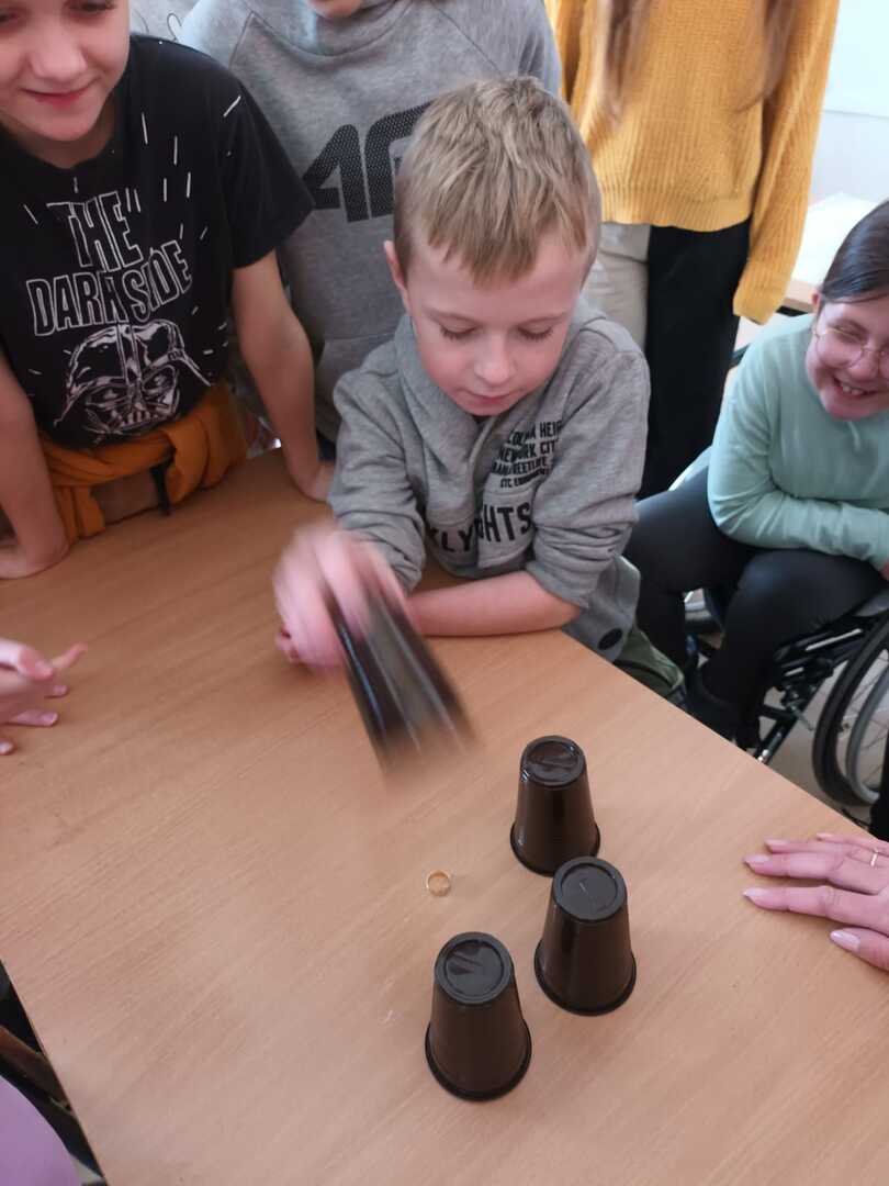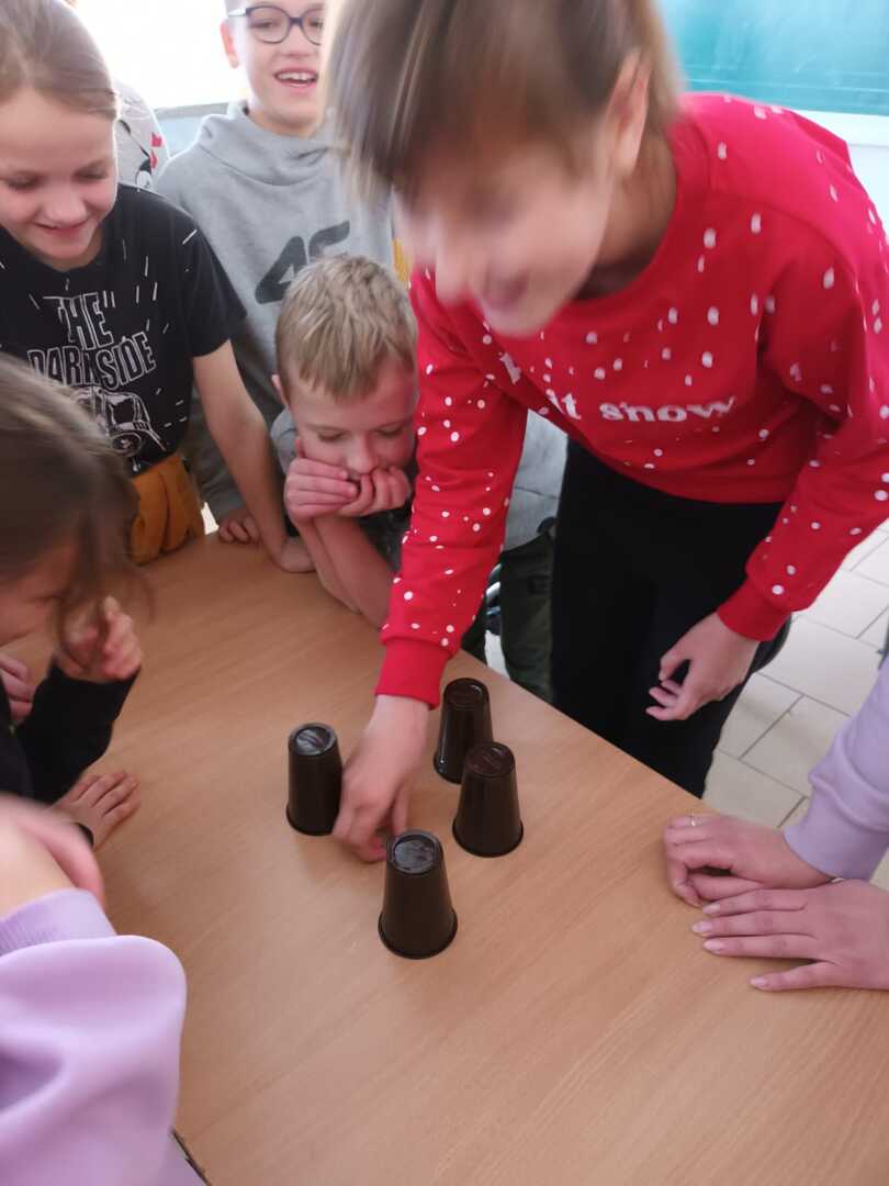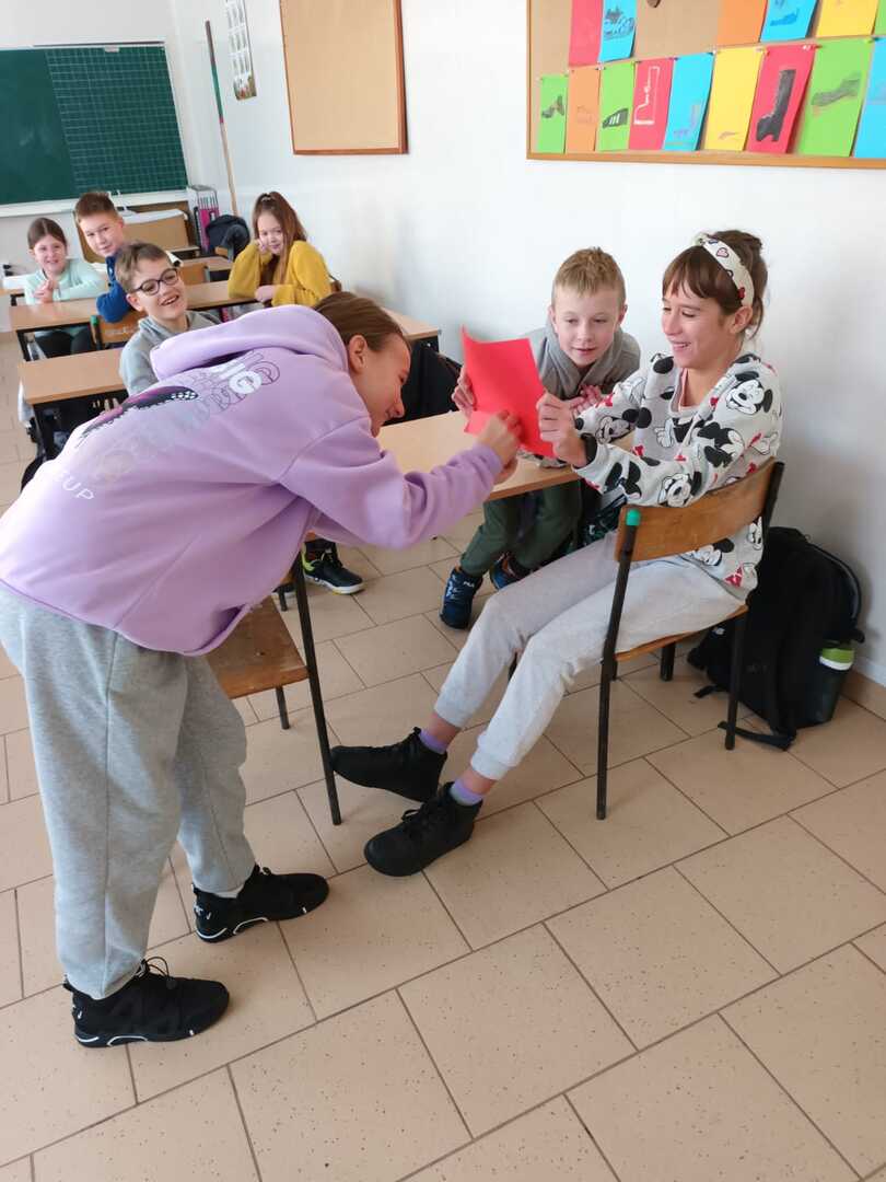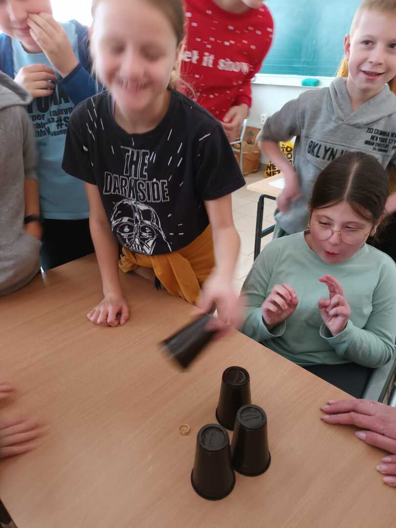 Kwiki, piski, śmiechy... W takiej atmosferze przebiegały zabawy i wróżby andrzejkowe czwartoklasistów. Na pozór nic nadzwyczajnego: serca z imionami; kubeczki ukrywające obrączkę, różaniec, monetę, klucze, lanie wosku przez dziurkę od klucza, a następnie odczytywanie wróżby z cienia woskowej rzeźby - na koniec marsz butów do drzwi, a ileż radości! Dwie wspaniałe mamy pomogły, aby uczniowie bawili się bezpiecznie.