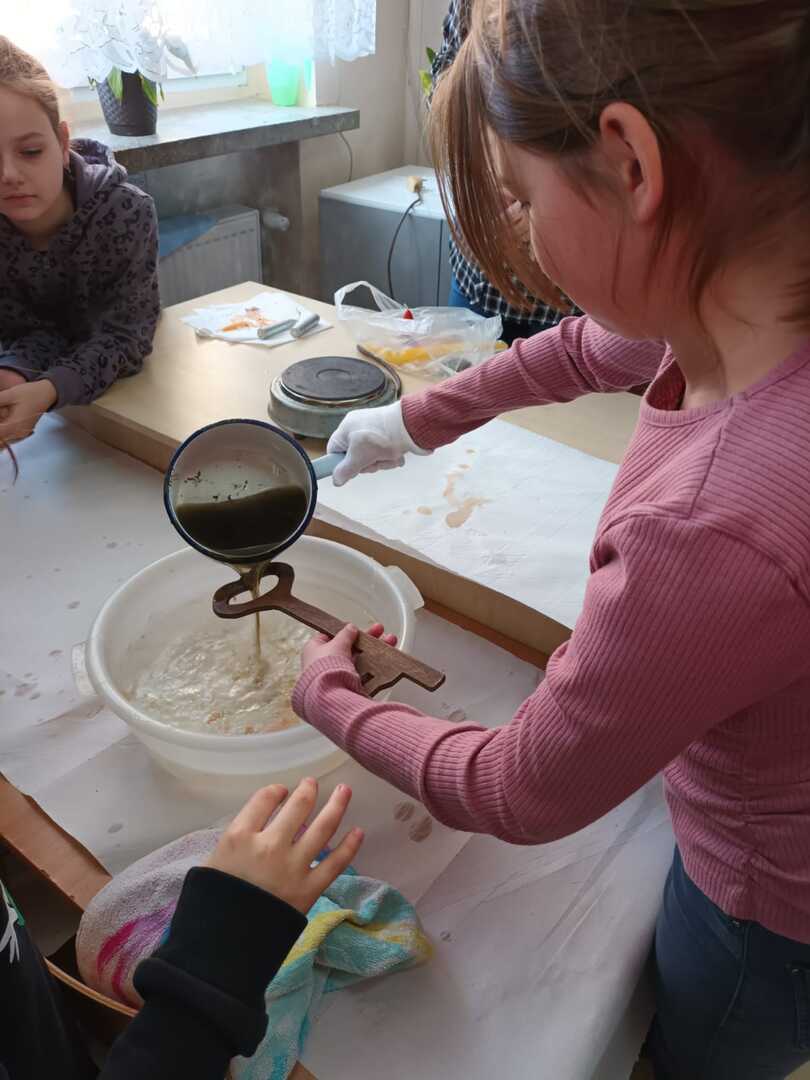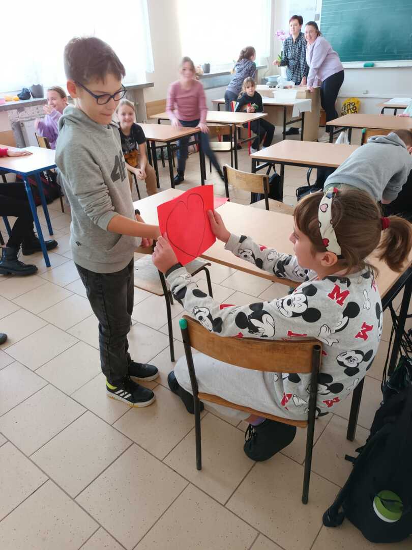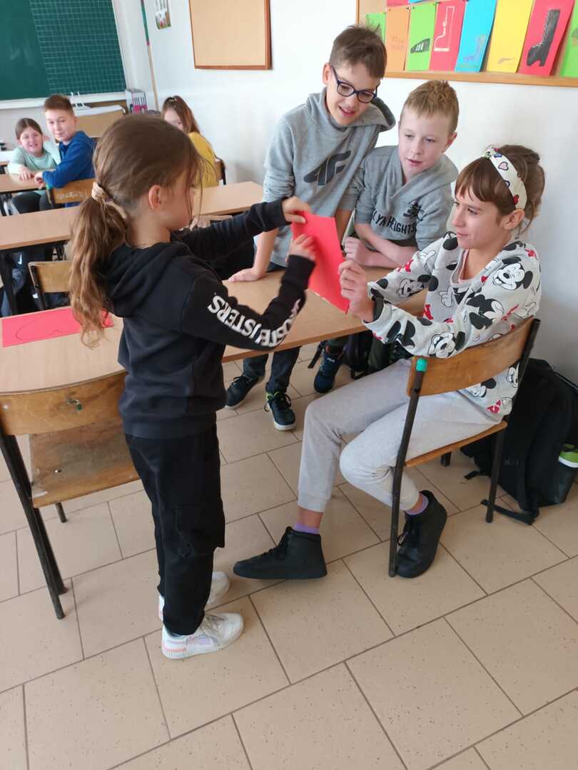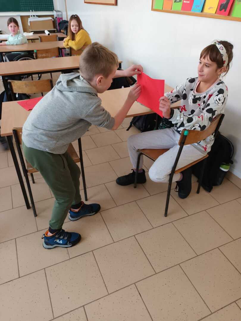 Kwiki, piski, śmiechy... W takiej atmosferze przebiegały zabawy i wróżby andrzejkowe czwartoklasistów. Na pozór nic nadzwyczajnego: serca z imionami; kubeczki ukrywające obrączkę, różaniec, monetę, klucze, lanie wosku przez dziurkę od klucza, a następnie odczytywanie wróżby z cienia woskowej rzeźby - na koniec marsz butów do drzwi, a ileż radości! Dwie wspaniałe mamy pomogły, aby uczniowie bawili się bezpiecznie.