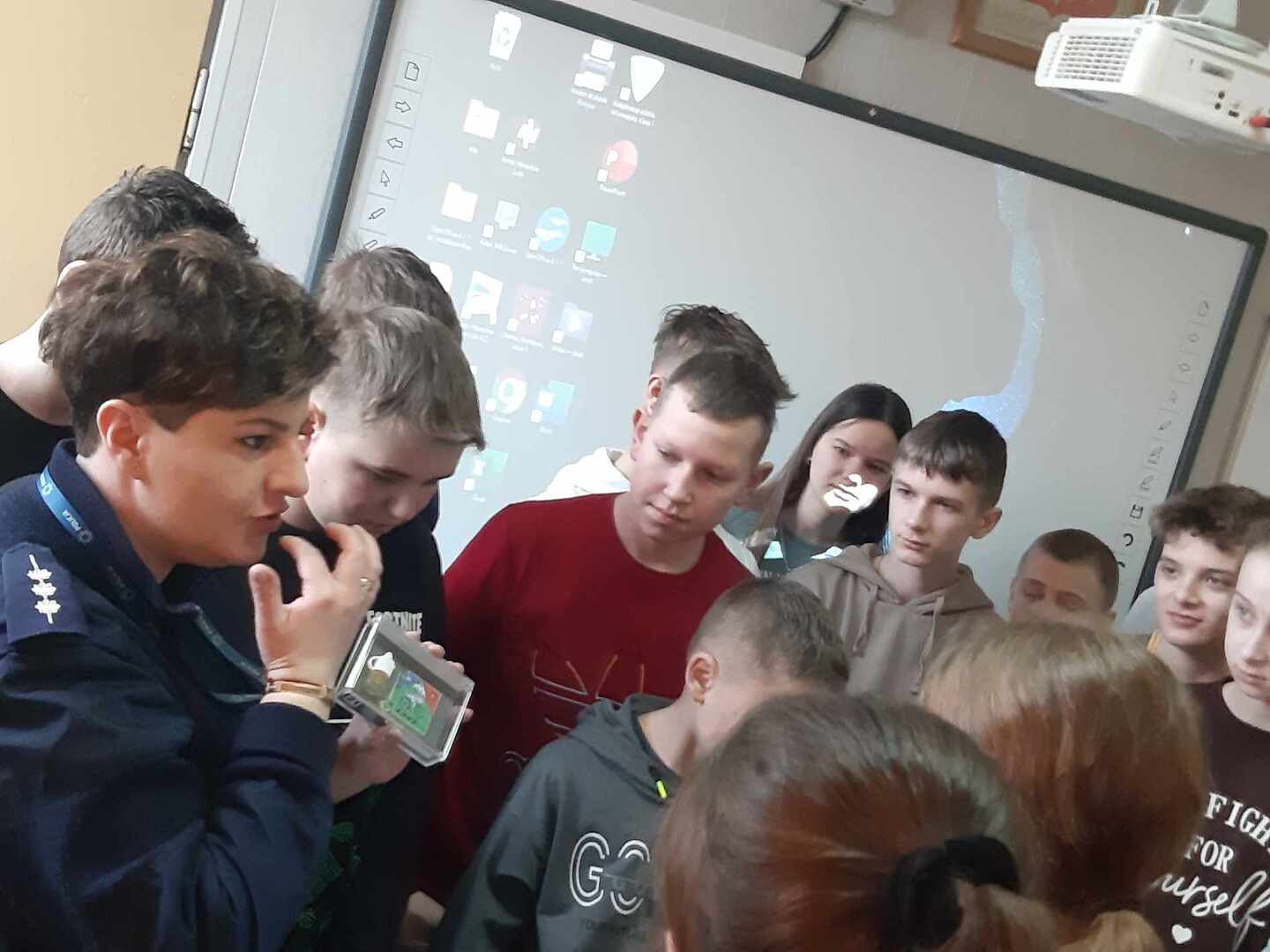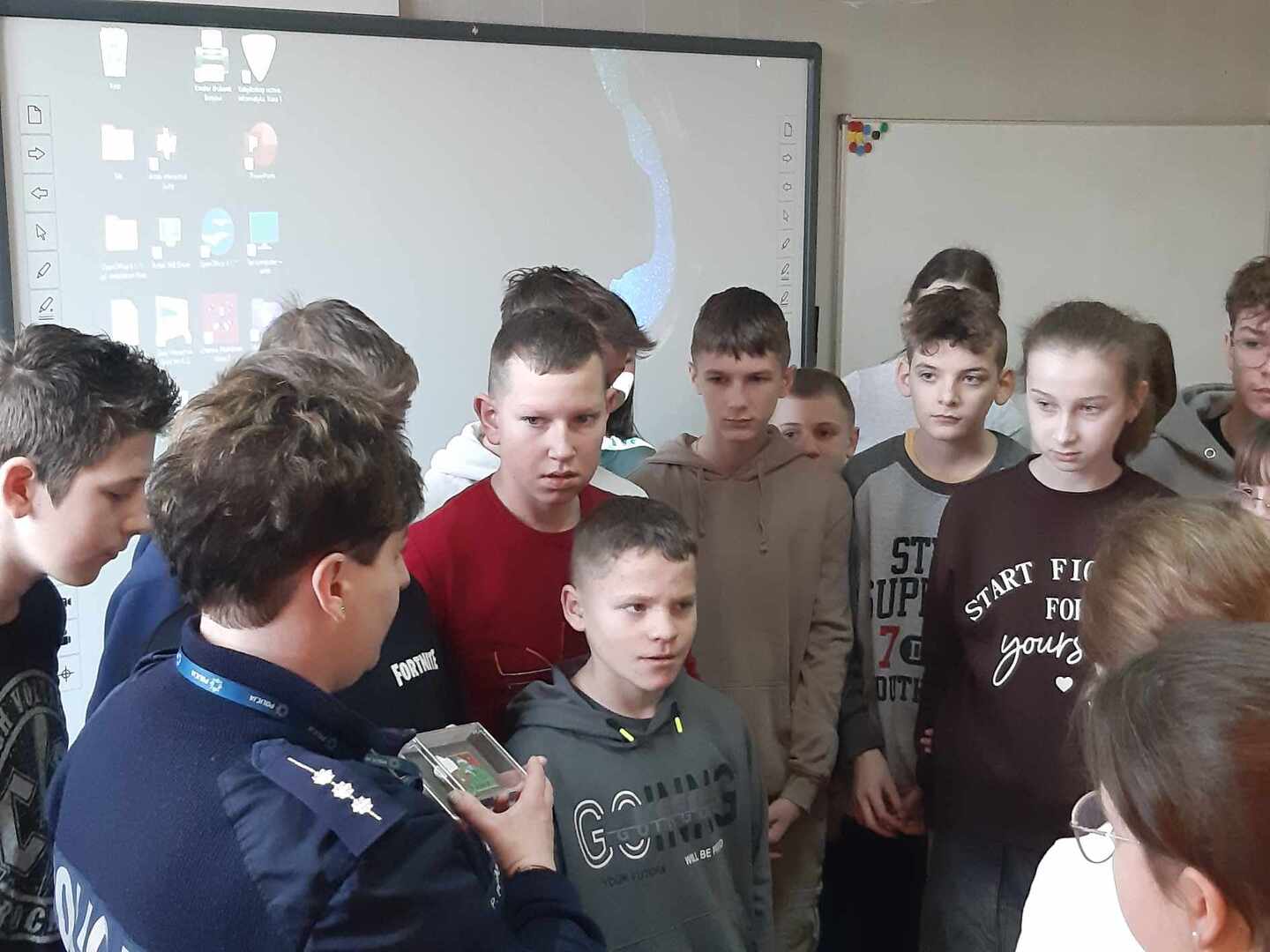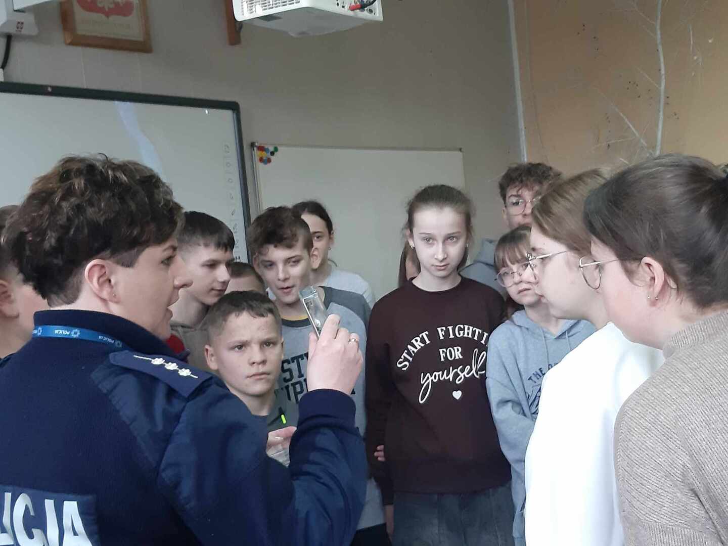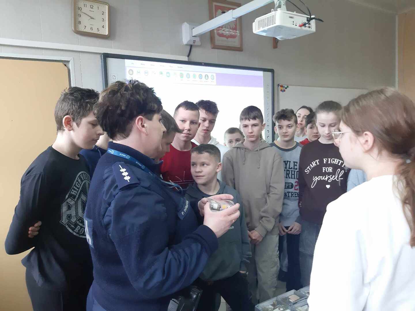 Komenda Powiatowa Policji w Krotoszynie – st. asp. Pauliną Potarzycką oraz naszym dzielnicowym asp. Damianem Przybyłem na temat „Współczesnych uzależnień młodzieży i ich wpływu na zachowanie i sposoby radzenia sobie z nimi”. Pani aspirant rozmawiała z uczniami o zagrożeniach związanych z zażywaniem narkotyków i dopalaczy. Omówiła prawne, zdrowotne i społeczne konsekwencje zażywania substancji psychoaktywnych.