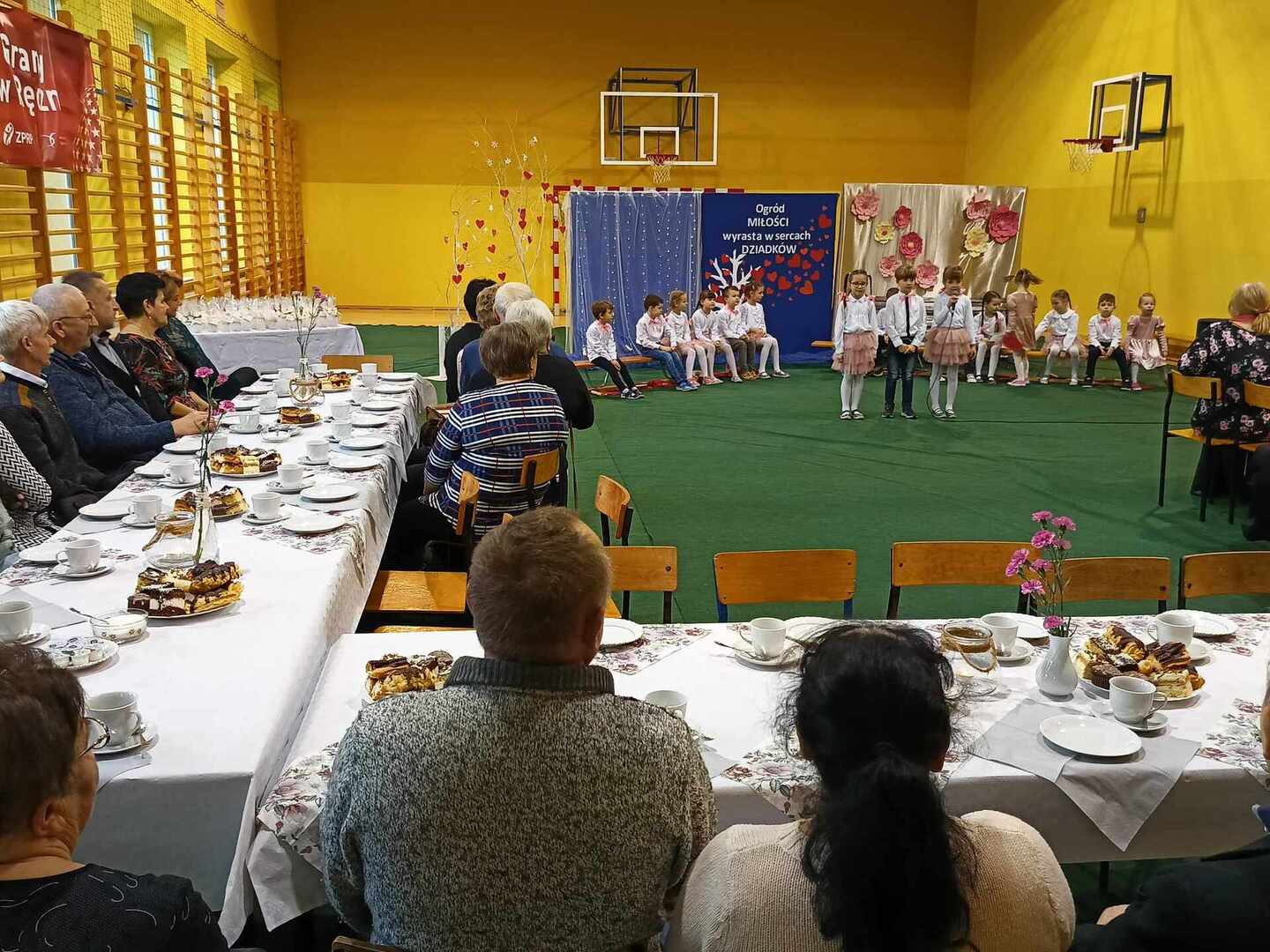 Dzieci z oddziału "0" również podziękowały swoim dziadkom za opiekę, dobre słowo, wychowanie oraz obecność. Zaproszeni dziadkowie mieli okazję wysłuchać i zobaczyć cześć artystyczna, która utwierdziła ich w przekonaniu, że wnukowie to najlepszy prezent jaki mogli otrzymać. Na zakończenie zostały wręczone upominki oraz serdeczne życzenia. Mogliśmy zobaczyć usmiechy dziadków, łzy wzruszenia oraz uściski z najbliższymi. Był to dzień pełen emocji.