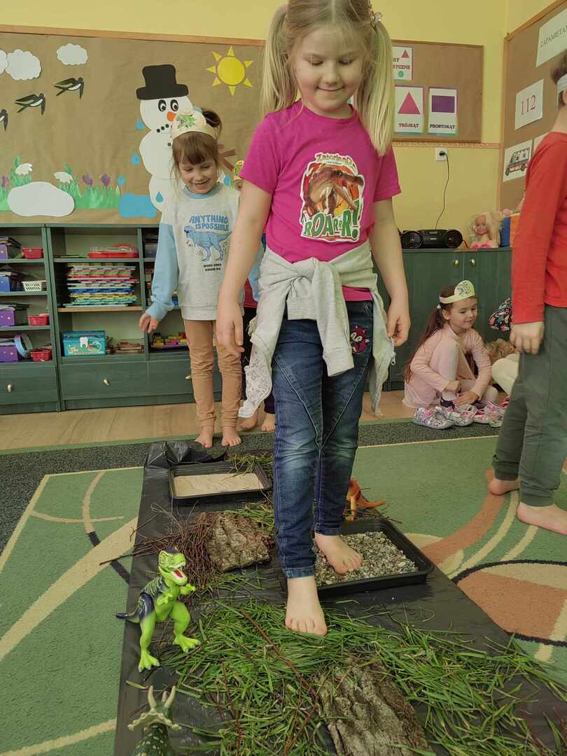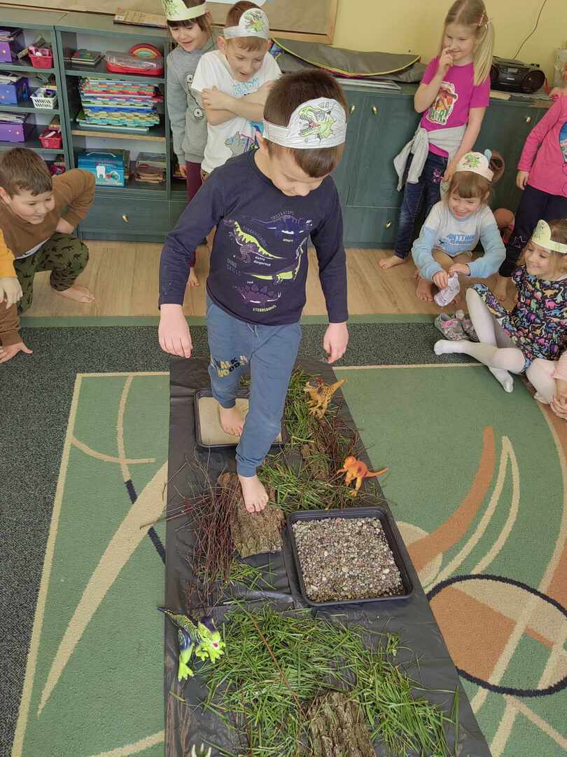 Przedszkolaki z naszych oddziałów włączyły się w obchody Dnia Dinozaura. Od samego rana oglądały przyniesione przez siebie zabawki, albumy, książki o dinozaurach. Podczas zajęć przeniosły się w prehistoryczny świat. Dowiedziały się jak wyglądały i żyły dinozaury, jak się poruszały i jakie wydawały dźwięki. Również miały okazję poznać zawód paleontologa i przyjrzeć się jego pracy. Dino zabaw nie było końca. Dzień ten przeniósł nas w odległy i wciąż tajemniczy świat. Okazuje się, że dinozaury są niemal dla każdego przedszkolaka fascynującymi zwierzętami.