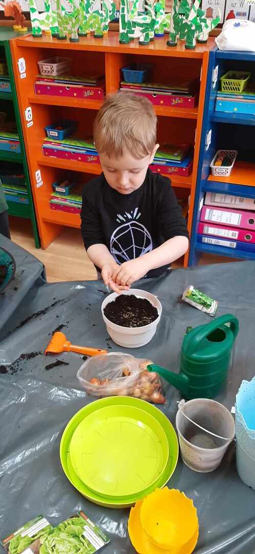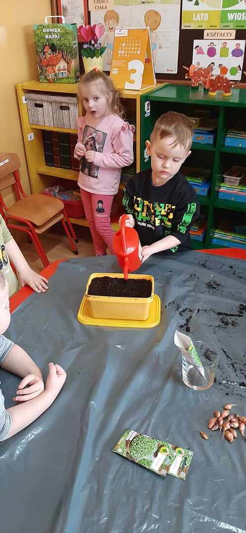 Wraz z nadchodzącą wiosną przedszkolaki z Wrotkowa chciały choć przez chwilę wcielić się w rolę ogrodników i stworzyły w swoim przedszkolu kolorowy kącik ogrodniczy. Było sadzenie kwiatków i warzyw m.in. cebuli, zasialiśmy rzeżuchę, owies, pietruszkę, sałatę, a nawet słonecznik. Wszystkie dzieci pracowały z dużym zaangażowaniem i teraz przez kolejne dni bedą mogły podziwiać efekty swojej pracy oraz rozwój roślin.