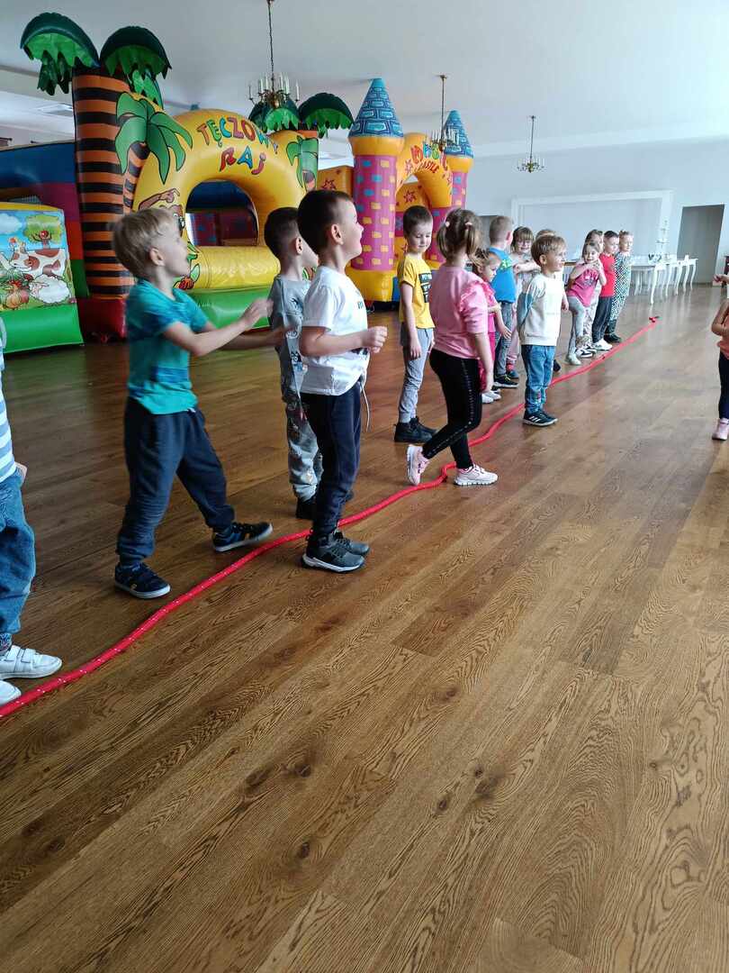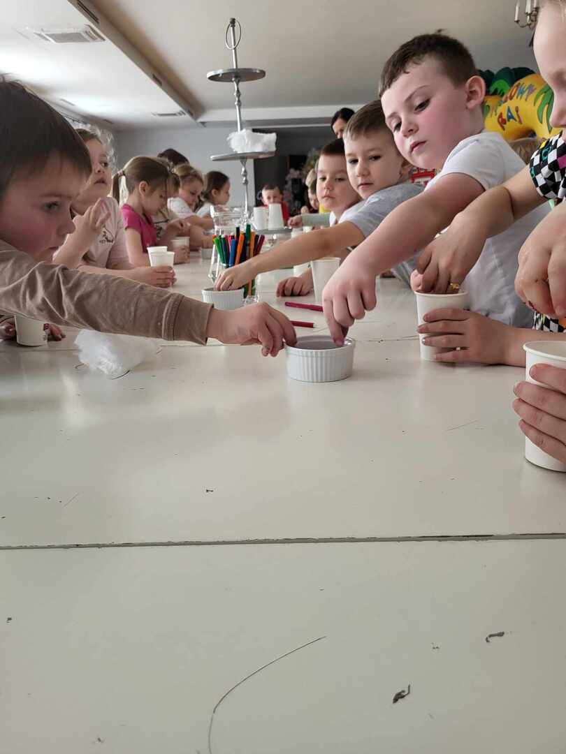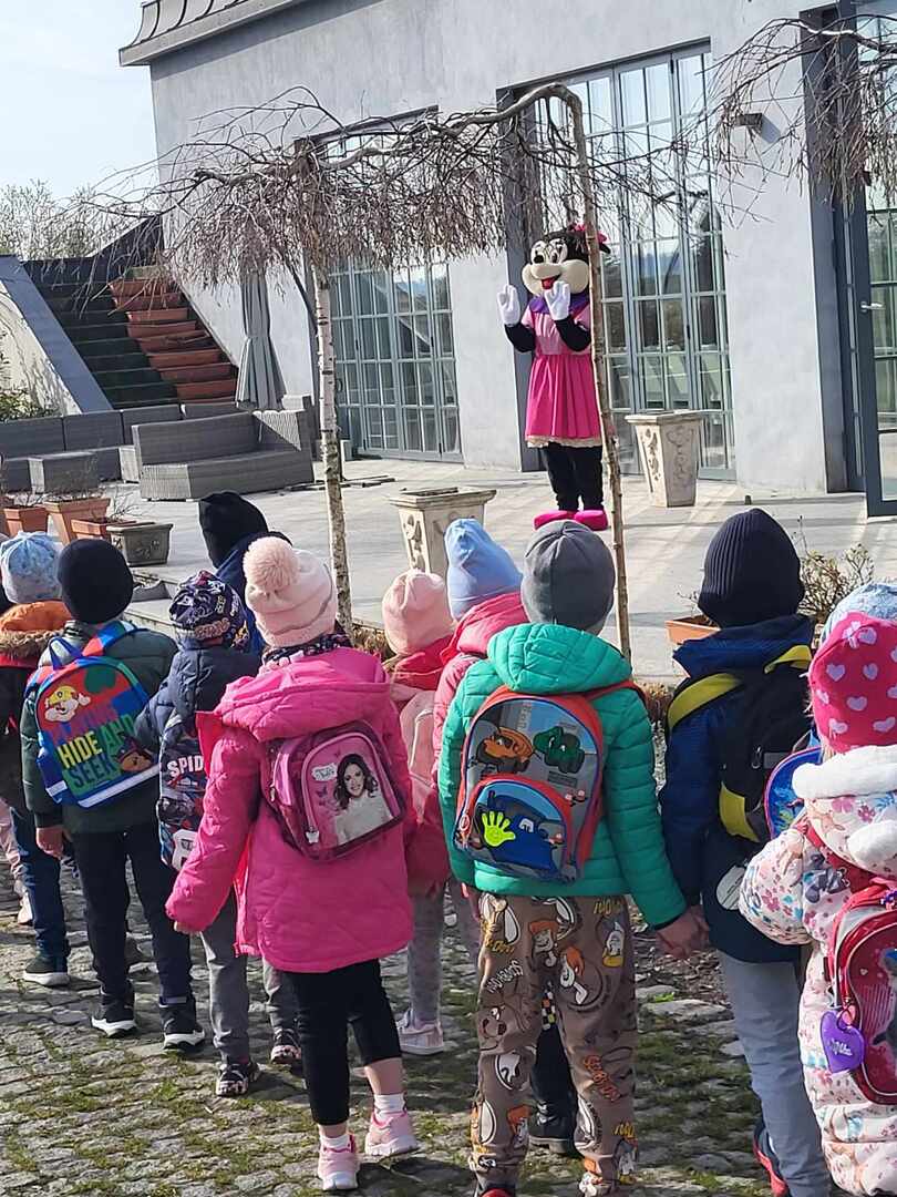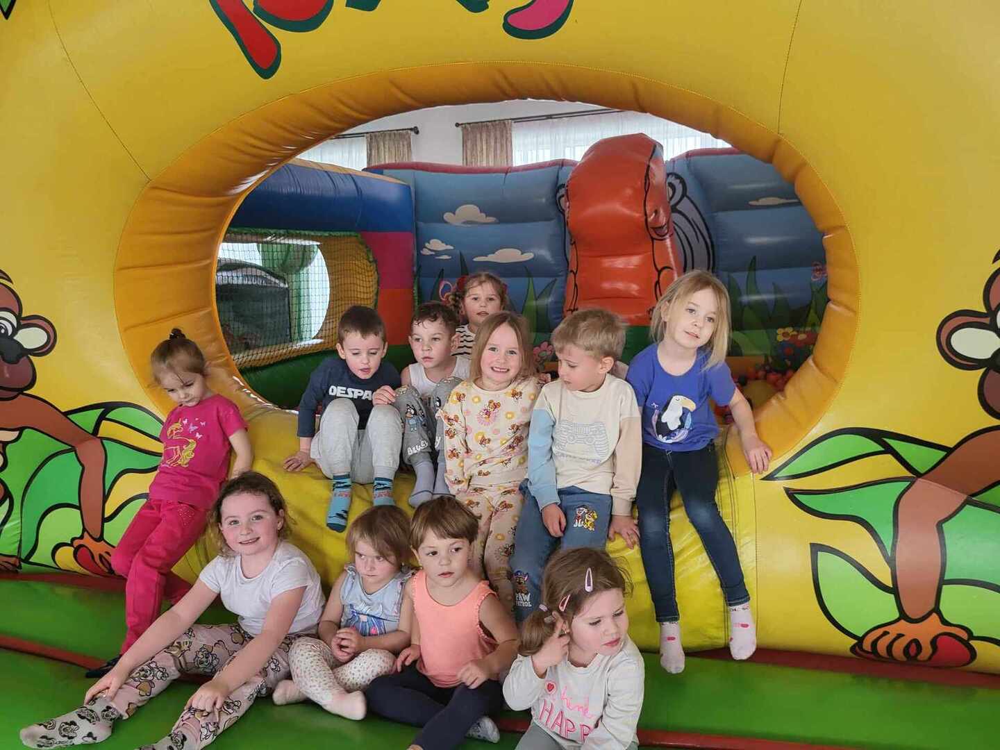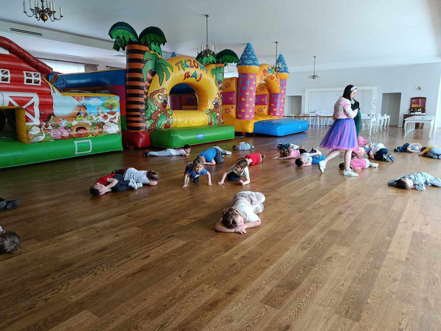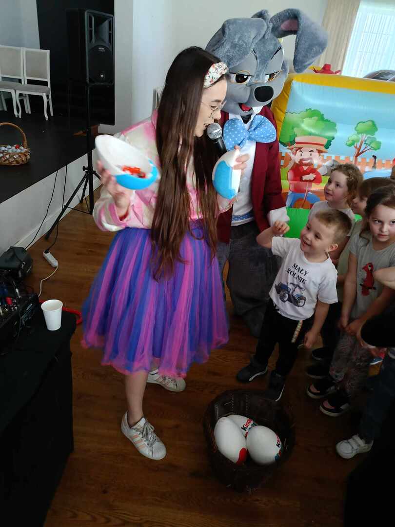 Oddziały przedszkolne w poszukiwaniu wielkanocnego ZAJĄCA W słoneczny środowy poranek dzieci zawitały do Pałacu w Orli , aby przygotować się do świąt Wielkanocnych. Na początku na dzieci czekała Myszka Miki wprowadzając dzieci do radosnego nastroju z pomocą pani Kamili. Czas upłynął radośnie i szybko wypełniając powierzone zadania. Przedszkolaki zmierzyły się z takimi zmaganiami jak: przygotowanie ciasteczek, ozdabianie pisanek oraz malowanie gipsowych dekoracji. Na samym końcu na dzieci czekała najbardziej wyczekiwany punkt spotkania – czas wolny na zamkach dmuchanych.