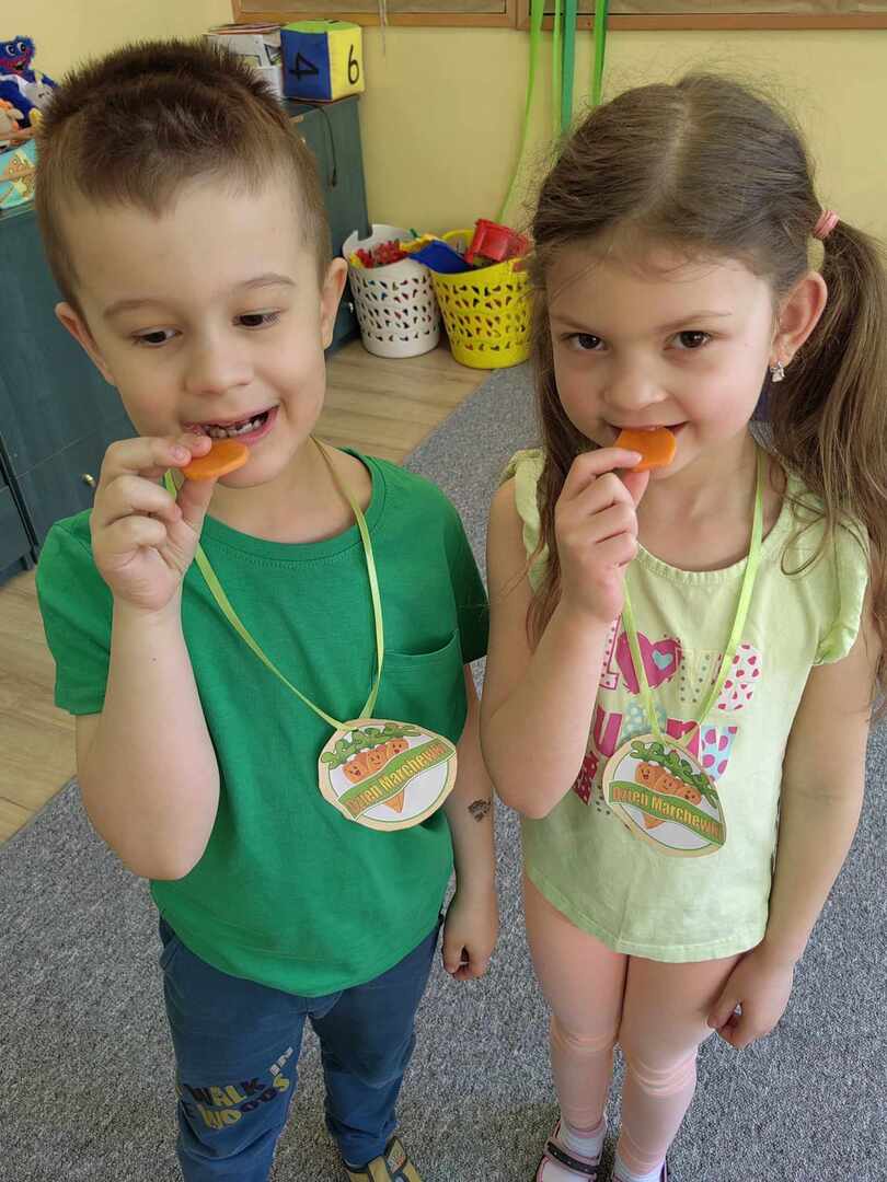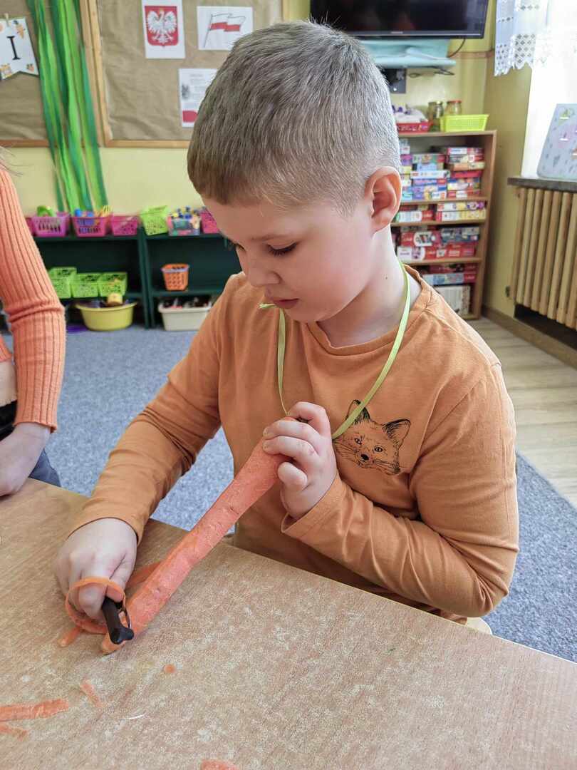 O tym, że warzywa są zdrowe i mają pozytywny wpływ na nasz organizm wiedzą wszyscy. Zerówkowicze podczas dzisiejszych zajęć skupili się na jednym wyjątkowym- MARCHEWCE. Dowiedzieli się jaki ma wpływ na wzrok, skórę, odporność oraz rozwój. Wspólne zabawy przyniosły im wiele radości. Każdy miał okazję spróbować marchewki oraz przepysznego deseru.