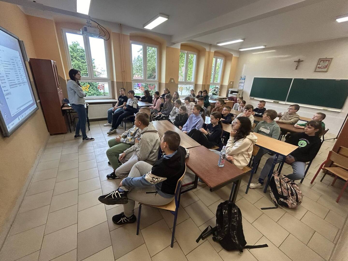 Dnia 24 kwietnia uczniowie kl.IV i V oraz VI i VII wzięli udział w warsztatach prowadzonych przez panią psycholog Sandrę Drosińską z Centrum Rozwiązywania Problemów Społecznych. Podczas zajęć poruszano tematy ważne dla dzieci i młodzieży: znaczenie mediów społecznościowych w życiu codziennym, zachowania ryzykowne prezentowane przez wirtualnych celebrytów , uzależnienia behawioralne tj.: gry komputerowe i siecioholizm, substancje psychoaktywne a przestrzeń wirtualna. Uczniowie otrzymali wskazówki jak postawić bezpieczne granice w przebywaniu w przestrzeni wirtualnej oraz poznali czynniki chroniące i czynniki ryzyka odnoszące się do zachowań w internecie. Zajęcia były wzbogacone o pracę w grupach i dyskusje, które bardzo mocno wpłynęły na aktywność naszych uczniów. Zainteresowanie uczestników świadczy o tym, że jest to temat bliski młodym ludziom.