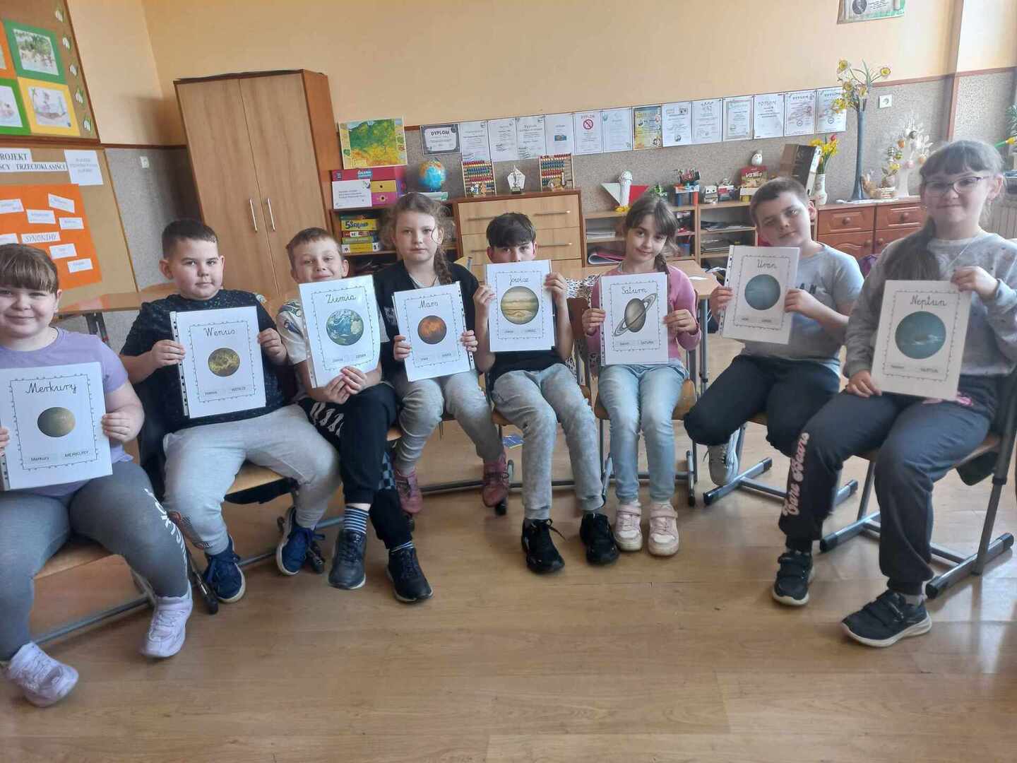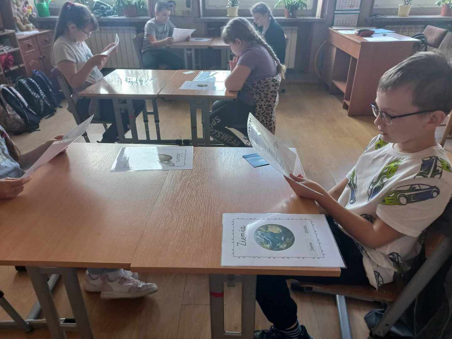 Tym razem nasze poszukiwania przenieśliśmy w przestrzeń kosmiczną. Pochyliliśmy się nad tematem: Ile planet ma Układ Słoneczny? W oparciu o film „ Jak powstają planety? „ uczniowie poznali genezę powstawania planet. W toku aktywności w zespołach zgłębili tajniki Układu Słonecznego, a wśród nich poznali nazwy planet, ich rodzaje (skaliste/gazowe) i położenie, a także rozmiar czy ilość Księżycy. Ten ostatni element wzbudził największą ciekawość uczniów – starali się zliczyć wszystkie księżyce Układu Słonecznego. Potem każdy zespół prezentował zdobytą wiedzę i ciekawostki o wylosowanej planecie. Na koniec każda grupa składała puzzle na czas. Zajęciom towarzyszyła miła atmosfera, radość z podejmowanych wyzwań i wielkie zaangażowanie. Jak zawsze - zabrakło nam czasu!