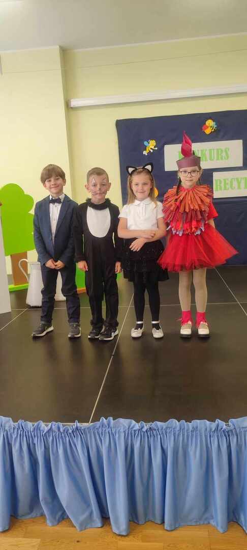 W środę 8 maja w przedszkolu "Parkowe Skrzaty" w Koźminie Wielkopolskim odbył się konkurs recytatorski. Nasze przedszkole reprezentowali: Olga W., Nikodem K., Alan G., Wiktoria T. Wszystkie dzieci zaprezentowały się znakomicie. Nowe doświadczenie pozostanie w pamięci na długo. III miejsce zajął Alan G.