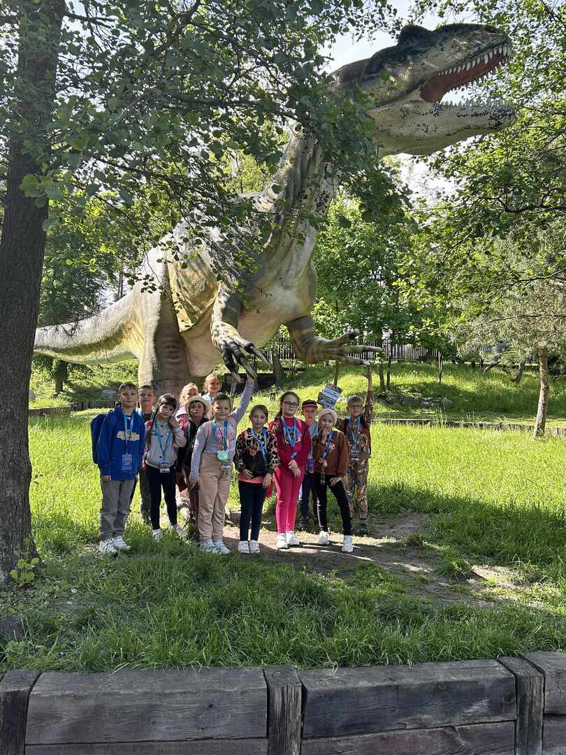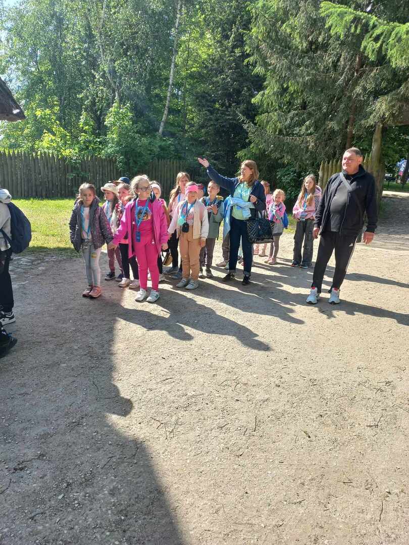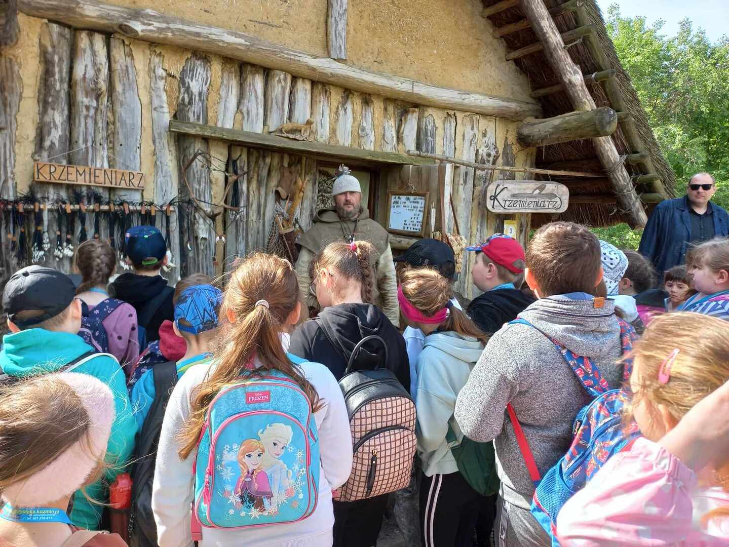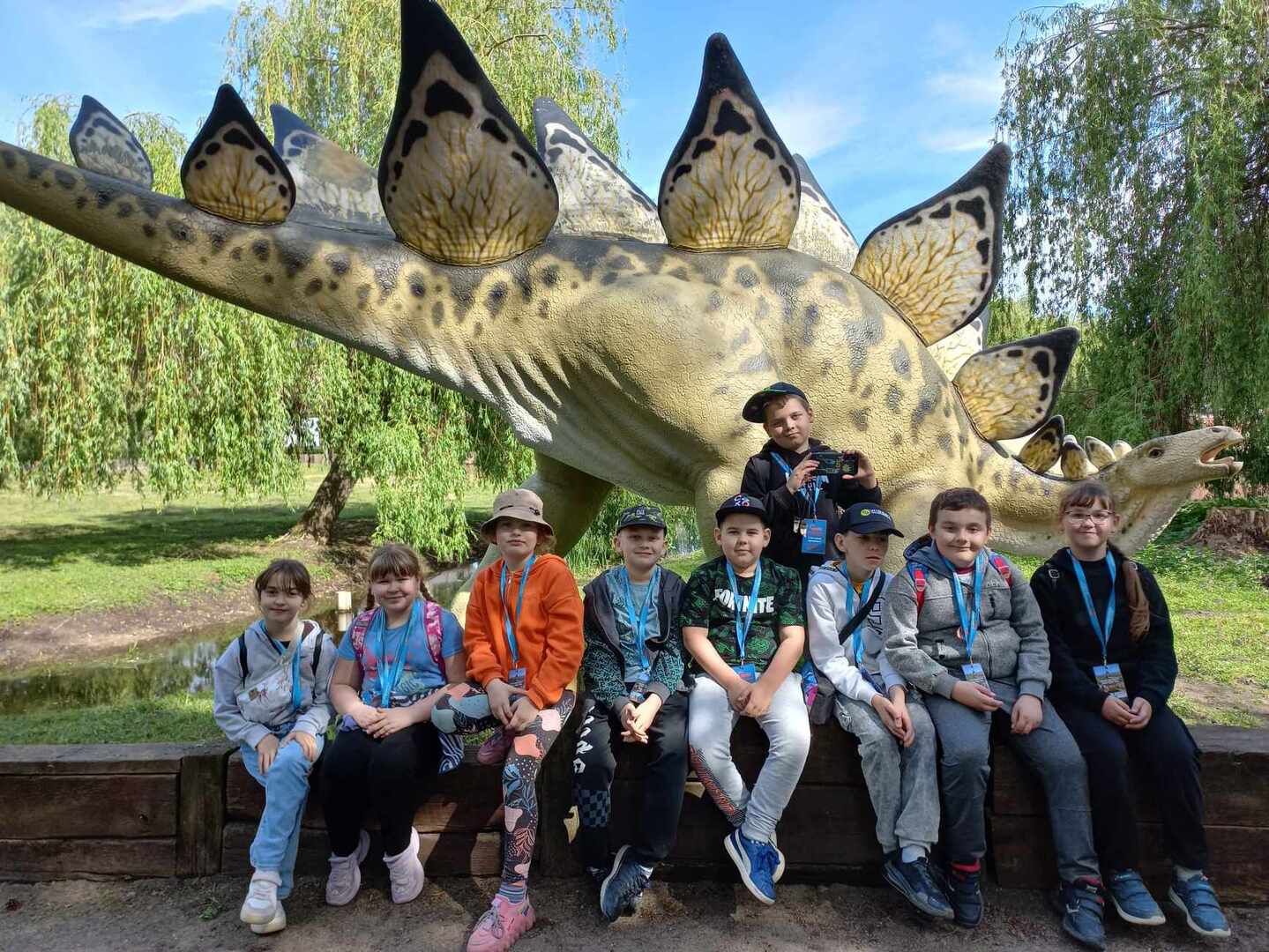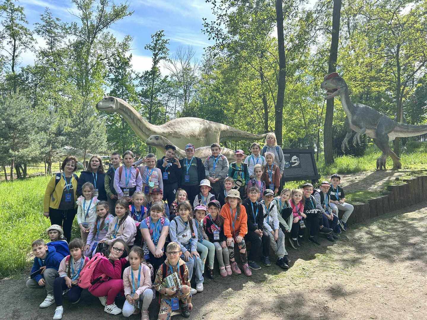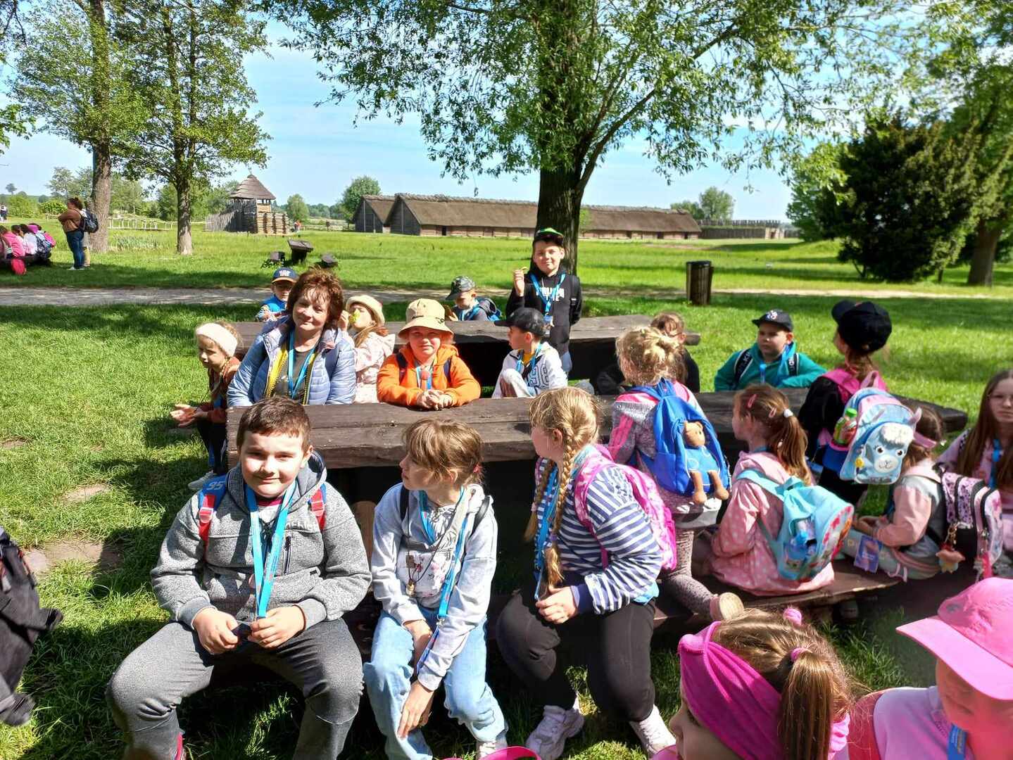 Pierwszym punktem programu był Biskupin. Pan przewodnik przybliżył uczestnikom wycieczki dzieje prastarego grodu na przestrzeni wieków. Można było zobaczyć, jak żyli i pracowali ludzie grodu nad Jeziorem Biskupińskim. Następnie dzieci udały się na warsztaty lepienia z gliny oraz malowania na szkle. Powstały naprawdę oryginalne dzieła. Dużym zainteresowaniem cieszyło się Interaktywne Muzeum Rybactwa. Z ogromnym zaciekawieniem dzieci słuchały przekazu przewodnika, a potem miały okazję poeksperymentować. Z Biskupina wszyscy udali się kolejką do Wenecji, podziwiając panoramę okolicy oraz zachowane ruiny starych budowli w Wenecji. Stamtąd trasa wycieczki wiodła do Rogowa. Spacerując w Parku Dinozaurów uczniowie podziwiali i zachwycali się potęgą wymarłych okazów sprzed milionów lat. W Rogowie był też czas na zabawy na placu zabaw, pokonywanie toru przeszkód i przechodzenie przez labirynt. Oczywiście nie mogło zabraknąć wycieczkowych trofeów – każdy chciał zakupić dla siebie i najbliższych pamiątki z wyjazdu.