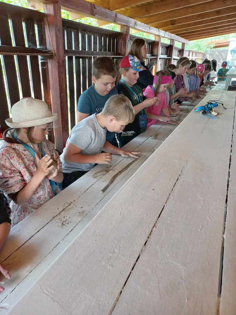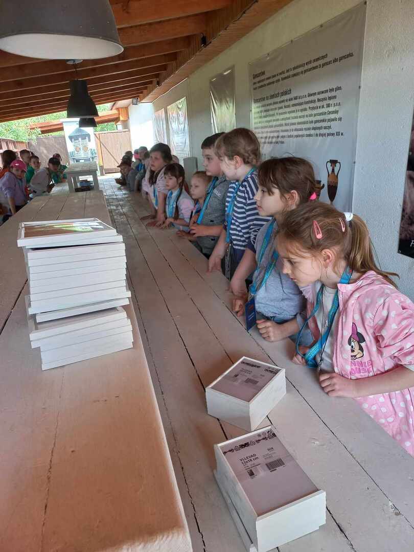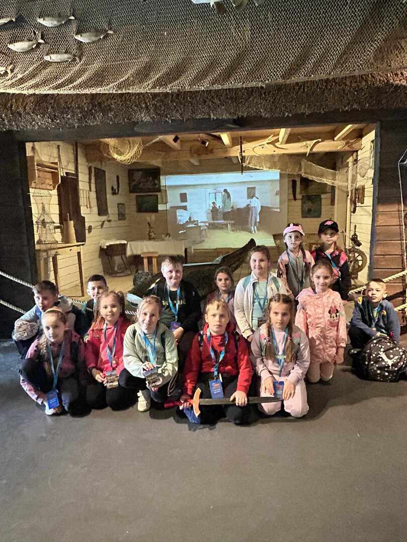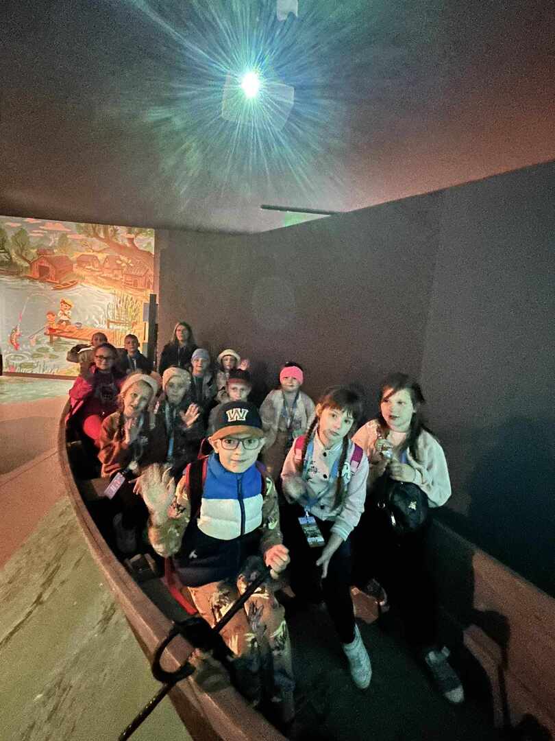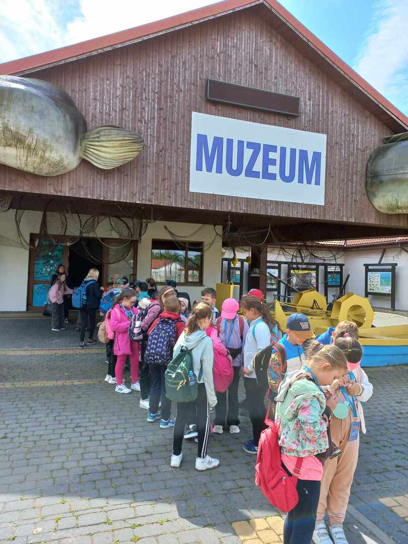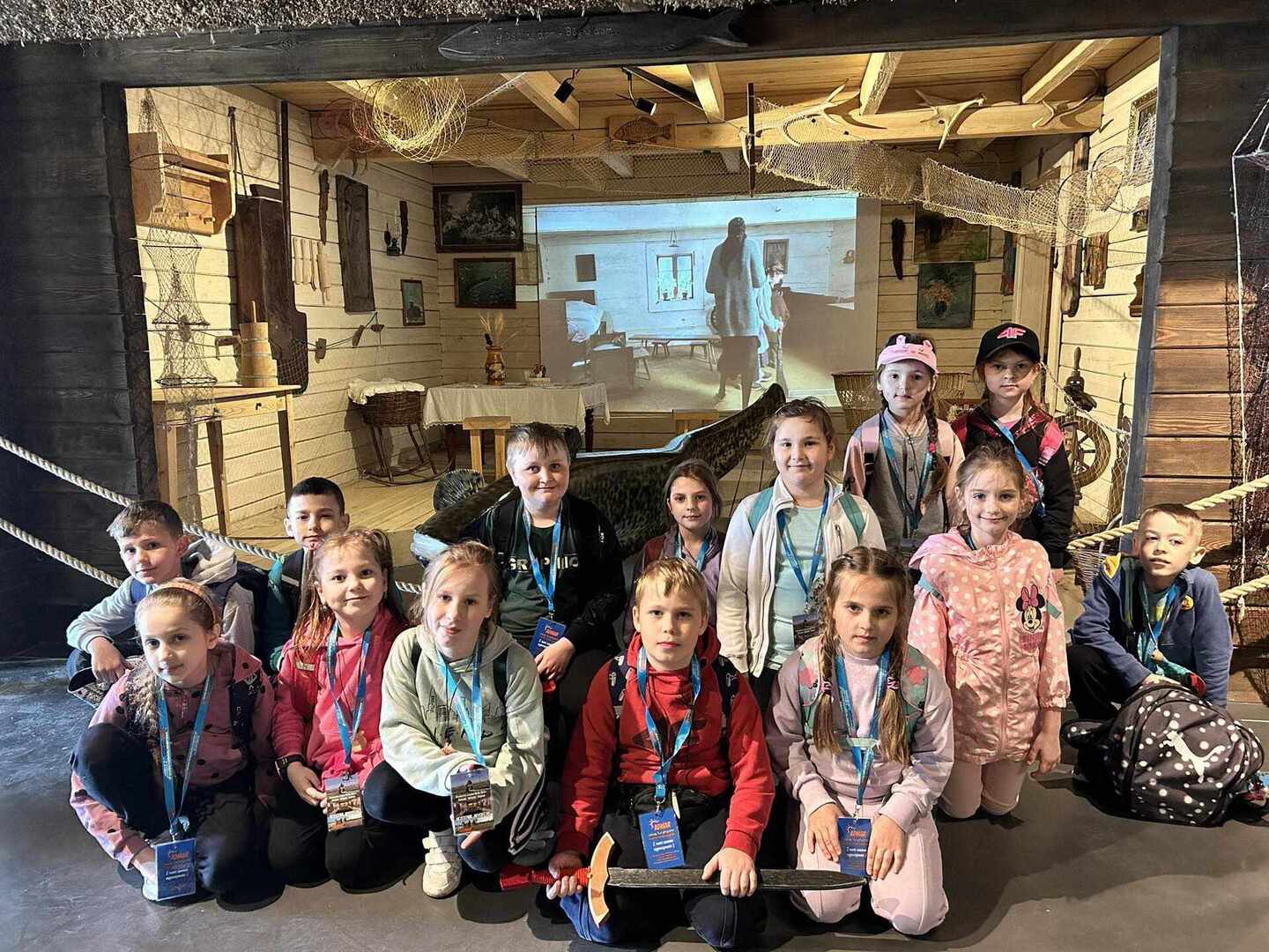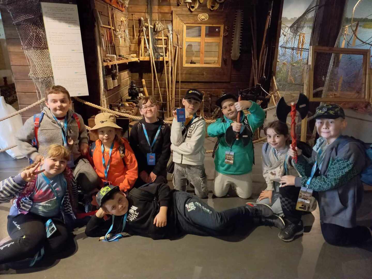 Pierwszym punktem programu był Biskupin. Pan przewodnik przybliżył uczestnikom wycieczki dzieje prastarego grodu na przestrzeni wieków. Można było zobaczyć, jak żyli i pracowali ludzie grodu nad Jeziorem Biskupińskim. Następnie dzieci udały się na warsztaty lepienia z gliny oraz malowania na szkle. Powstały naprawdę oryginalne dzieła. Dużym zainteresowaniem cieszyło się Interaktywne Muzeum Rybactwa. Z ogromnym zaciekawieniem dzieci słuchały przekazu przewodnika, a potem miały okazję poeksperymentować. Z Biskupina wszyscy udali się kolejką do Wenecji, podziwiając panoramę okolicy oraz zachowane ruiny starych budowli w Wenecji. Stamtąd trasa wycieczki wiodła do Rogowa. Spacerując w Parku Dinozaurów uczniowie podziwiali i zachwycali się potęgą wymarłych okazów sprzed milionów lat. W Rogowie był też czas na zabawy na placu zabaw, pokonywanie toru przeszkód i przechodzenie przez labirynt. Oczywiście nie mogło zabraknąć wycieczkowych trofeów – każdy chciał zakupić dla siebie i najbliższych pamiątki z wyjazdu.