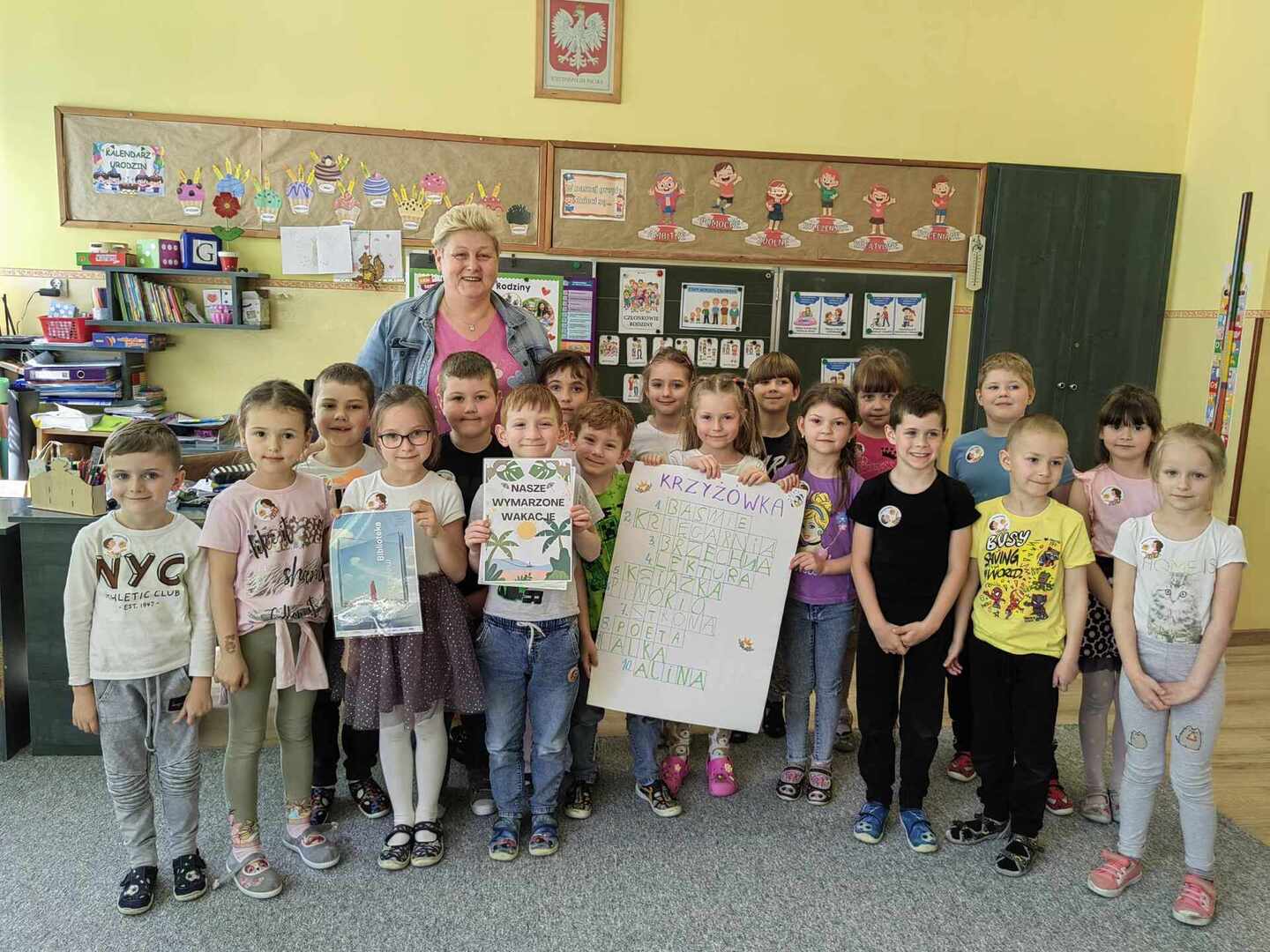 W ramach XXI Ogólnopolskiego Tygodnia Bibliotek dzieci z oddziału "0" miały okazję spotkać się z p. Agnieszka, która na codzień pracuję w bibliotece. Przedstawiła nam swoją pracę, zaprosiła do biblioteki, gdzie mieliśmy okazję wypożyczyć książkę. Dzieci stworzyły nawet własne dzieło pt. "Nasze wspólne wakacje". Na zakończenie sprawdziły swoją wiedzę rozwiązując krzyżówkę. Była to ciekawa lekcja biblioteczna.