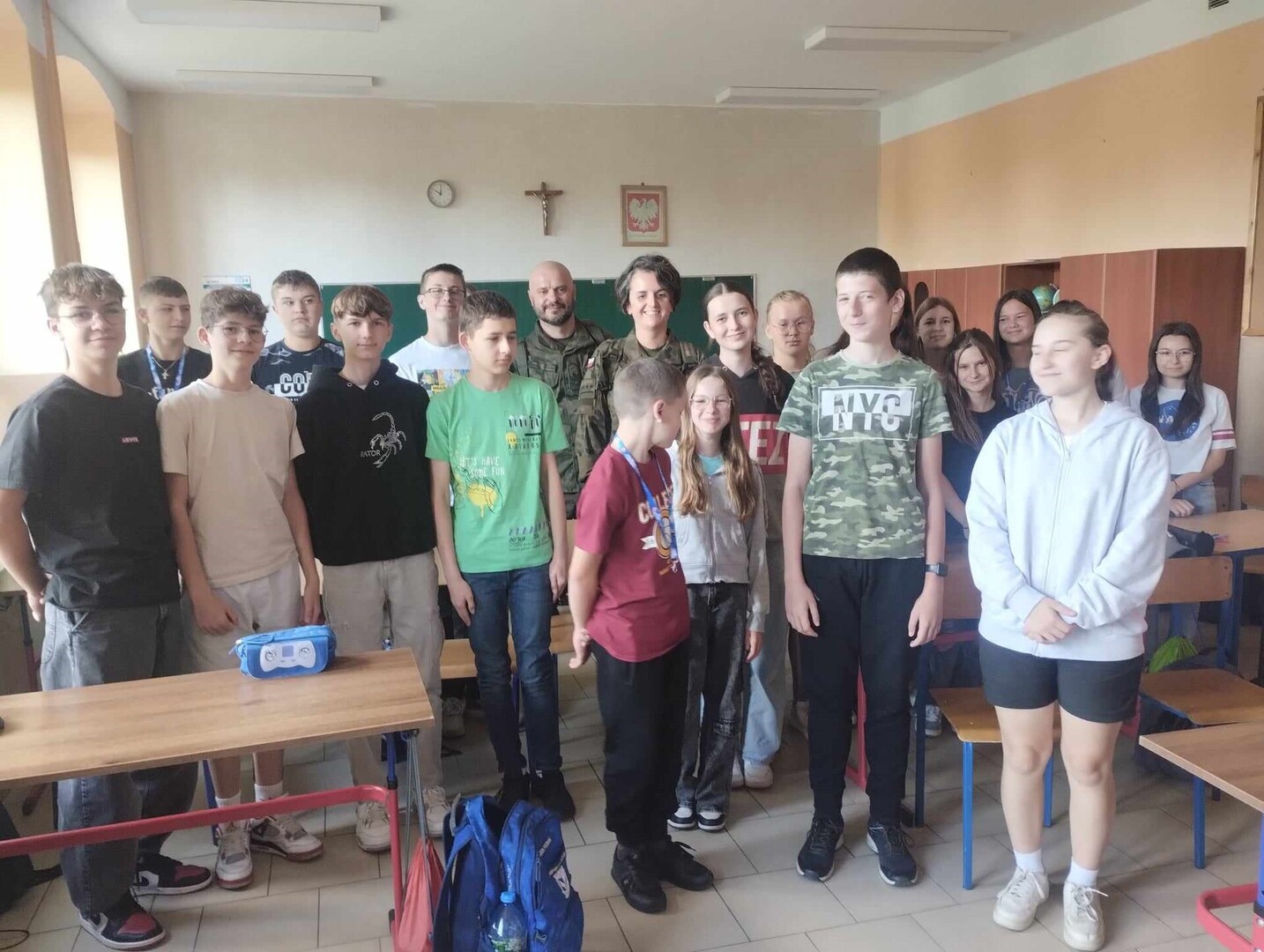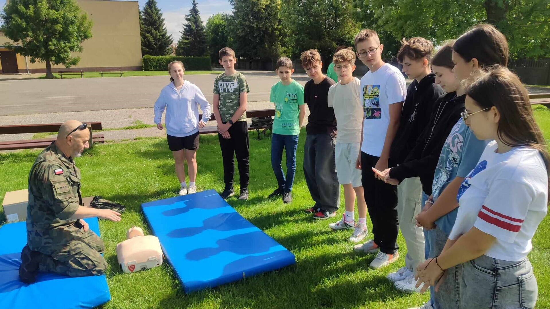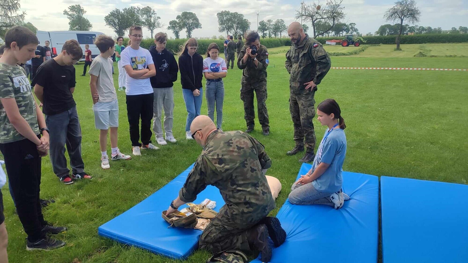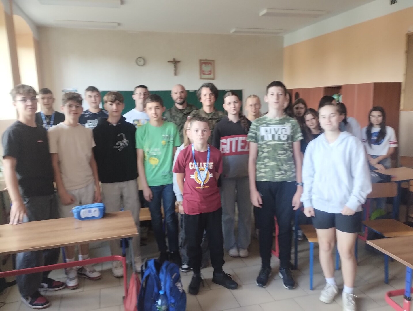 We wtorek 11 czerwca br. uczniowie klasy VII i VIII naszej szkoły mieli okazję wziąć udział w programie edukacyjno - obronnym "Edukacja z wojskiem". Program ten został przygotowany przez Ministerstwo Edukacji Narodowej oraz Ministerstwo Obrony Narodowej. Jego głównym celem jest podniesienie świadomości dzieci i młodzieży w obszarze bezpieczeństwa i obronności oraz kształtowanie nawyków i umiejętności z zakresu obrony oraz ochrony w sytuacjach kryzysowych. Zajęcia z zakresu "Edukacji z wojskiem" przygotowali dla nas i przeprowadzili żołnierze z 2 Skrzydła Lotnictwa Taktycznego w Poznaniu, za co im serdecznie dziękujemy. To była wspaniała przygoda, a zarazem praktyczna lekcja bezpieczeństwa.
