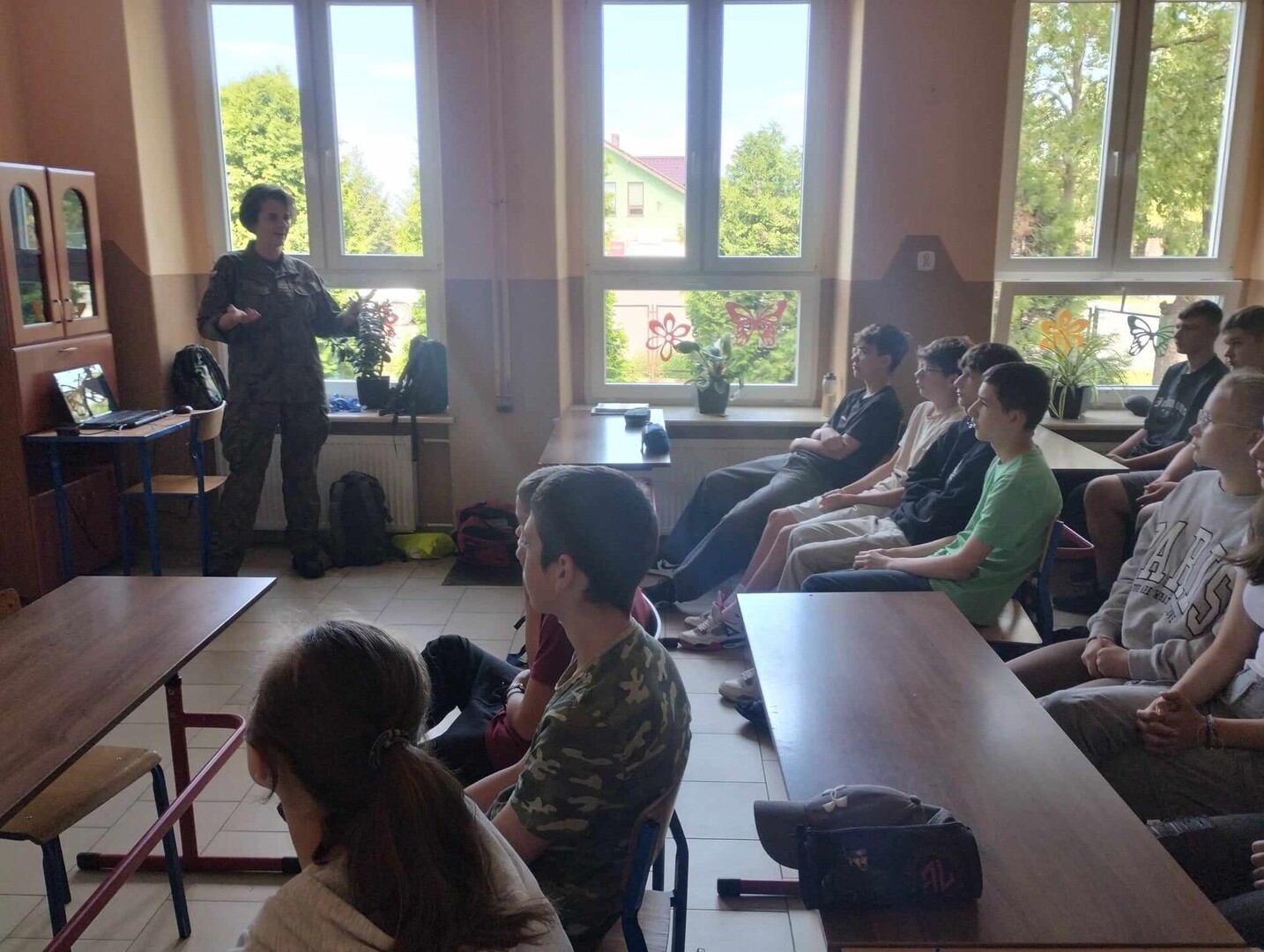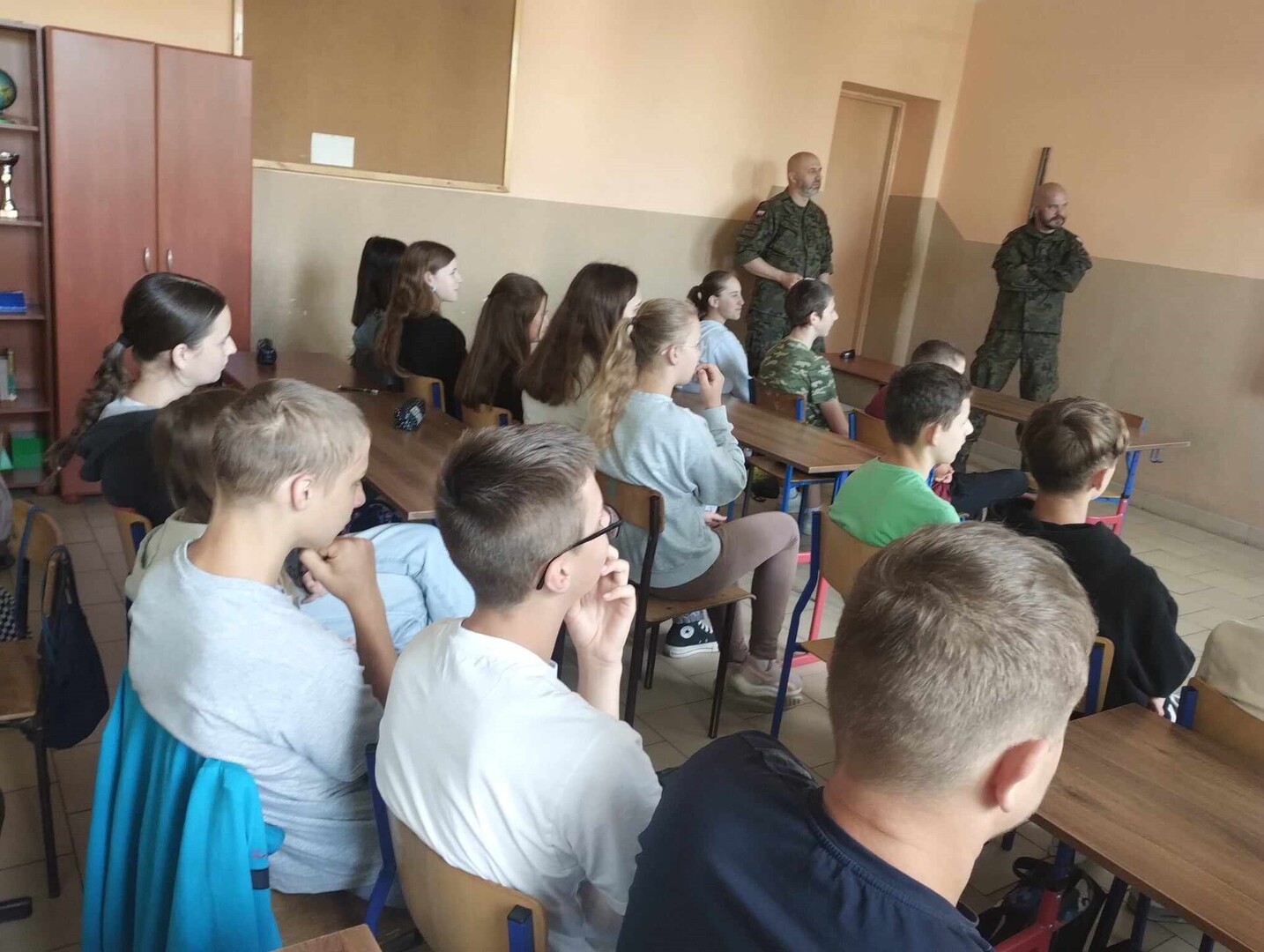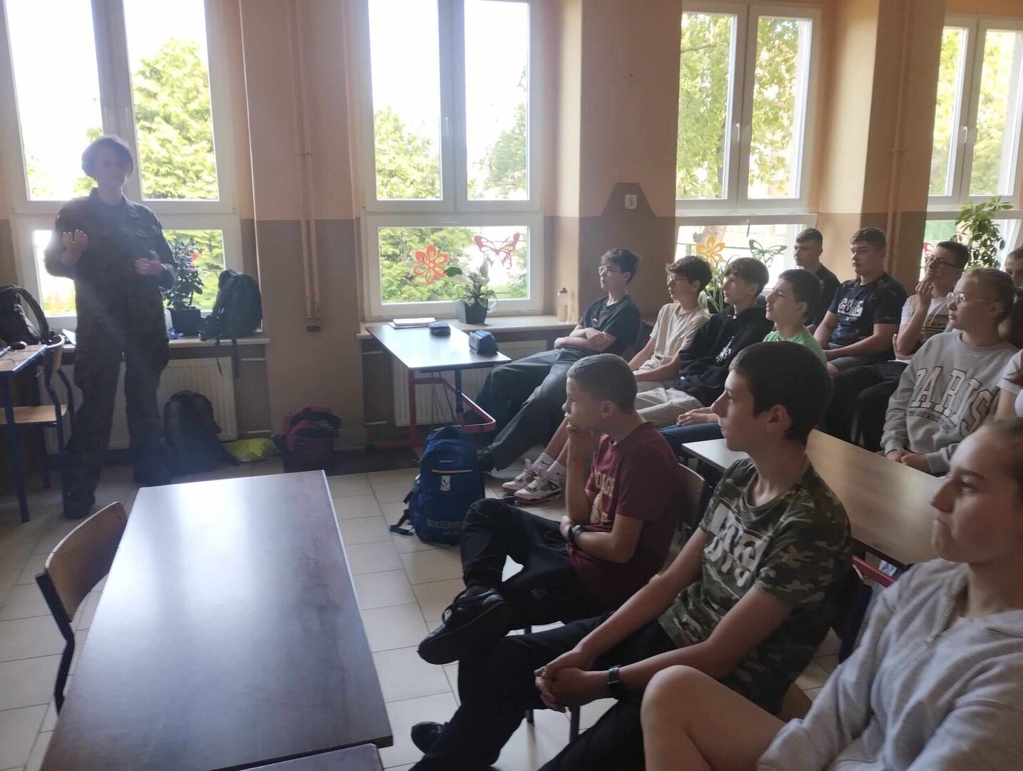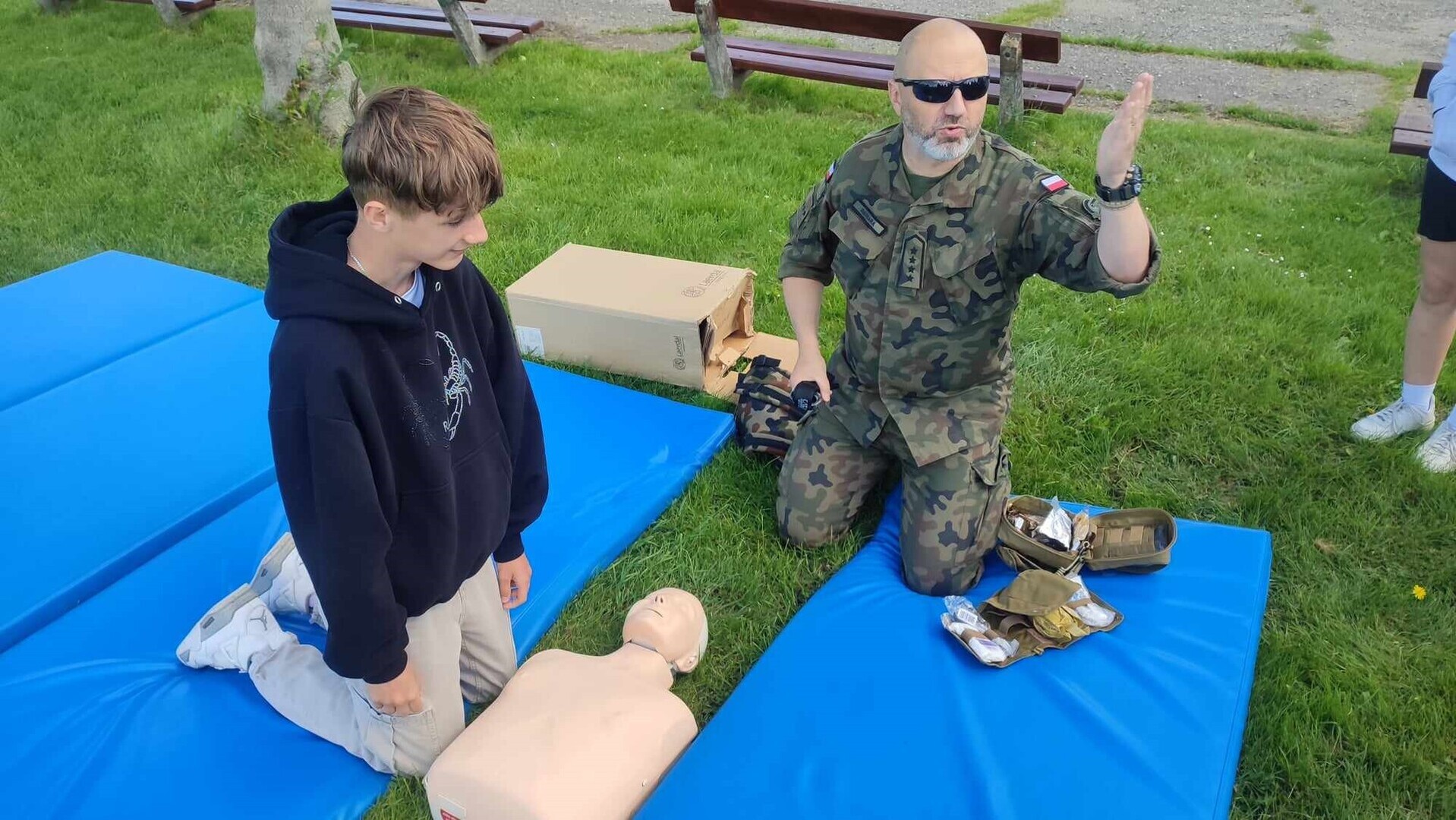 We wtorek 11 czerwca br. uczniowie klasy VII i VIII naszej szkoły mieli okazję wziąć udział w programie edukacyjno - obronnym "Edukacja z wojskiem". Program ten został przygotowany przez Ministerstwo Edukacji Narodowej oraz Ministerstwo Obrony Narodowej. Jego głównym celem jest podniesienie świadomości dzieci i młodzieży w obszarze bezpieczeństwa i obronności oraz kształtowanie nawyków i umiejętności z zakresu obrony oraz ochrony w sytuacjach kryzysowych. Zajęcia z zakresu "Edukacji z wojskiem" przygotowali dla nas i przeprowadzili żołnierze z 2 Skrzydła Lotnictwa Taktycznego w Poznaniu, za co im serdecznie dziękujemy. To była wspaniała przygoda, a zarazem praktyczna lekcja bezpieczeństwa.