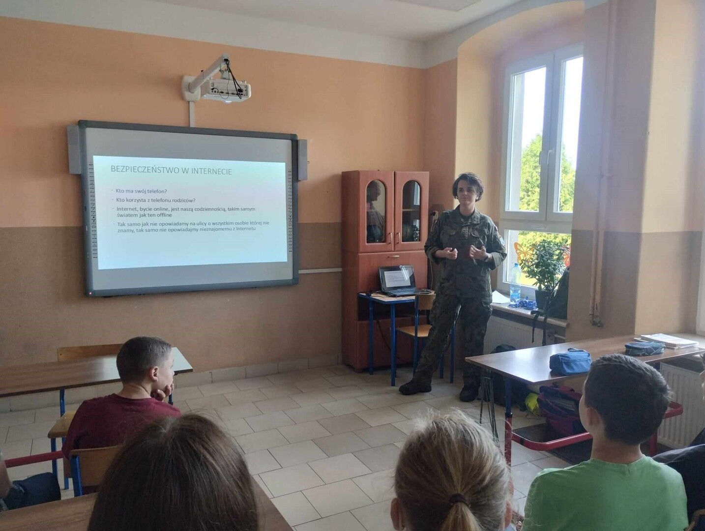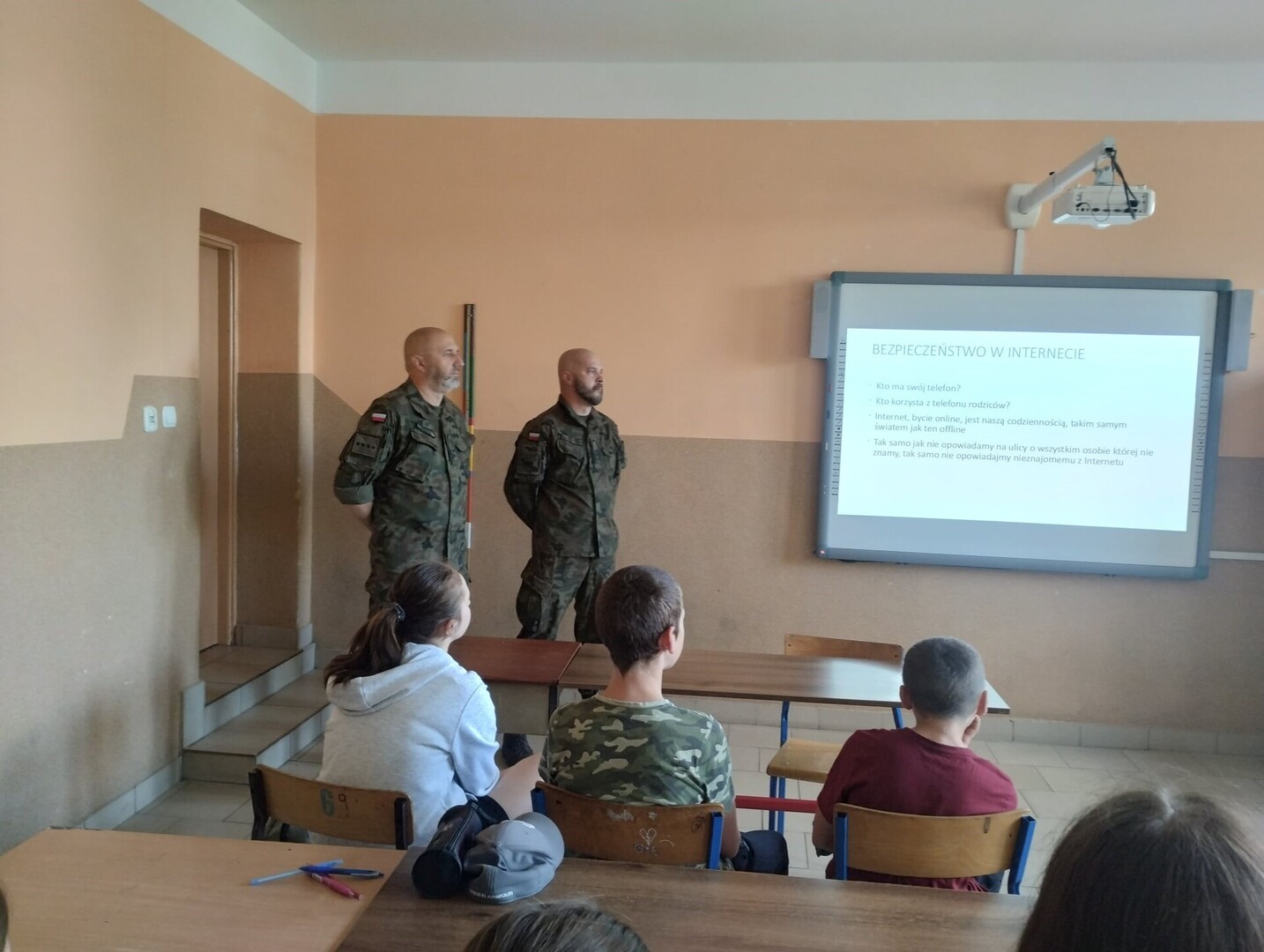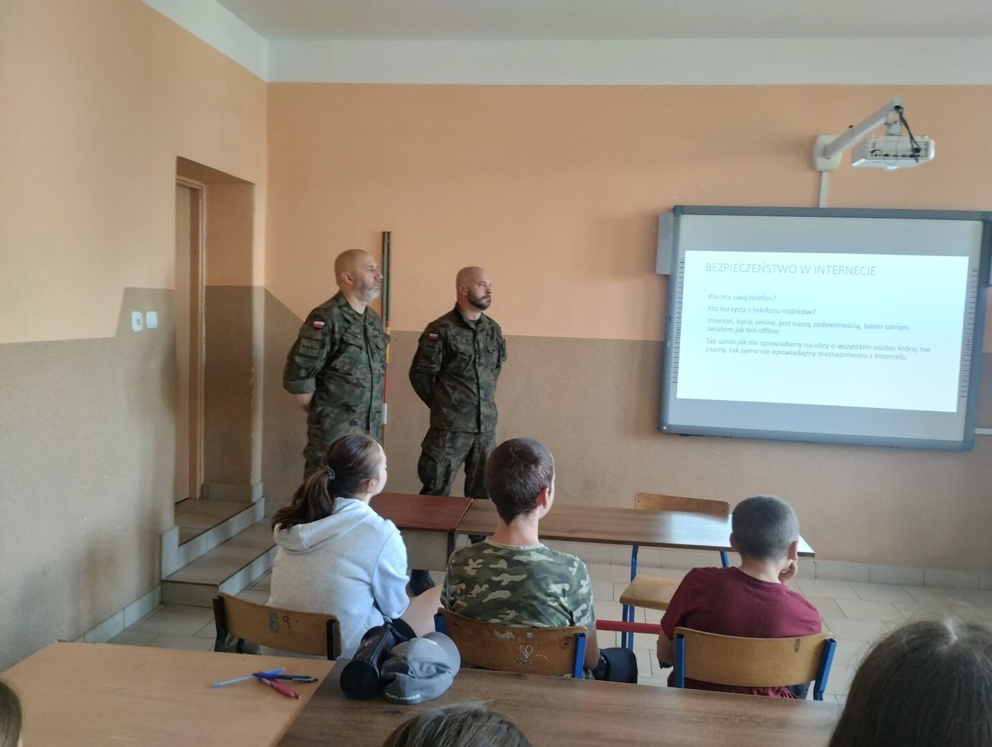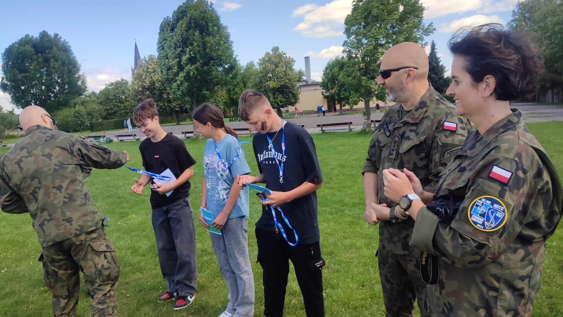 We wtorek 11 czerwca br. uczniowie klasy VII i VIII naszej szkoły mieli okazję wziąć udział w programie edukacyjno - obronnym "Edukacja z wojskiem". Program ten został przygotowany przez Ministerstwo Edukacji Narodowej oraz Ministerstwo Obrony Narodowej. Jego głównym celem jest podniesienie świadomości dzieci i młodzieży w obszarze bezpieczeństwa i obronności oraz kształtowanie nawyków i umiejętności z zakresu obrony oraz ochrony w sytuacjach kryzysowych. Zajęcia z zakresu "Edukacji z wojskiem" przygotowali dla nas i przeprowadzili żołnierze z 2 Skrzydła Lotnictwa Taktycznego w Poznaniu, za co im serdecznie dziękujemy. To była wspaniała przygoda, a zarazem praktyczna lekcja bezpieczeństwa.