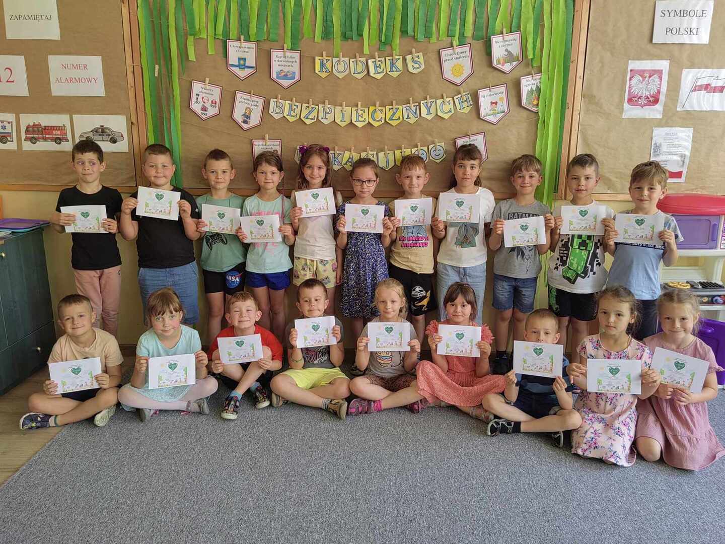 Grupa "0" ukończyła realizację projektu "Z pętelką po zdrowie". Skupiał się on na trzech aspektach zdrowia: wpływie odżywiania na zdrowie (Moduł I-Zdrowo jemy i świetnie się czujemy), wpływie ruchu na zdrowie (Moduł II- Sport to zdrowie, każdy Ci to powie) oraz najważniejsze w obecnych czasach higienie zdrowia psychicznego (Moduł III- W nas jest bardzo wielka siła, chcemy żeby zwyciężyła). Przedszkolaki z wielką radością i przyjemnością wykonywały zadania. W ramach projektu przygotowywaliśmy pyszne zdrowe przekąski, założyliśmy kącik warzywno owocowy oraz kącik emocji. Zorganizowany został konkurs recytatorski " Żyjmy zdrowo i sportowo". Z zaangażowaniem włączyli się również rodzice, którzy przygotowywali zdrowe słodkości dla dzieci w ramach urodzin oraz zostały przeprowadzone zajęcia sportowe przez jednego z rodziców.