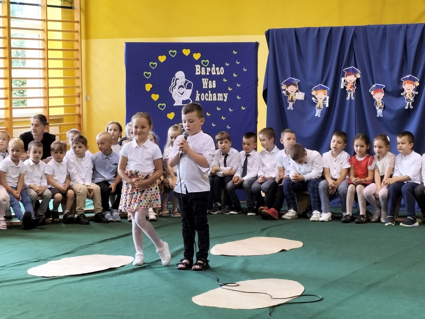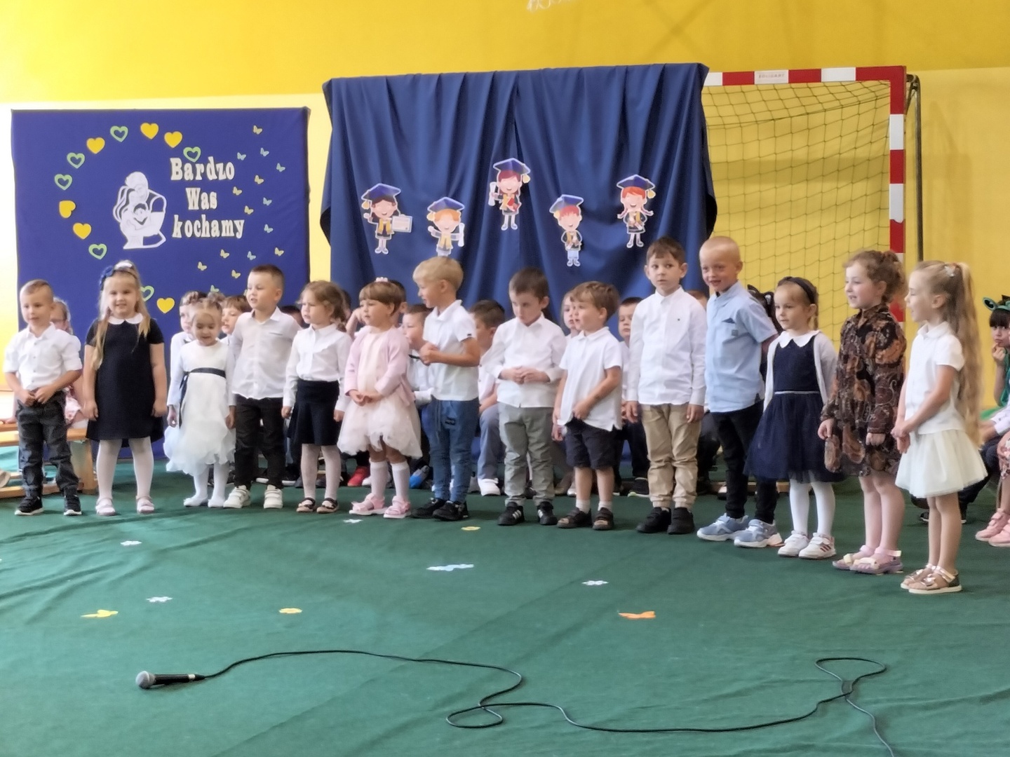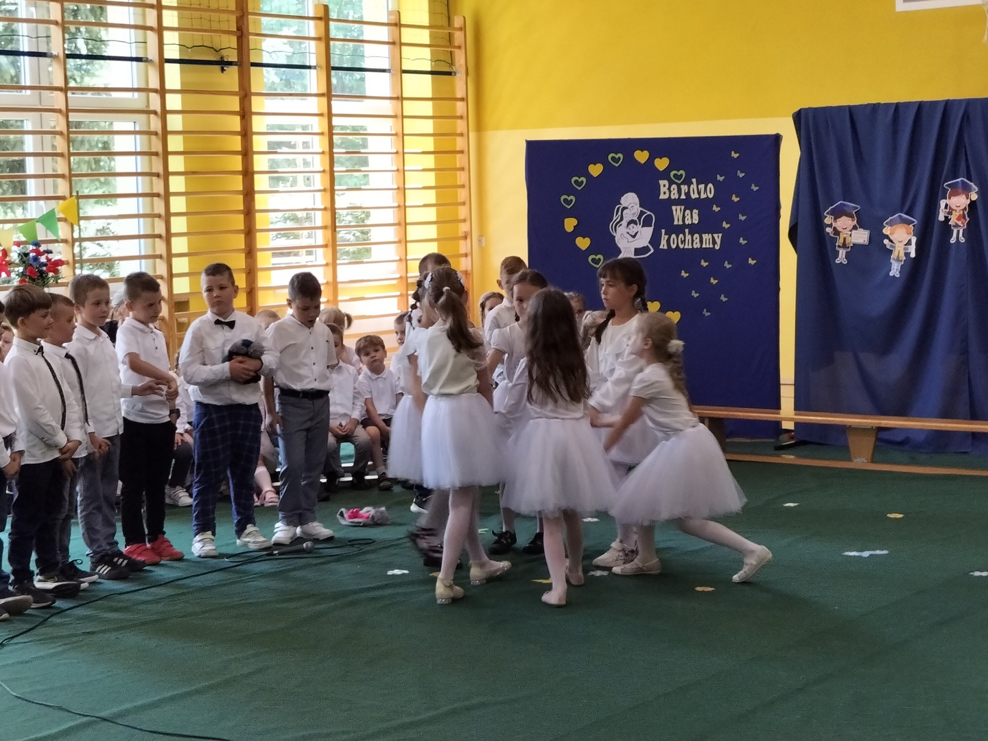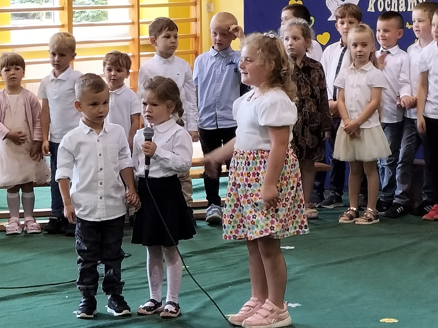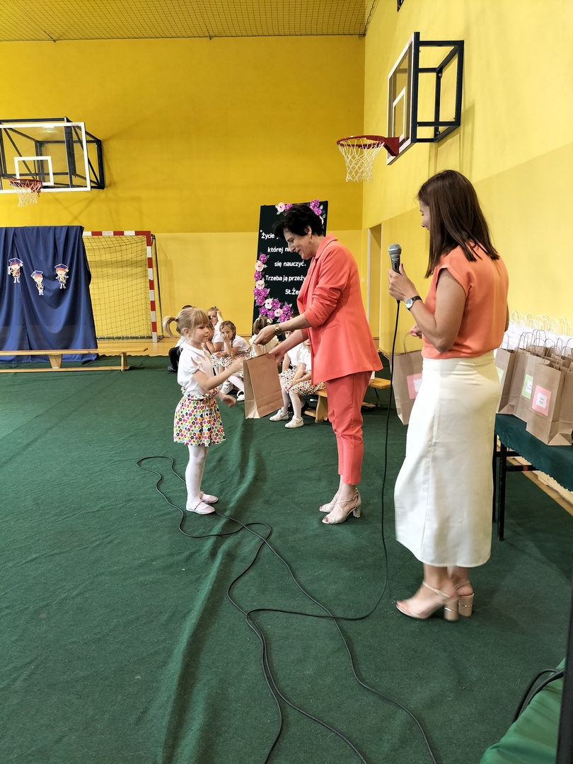 Czas leci nieubłaganie i te dzieci, które jeszcze niedawno przekraczały po raz pierwszy progi przedszkola po wakacjach wkraczają w kolejny etap edukacyjny. Był to wyjątkowy dzień dla całej naszej przedszkolnej społeczności. Tego dnia odbyło się uroczyste pożegnanie starszaków. Dzieci wspaniale zaprezentowały program artystyczny. Były wierszyki, piosenki i tańce. Emocji nie brakowało. Starszaki, jak przystało na absolwentów przedszkola, w odświętnych strojach i z powagą w głosie, recytowały wiersze, śpiewały piosenki i zatańczyły Poloneza. Podczas tej uroczystości dzieci również podziękowały swoim rodzicom za obecność, miłość, troskę i każdy zwyczajny dzień. Na zakończenie wręczył drobny upominek z okazji ich święta. Dzieci natomiast zostały obdrowane dyplomami oraz prezentami.