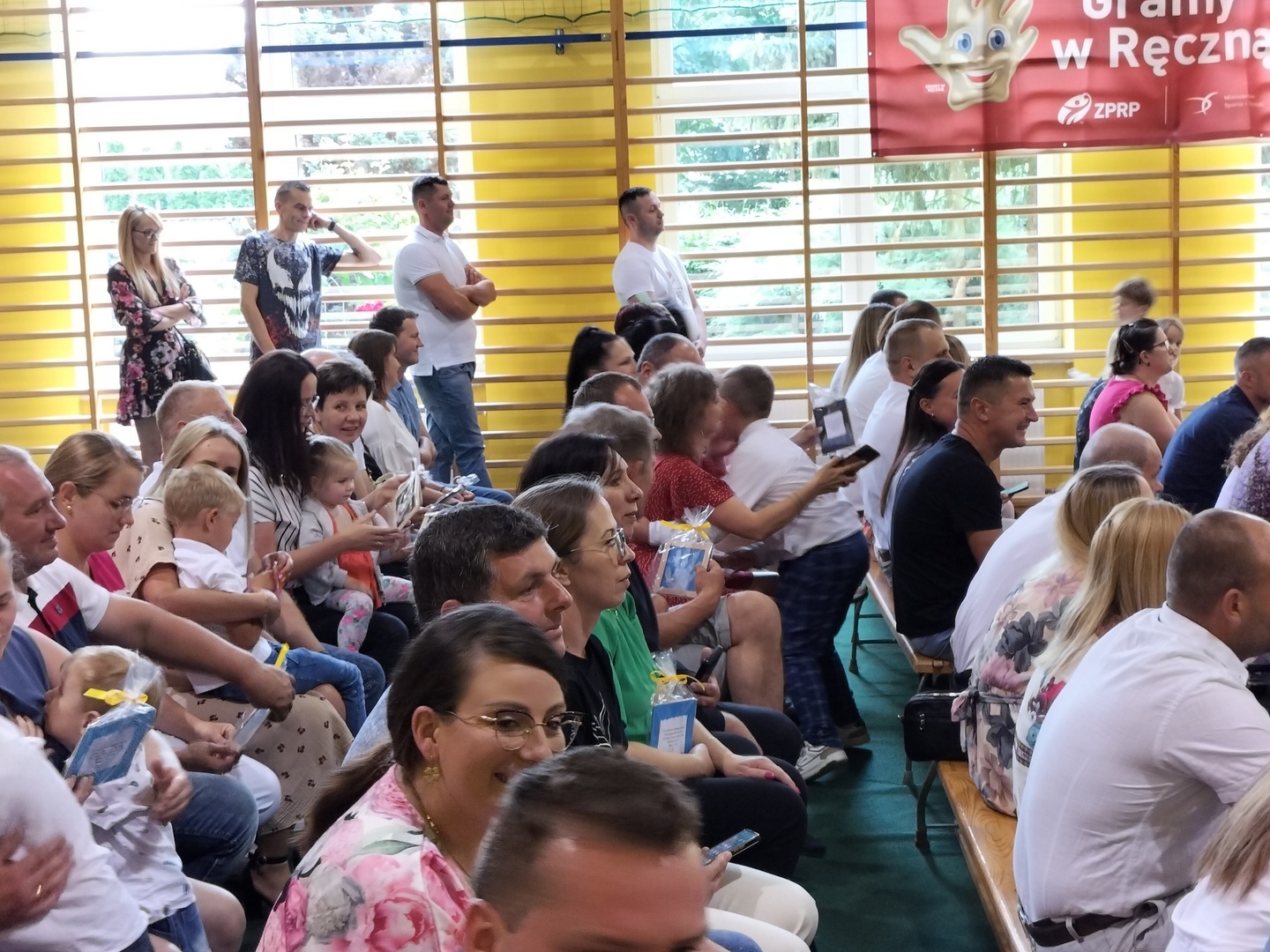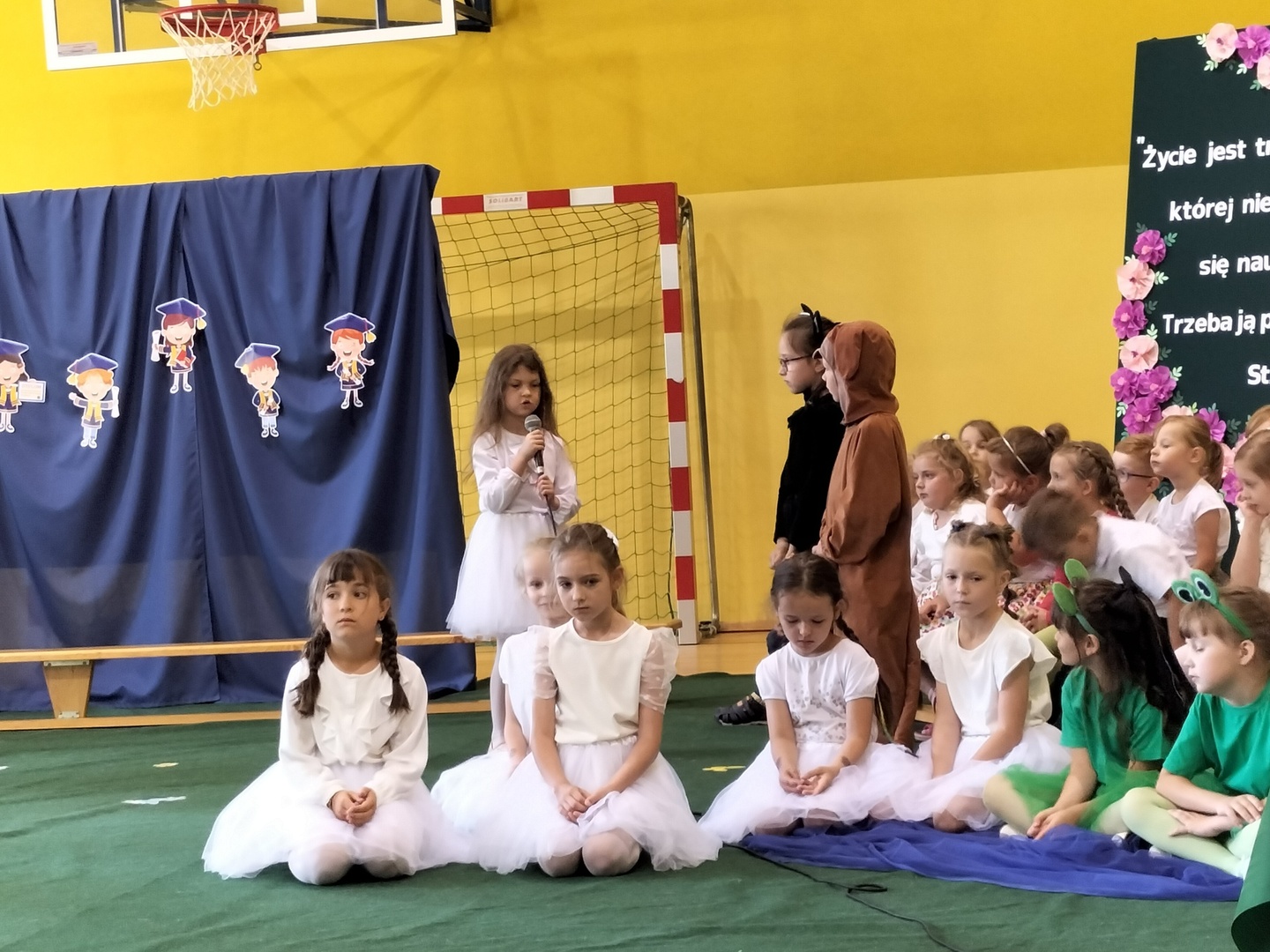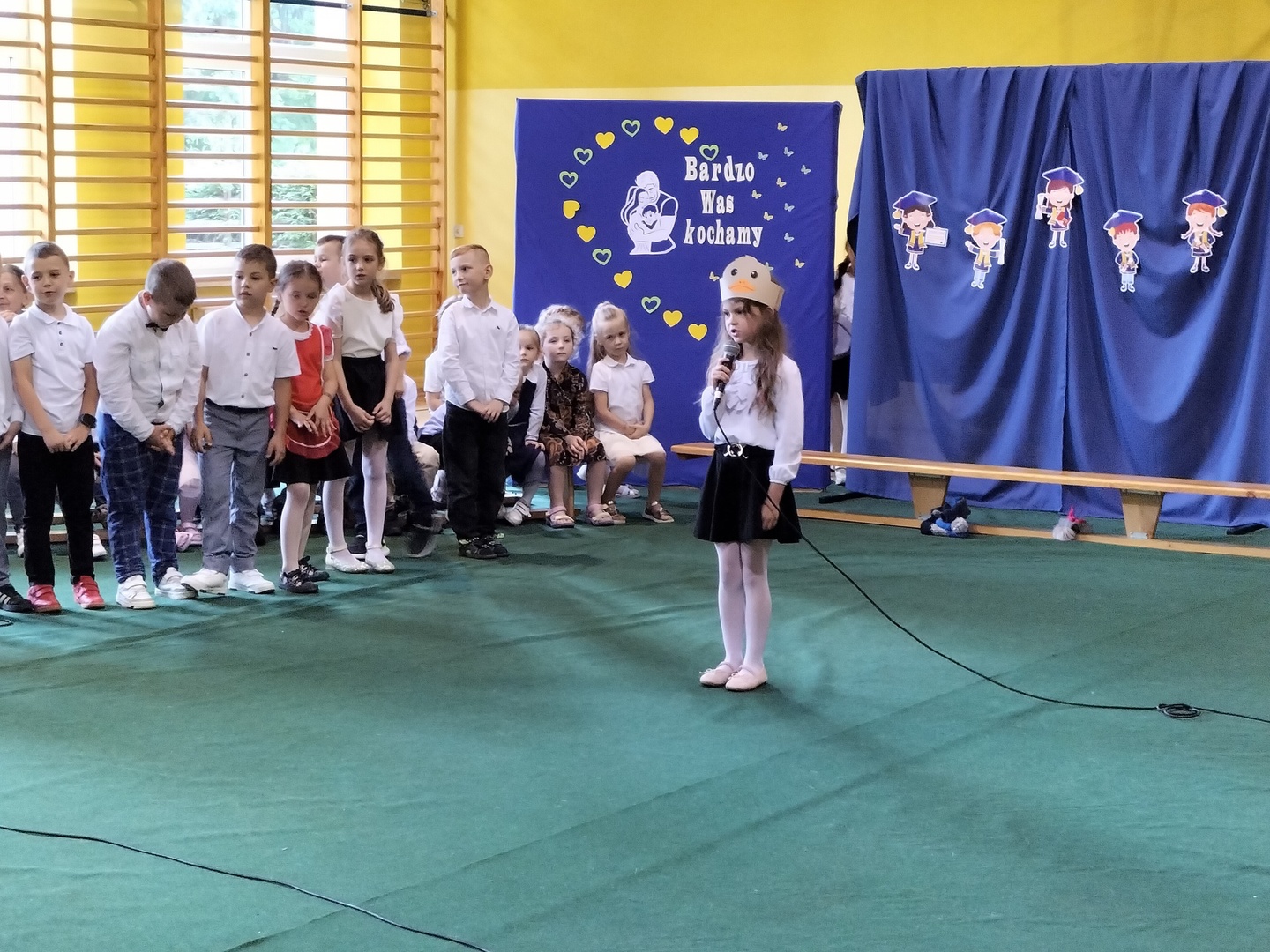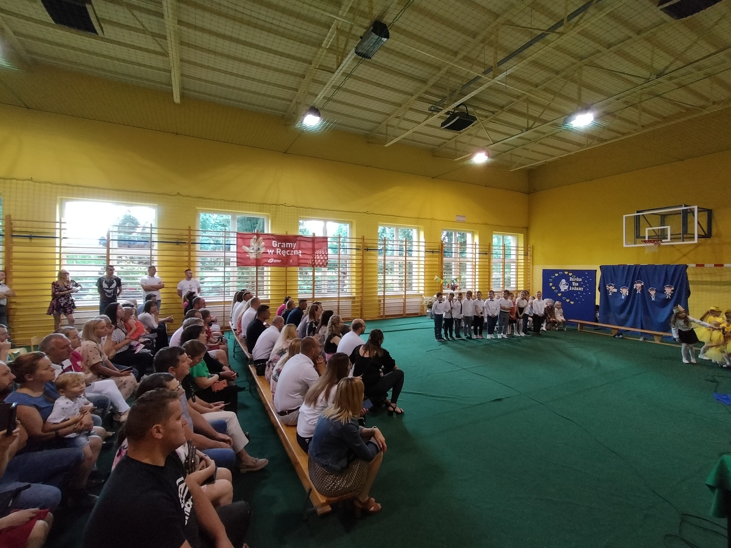 Czas leci nieubłaganie i te dzieci, które jeszcze niedawno przekraczały po raz pierwszy progi przedszkola po wakacjach wkraczają w kolejny etap edukacyjny. Był to wyjątkowy dzień dla całej naszej przedszkolnej społeczności. Tego dnia odbyło się uroczyste pożegnanie starszaków. Dzieci wspaniale zaprezentowały program artystyczny. Były wierszyki, piosenki i tańce. Emocji nie brakowało. Starszaki, jak przystało na absolwentów przedszkola, w odświętnych strojach i z powagą w głosie, recytowały wiersze, śpiewały piosenki i zatańczyły Poloneza. Podczas tej uroczystości dzieci również podziękowały swoim rodzicom za obecność, miłość, troskę i każdy zwyczajny dzień. Na zakończenie wręczył drobny upominek z okazji ich święta. Dzieci natomiast zostały obdrowane dyplomami oraz prezentami.