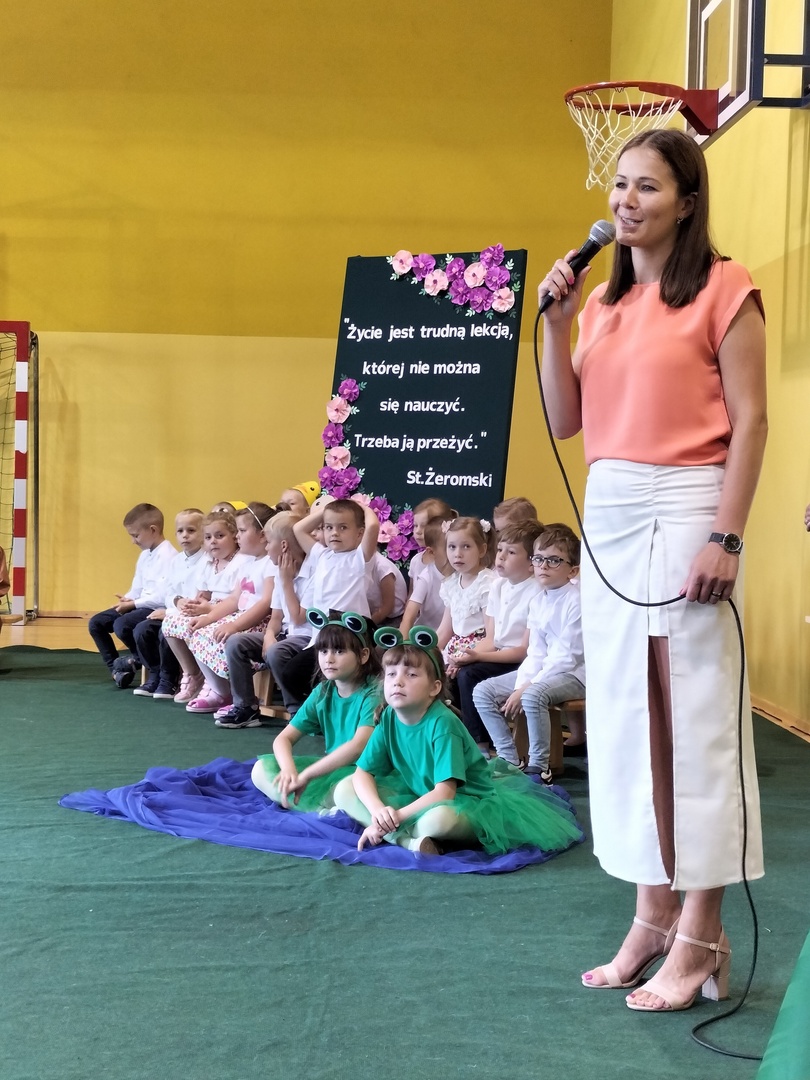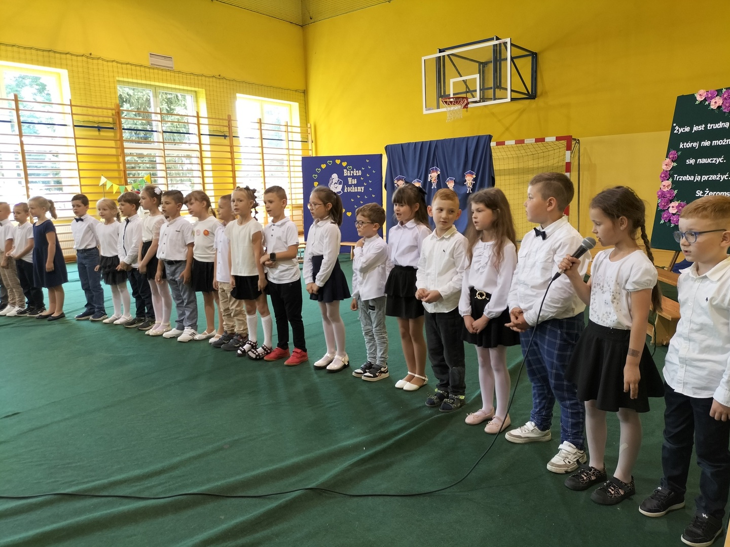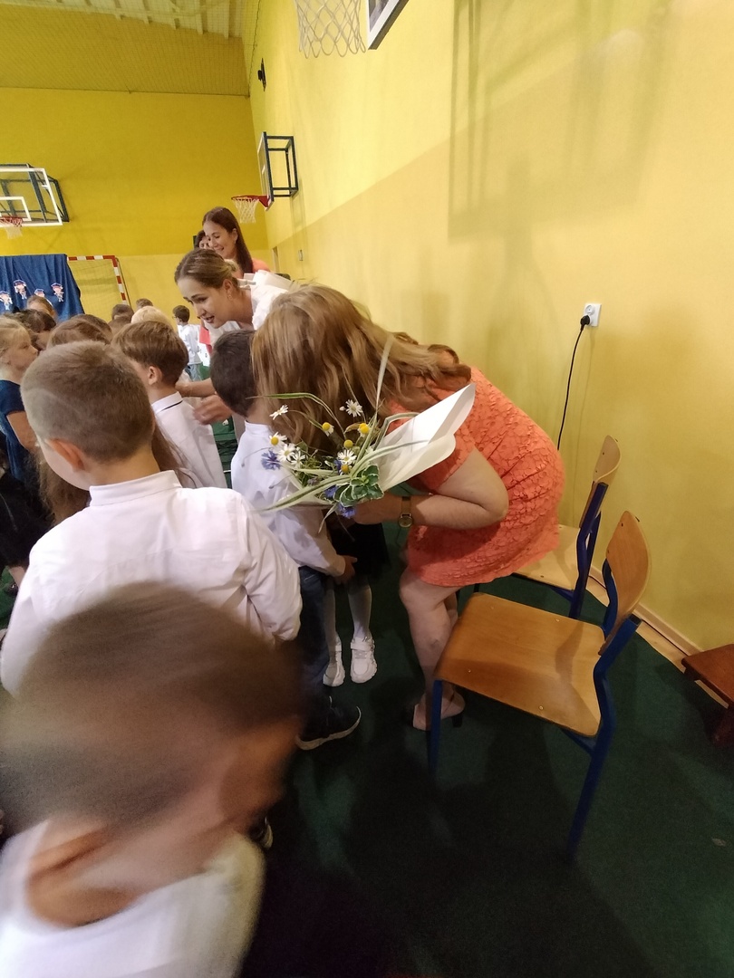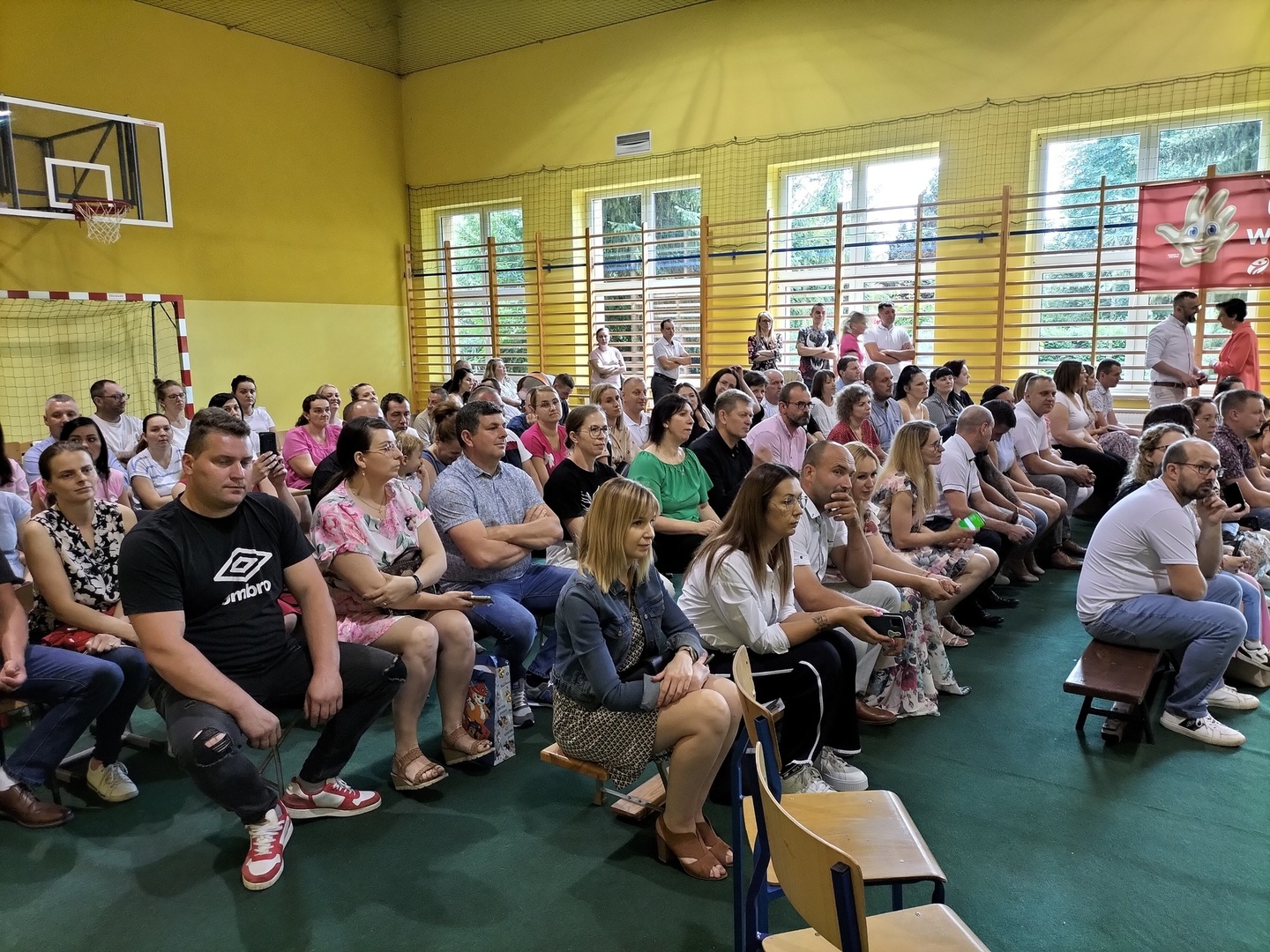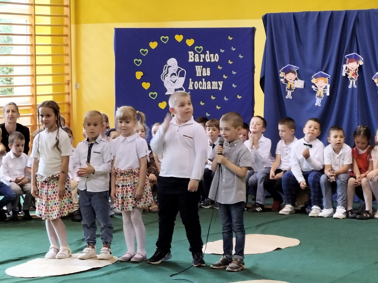 Czas leci nieubłaganie i te dzieci, które jeszcze niedawno przekraczały po raz pierwszy progi przedszkola po wakacjach wkraczają w kolejny etap edukacyjny. Był to wyjątkowy dzień dla całej naszej przedszkolnej społeczności. Tego dnia odbyło się uroczyste pożegnanie starszaków. Dzieci wspaniale zaprezentowały program artystyczny. Były wierszyki, piosenki i tańce. Emocji nie brakowało. Starszaki, jak przystało na absolwentów przedszkola, w odświętnych strojach i z powagą w głosie, recytowały wiersze, śpiewały piosenki i zatańczyły Poloneza. Podczas tej uroczystości dzieci również podziękowały swoim rodzicom za obecność, miłość, troskę i każdy zwyczajny dzień. Na zakończenie wręczył drobny upominek z okazji ich święta. Dzieci natomiast zostały obdrowane dyplomami oraz prezentami.
