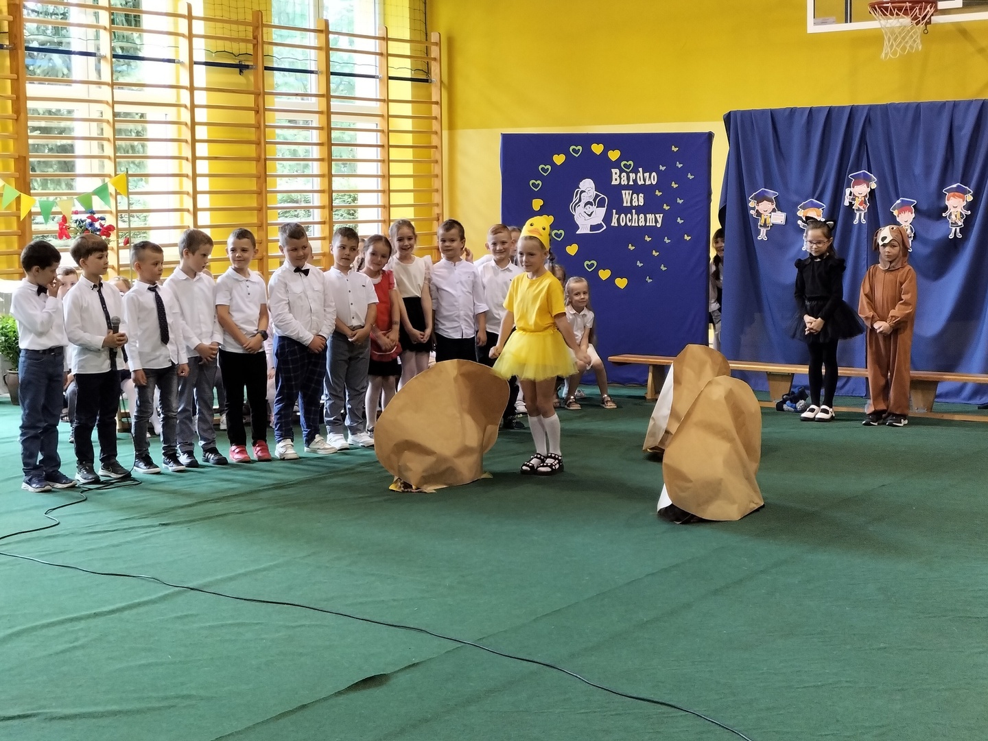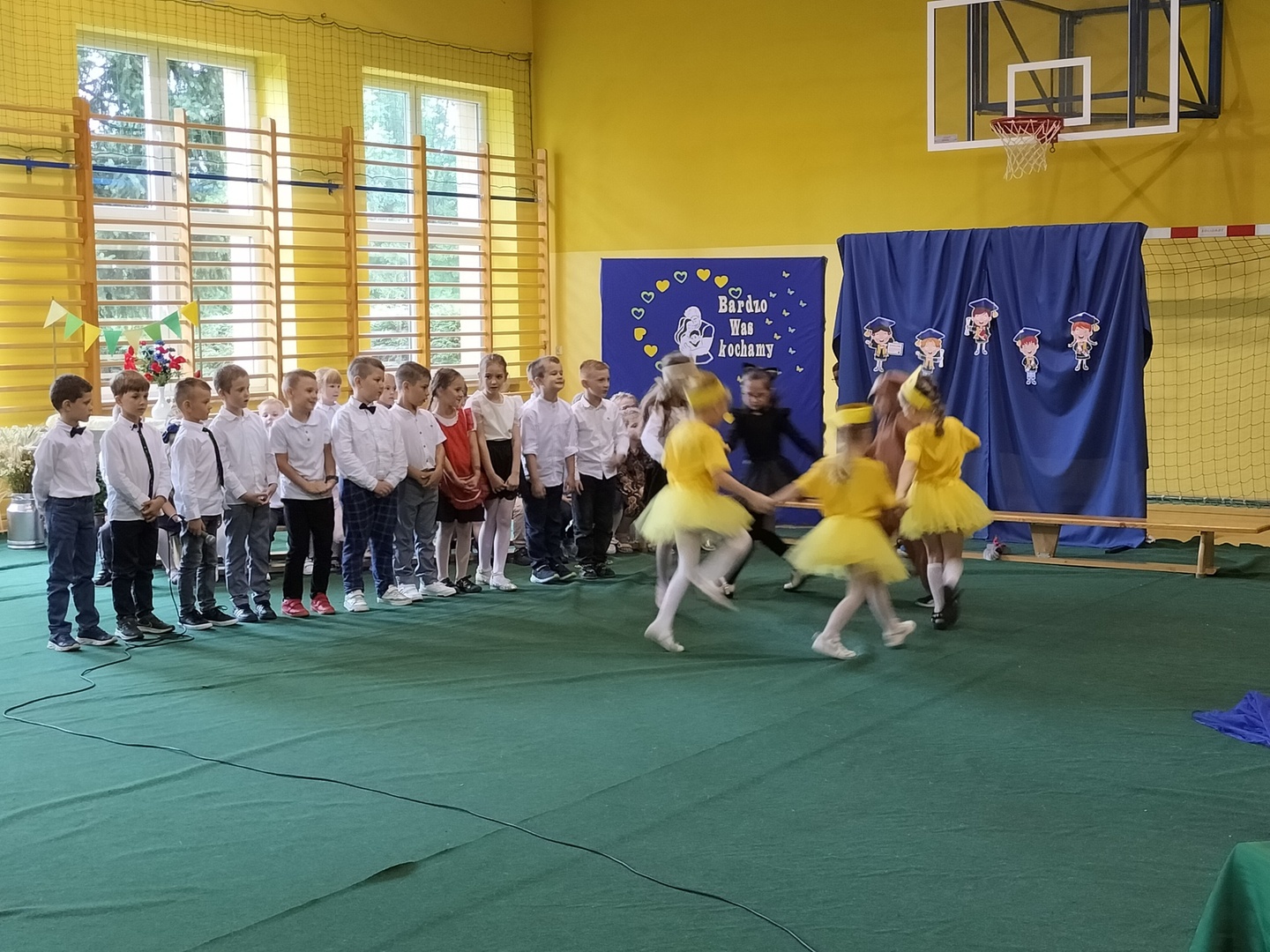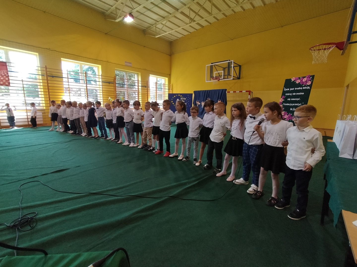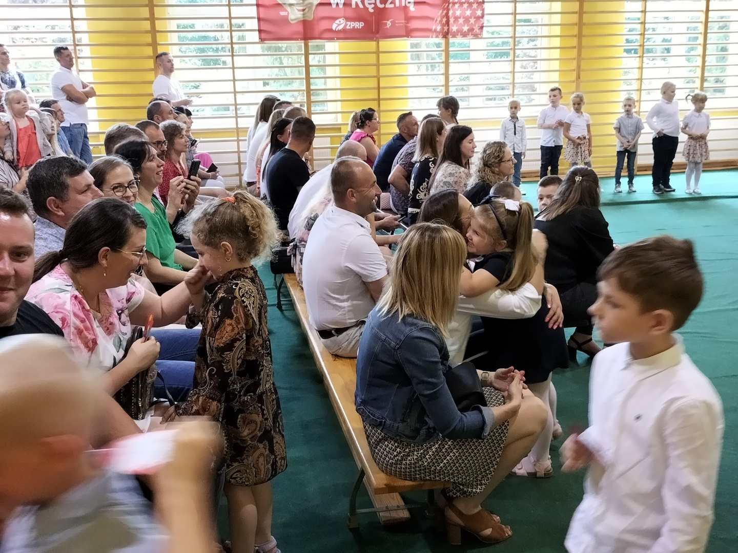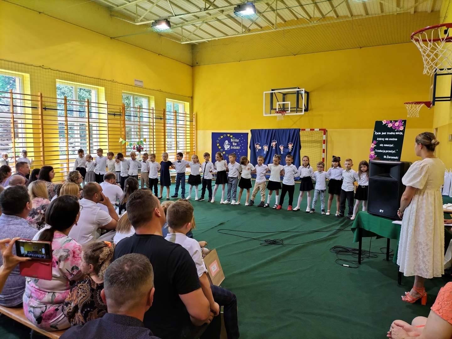 Czas leci nieubłaganie i te dzieci, które jeszcze niedawno przekraczały po raz pierwszy progi przedszkola po wakacjach wkraczają w kolejny etap edukacyjny. Był to wyjątkowy dzień dla całej naszej przedszkolnej społeczności. Tego dnia odbyło się uroczyste pożegnanie starszaków. Dzieci wspaniale zaprezentowały program artystyczny. Były wierszyki, piosenki i tańce. Emocji nie brakowało. Starszaki, jak przystało na absolwentów przedszkola, w odświętnych strojach i z powagą w głosie, recytowały wiersze, śpiewały piosenki i zatańczyły Poloneza. Podczas tej uroczystości dzieci również podziękowały swoim rodzicom za obecność, miłość, troskę i każdy zwyczajny dzień. Na zakończenie wręczył drobny upominek z okazji ich święta. Dzieci natomiast zostały obdrowane dyplomami oraz prezentami.