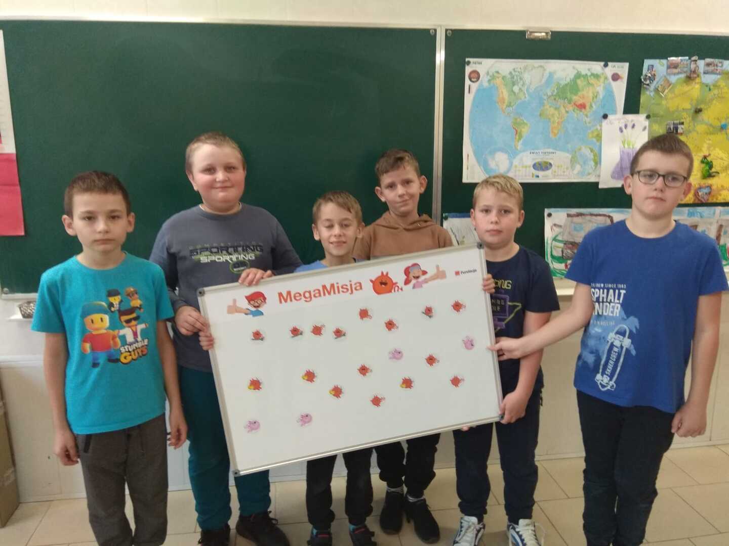 Spośród wielu zgłoszeń nasz filmik konkursowy nagrany przez wychowawczynię klasy III Beatę Klause zdobył uznanie komisji konkursowej i w tym roku szkolnym jej wychowankowie będą rozwijać Mega Moce – czyli kompetencje emocjonalno –społeczne takie jak: umiejętność współpracy, komunikacji, rozumienia emocji swoich i innych, krytycznego myślenia, czy kulturalnej dyskusji. Dzięki zaangażowaniu w wykonanie pierwszych zadań otrzymaliśmy nagrody m.in. kolorowanki, kalendarze, tablicę suchościeralną i magnesy. We wszystkich spotkaniach uczestniczy trochę zwariowany Psotnik, który angażuje uczniów w kolejne wyzwania.
