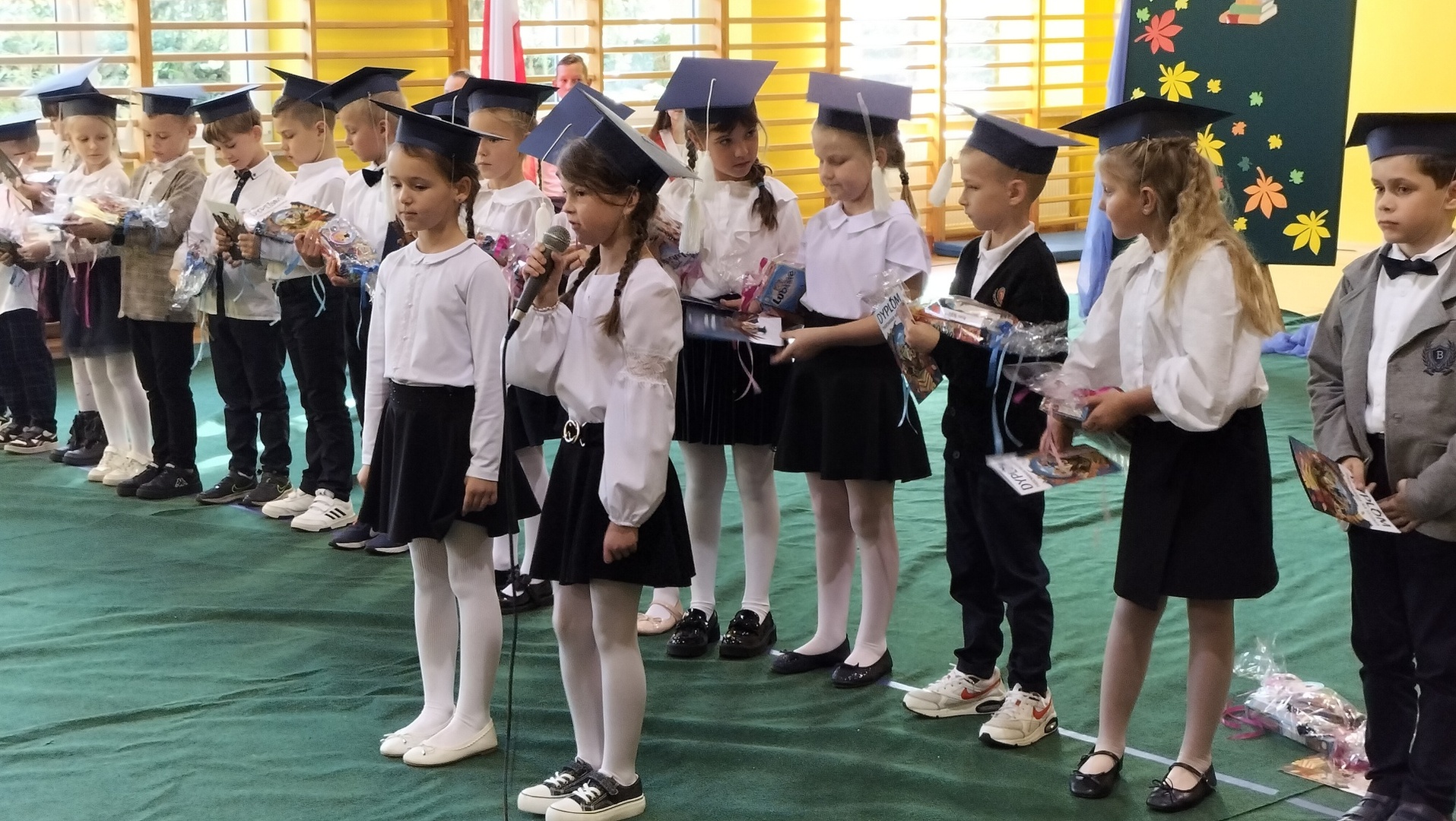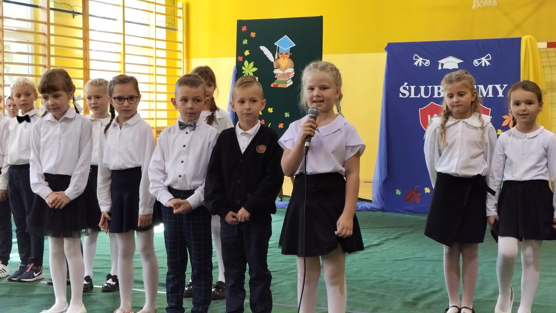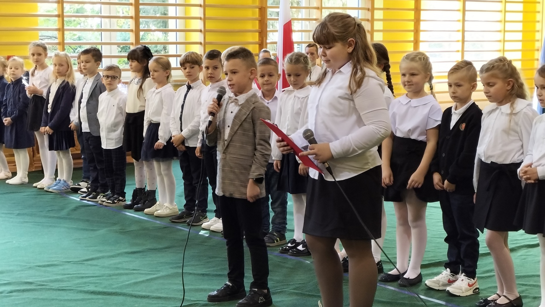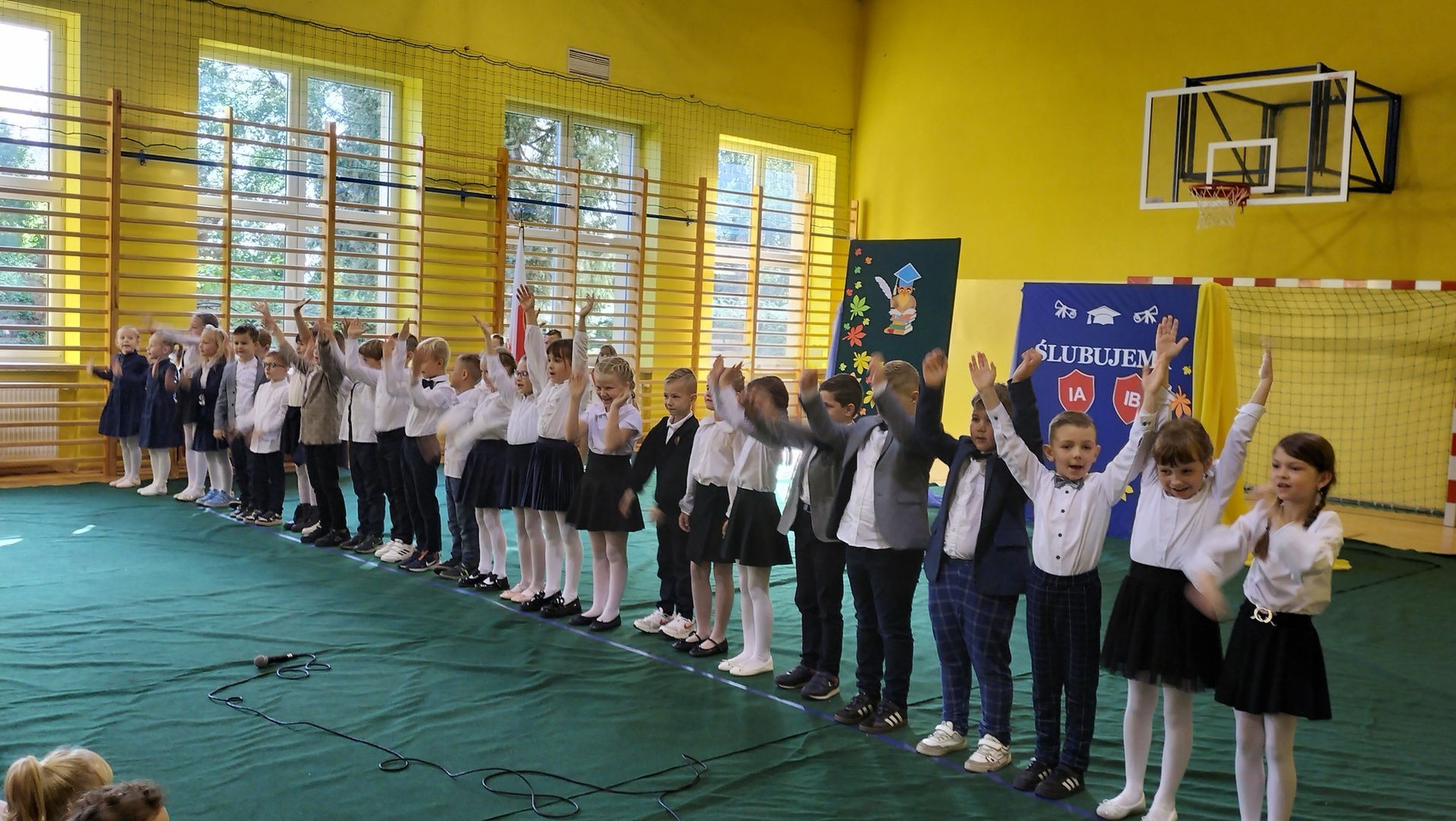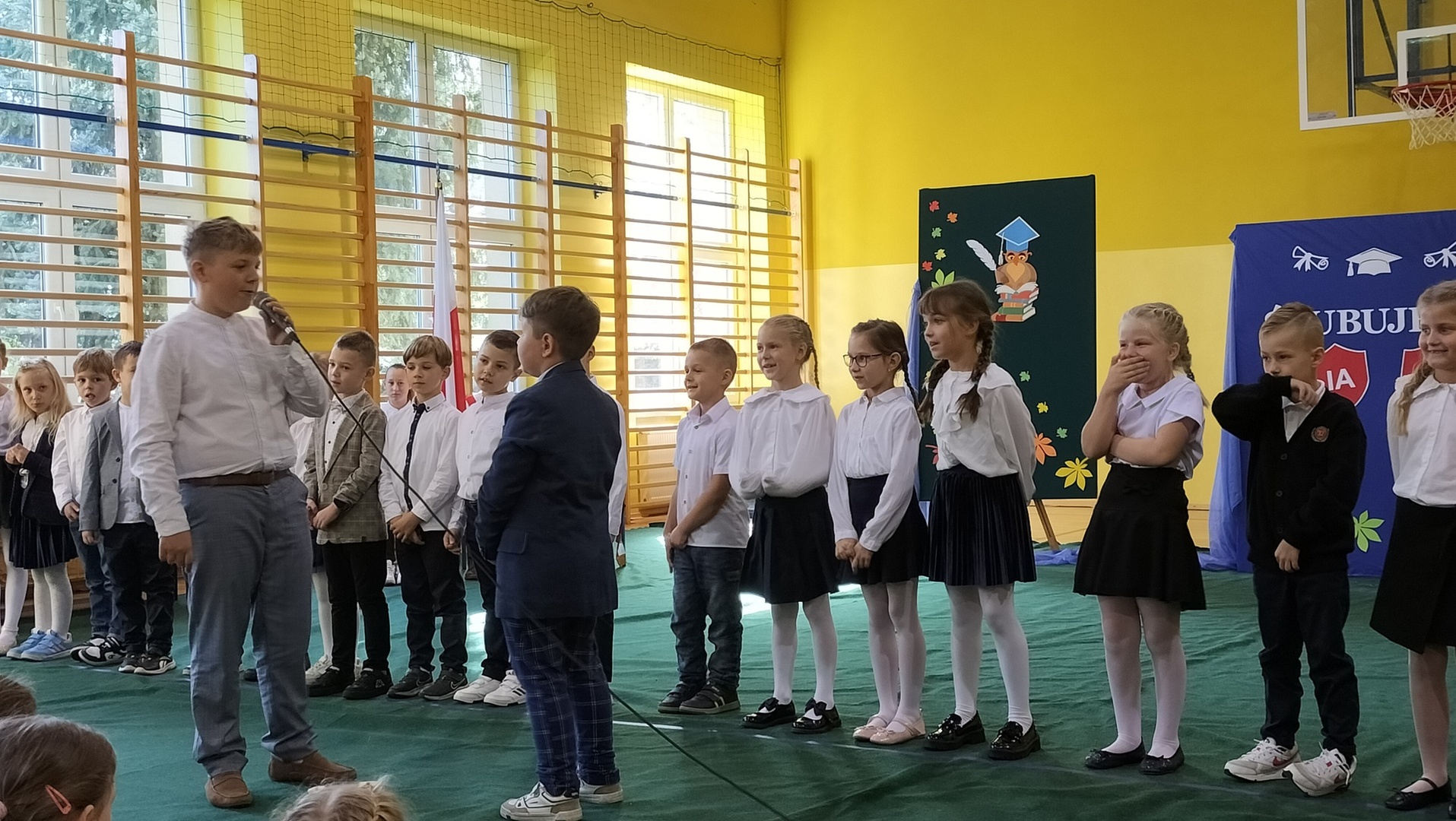 18 października 2024 r. w naszej szkole odbyła się uroczystość pasowania na ucznia. Ten dzień był wyjątkowy zarówno dla pierwszaków, jak i rodziców, nauczycieli, wychowawców oraz całej społeczności szkolnej. Podczas uroczystości pierwszoklasiści udowodnili, że potrafią pięknie śpiewać, tańczyć i recytować. Każdy z uczniów powiedział o sobie kilka zdań, aby inni mogli poznać jego zalety, osobowość, nawyki lub pasje. Najważniejszą chwilą był moment pasowania. Pani Dyrektor Alina Rączka odczytała słowa roty ślubowania, a wszyscy pierwszoklasiści przyrzekli, że będą wypełniać swoje obowiązki, pilnie się uczyć, szanować innych i przestrzegać zasad. Kolejno każdy z uczniów został pasowany wielkim ołówkiem przez Panią Dyrektor, otrzymał dyplom i legitymację szkolną. W tym momencie każdy pierwszak stał się pełnoprawnym uczniem. Wielką radość spotęgowały słodkie upominki, które uczniowie otrzymali od rodziców. Po oficjalnej części uroczystości odbył się poczęstunek zorganizowany przez rodziców uczniów klasy 1a i 1b.