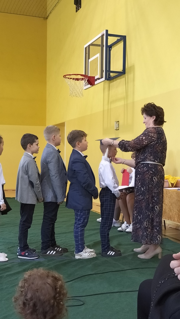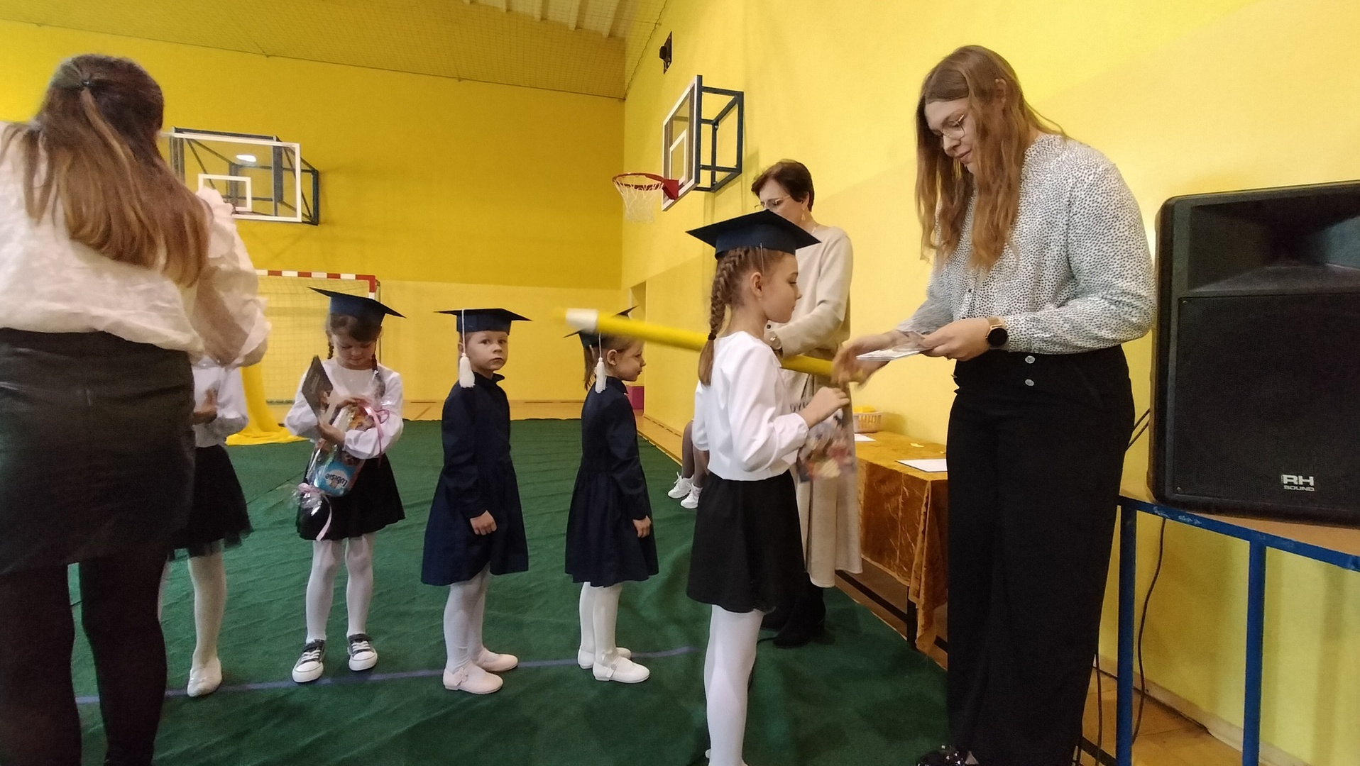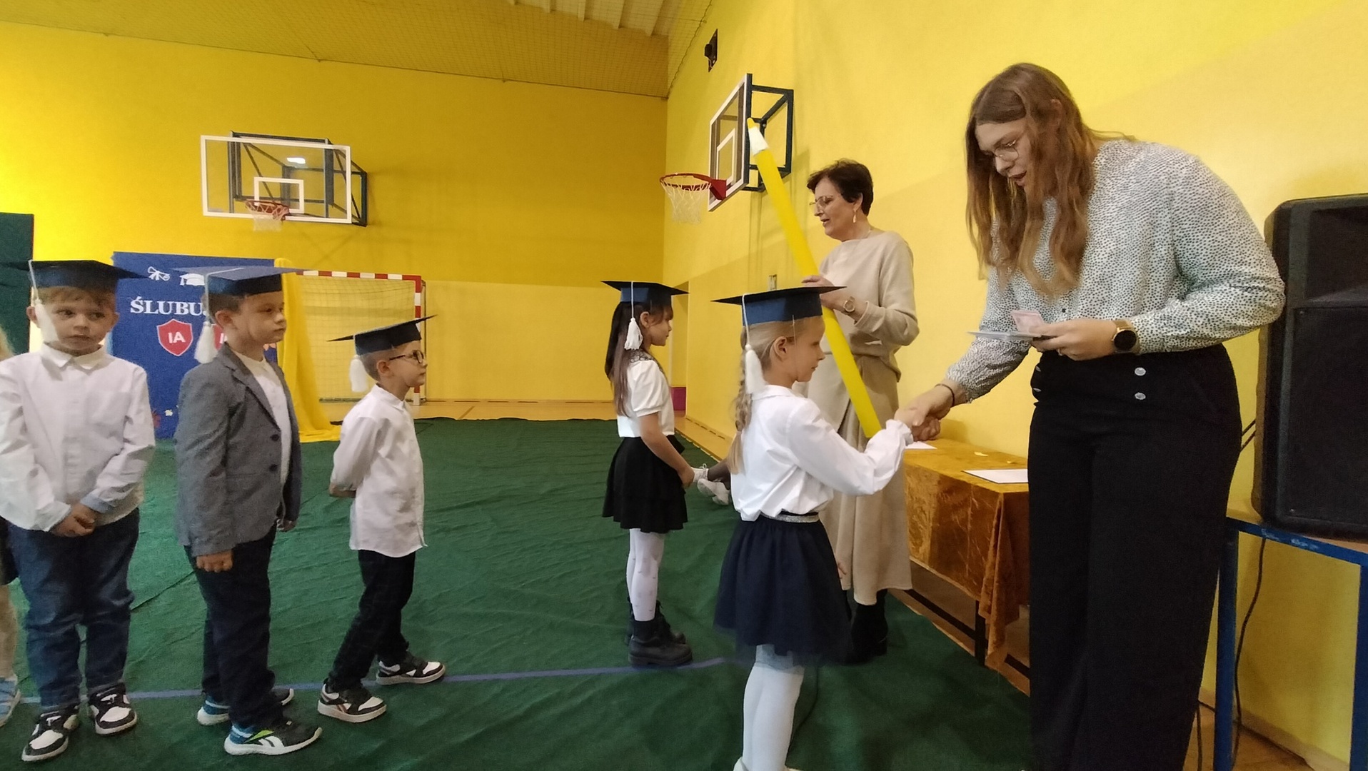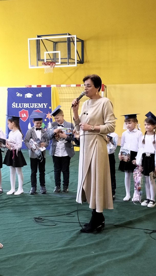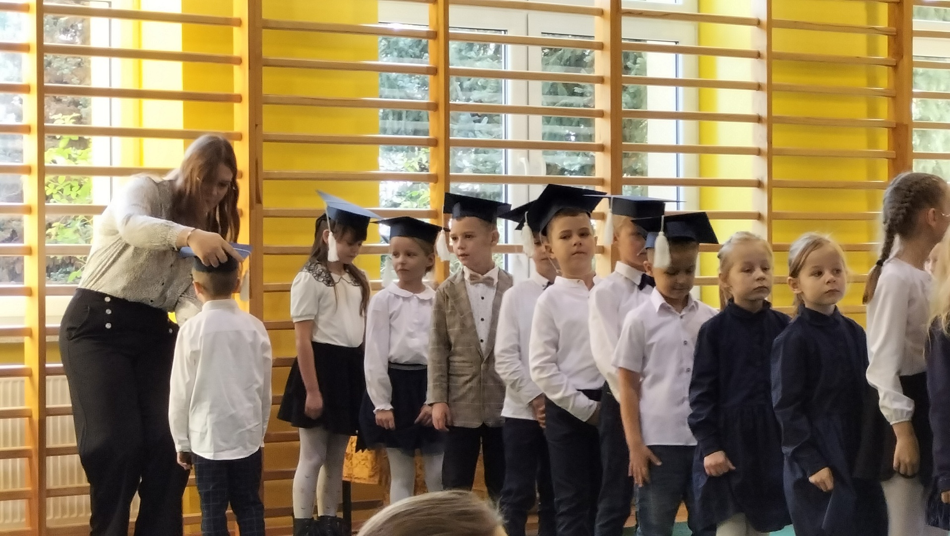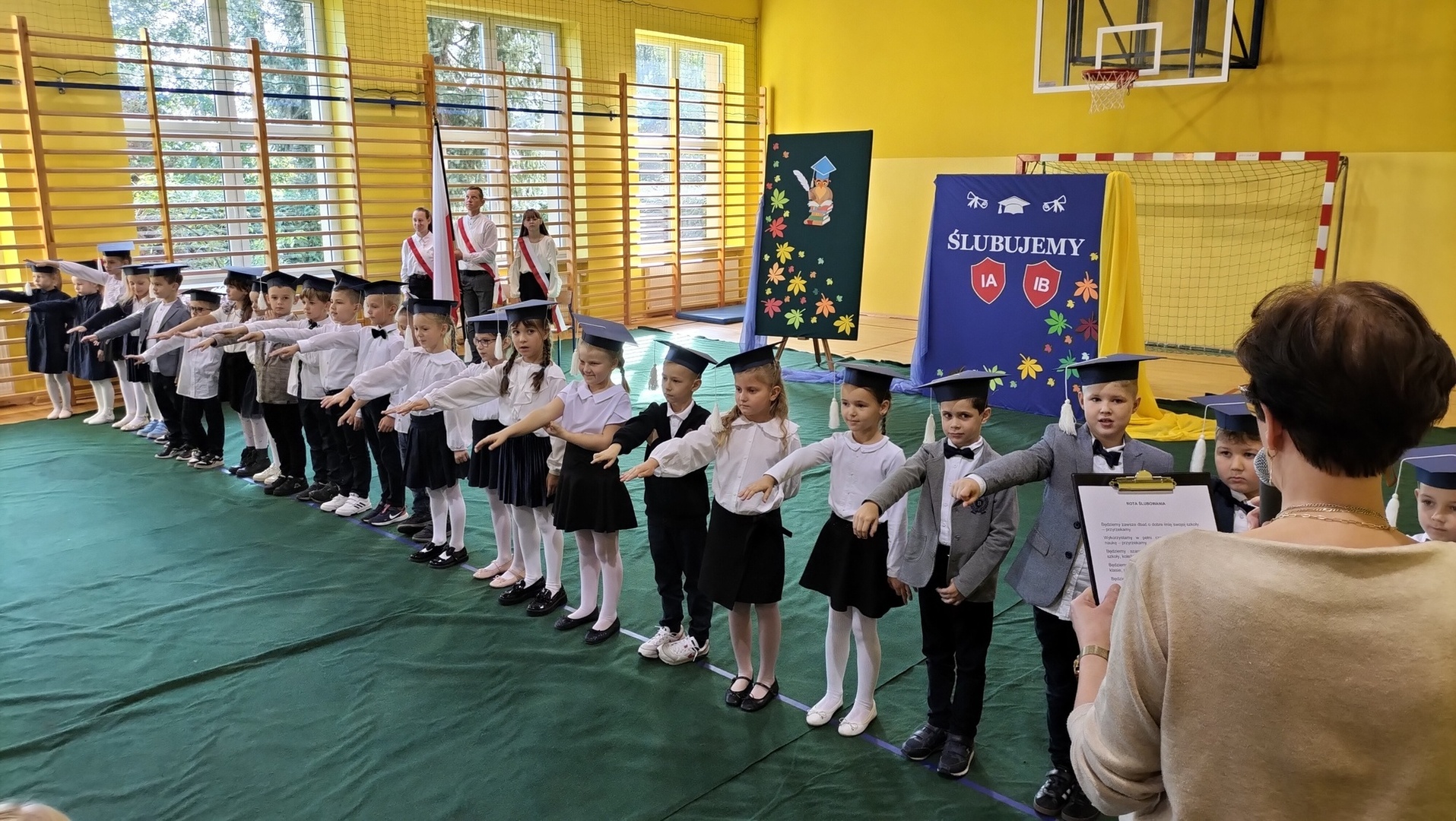 18 października 2024 r. w naszej szkole odbyła się uroczystość pasowania na ucznia. Ten dzień był wyjątkowy zarówno dla pierwszaków, jak i rodziców, nauczycieli, wychowawców oraz całej społeczności szkolnej. Podczas uroczystości pierwszoklasiści udowodnili, że potrafią pięknie śpiewać, tańczyć i recytować. Każdy z uczniów powiedział o sobie kilka zdań, aby inni mogli poznać jego zalety, osobowość, nawyki lub pasje. Najważniejszą chwilą był moment pasowania. Pani Dyrektor Alina Rączka odczytała słowa roty ślubowania, a wszyscy pierwszoklasiści przyrzekli, że będą wypełniać swoje obowiązki, pilnie się uczyć, szanować innych i przestrzegać zasad. Kolejno każdy z uczniów został pasowany wielkim ołówkiem przez Panią Dyrektor, otrzymał dyplom i legitymację szkolną. W tym momencie każdy pierwszak stał się pełnoprawnym uczniem. Wielką radość spotęgowały słodkie upominki, które uczniowie otrzymali od rodziców. Po oficjalnej części uroczystości odbył się poczęstunek zorganizowany przez rodziców uczniów klasy 1a i 1b.