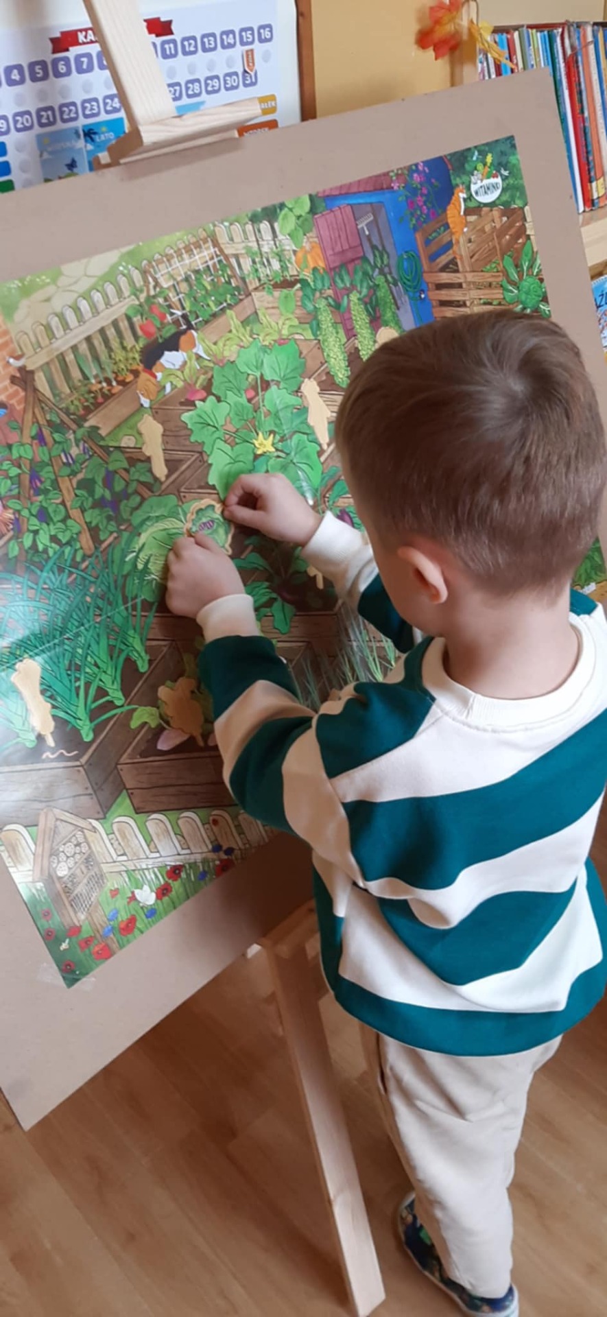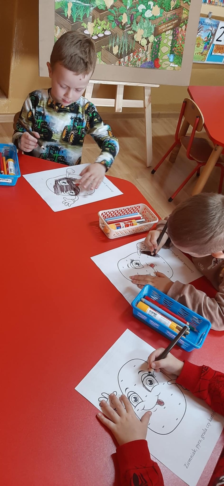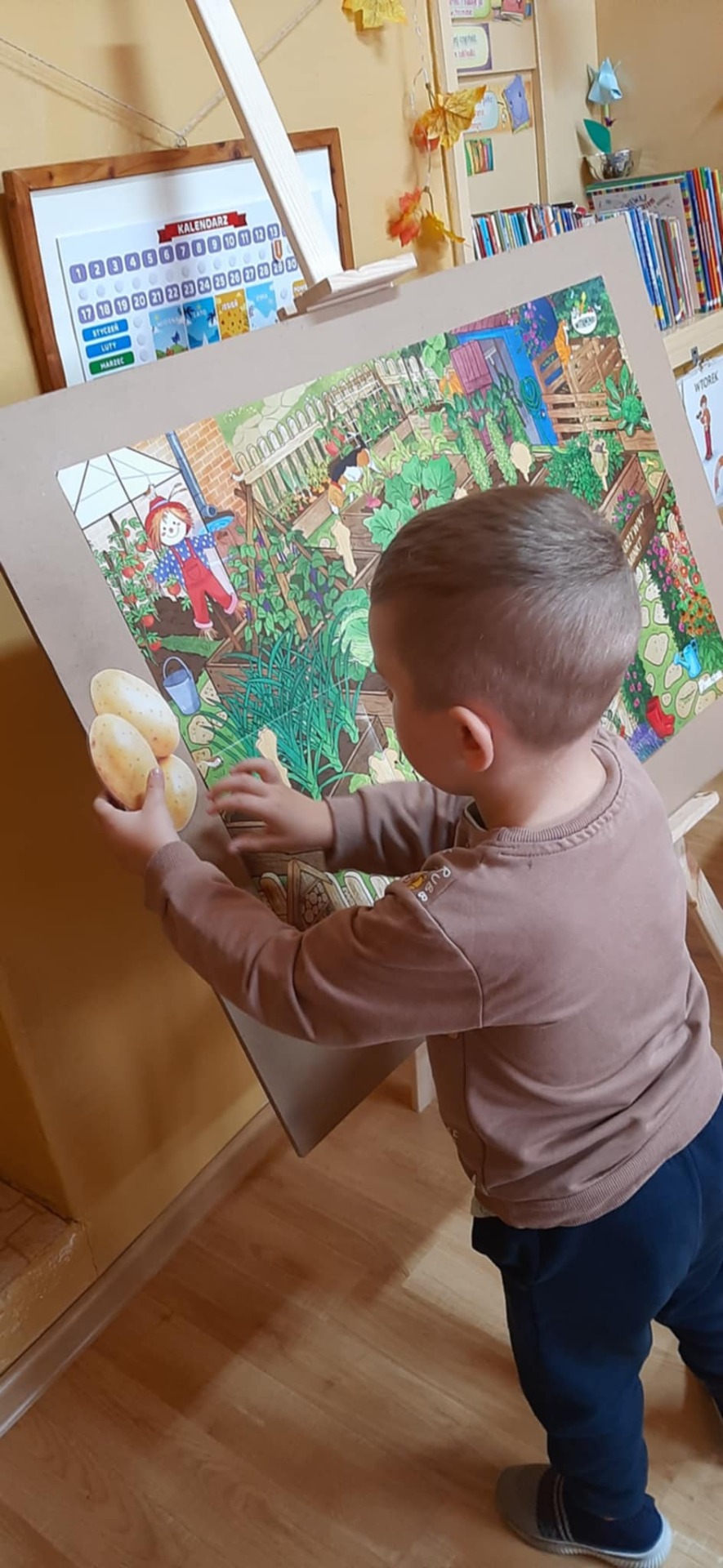 Będziemy co jakiś czas poznawać sylwety nowych warzyw, zapoznawać się z ich wyglądem, wartościami odżywczymi oraz będziemy rozmawiać lub nawet wykonywać potrwy jakie można przygotować z użyciem danego warzywa. Naszą przygodę rozpoczęliśmy z Ziemniakiem Ziemowitem 🥔, z którym było wiele zabawy. Dzieci doskonale znały potrawy jakie można wykonać z wykorzystaniem ziemniaków. Poznały również sposób w jaki rośnie ziemniak oraz historię jego początków w państwie polskim.