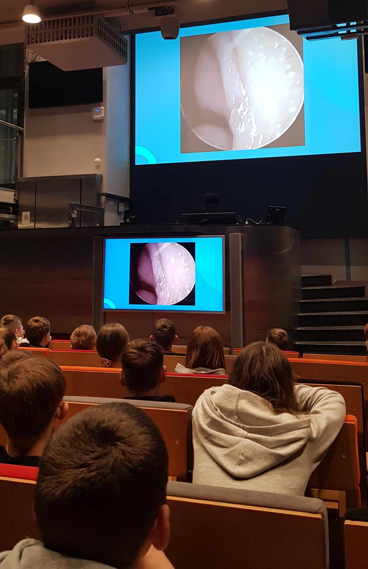 Brali udział w lekcji fizyki- "Jak powstaje prąd elektryczny"; wysłuchali wykładu "Jak zajrzeć w głąb człowieka".