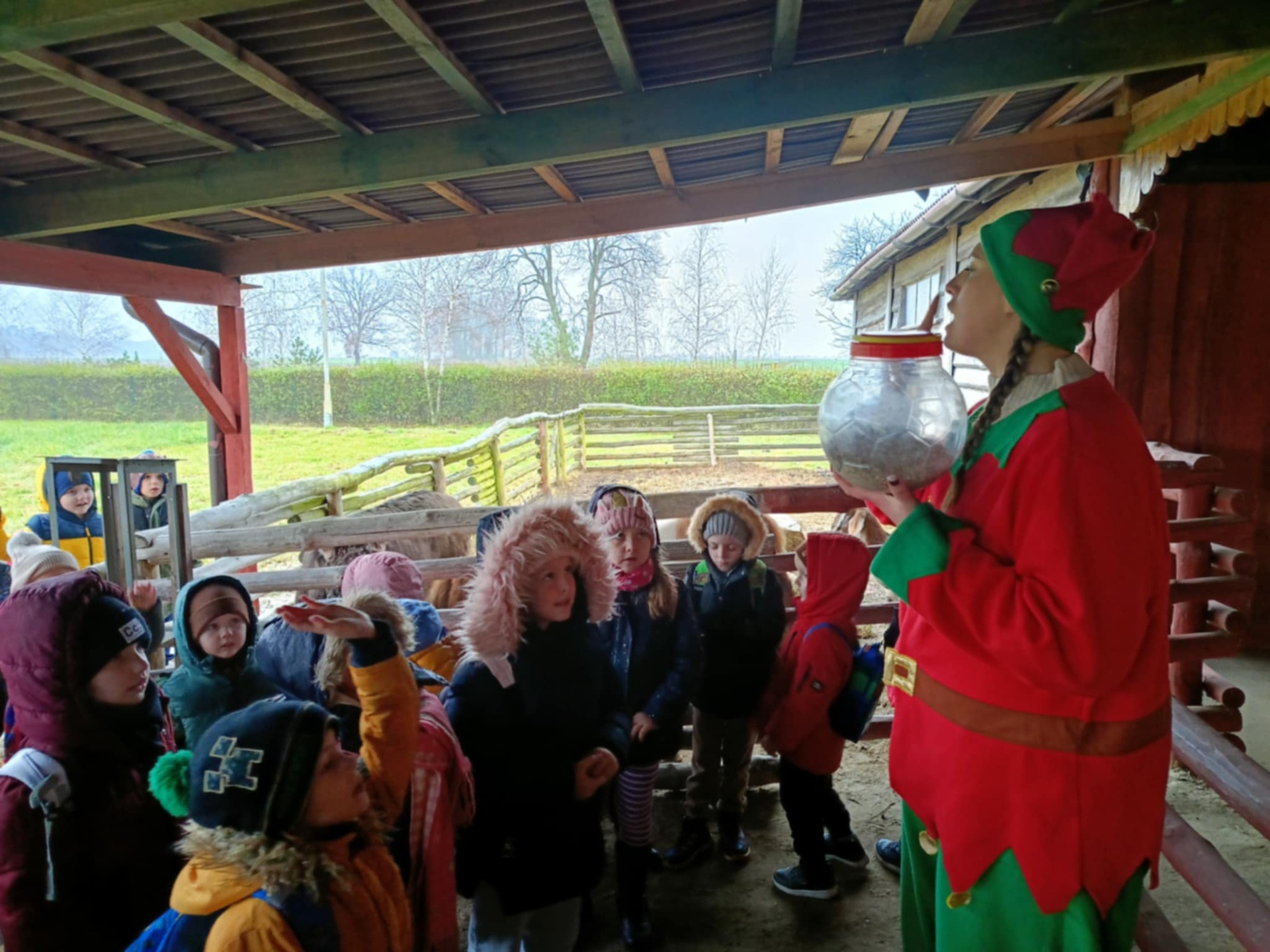 W poniedziałkowy poranek przedszkolaki z Oddziału Przedszkolnego we Wrotkowie i Oddziału "0" z Mokronosa wybrały się na świąteczną wycieczkę. W programie wyjazdu znalazły się aktrakcje takie jak zwiedzanie żywej szopki bożonarodzeniowej, karmienie zwierząt, spotkanie ze Św. Mikołajem, pisanie listu do Św. Mikołaja, warsztaty kreatywne oraz szalone zabawy w sali zabaw i na dmuchańcach. Wszystkie punkty wycieczki zostały zrealizowane i każdy z nich bardzo podobał się dzieciom. Przedszkolaki z drobnymi upominkami, własnoręcznie wykonaną bombką oraz uśmiechami na twarzach i masą cudownych wspomnień wróciły do domów. 🎁