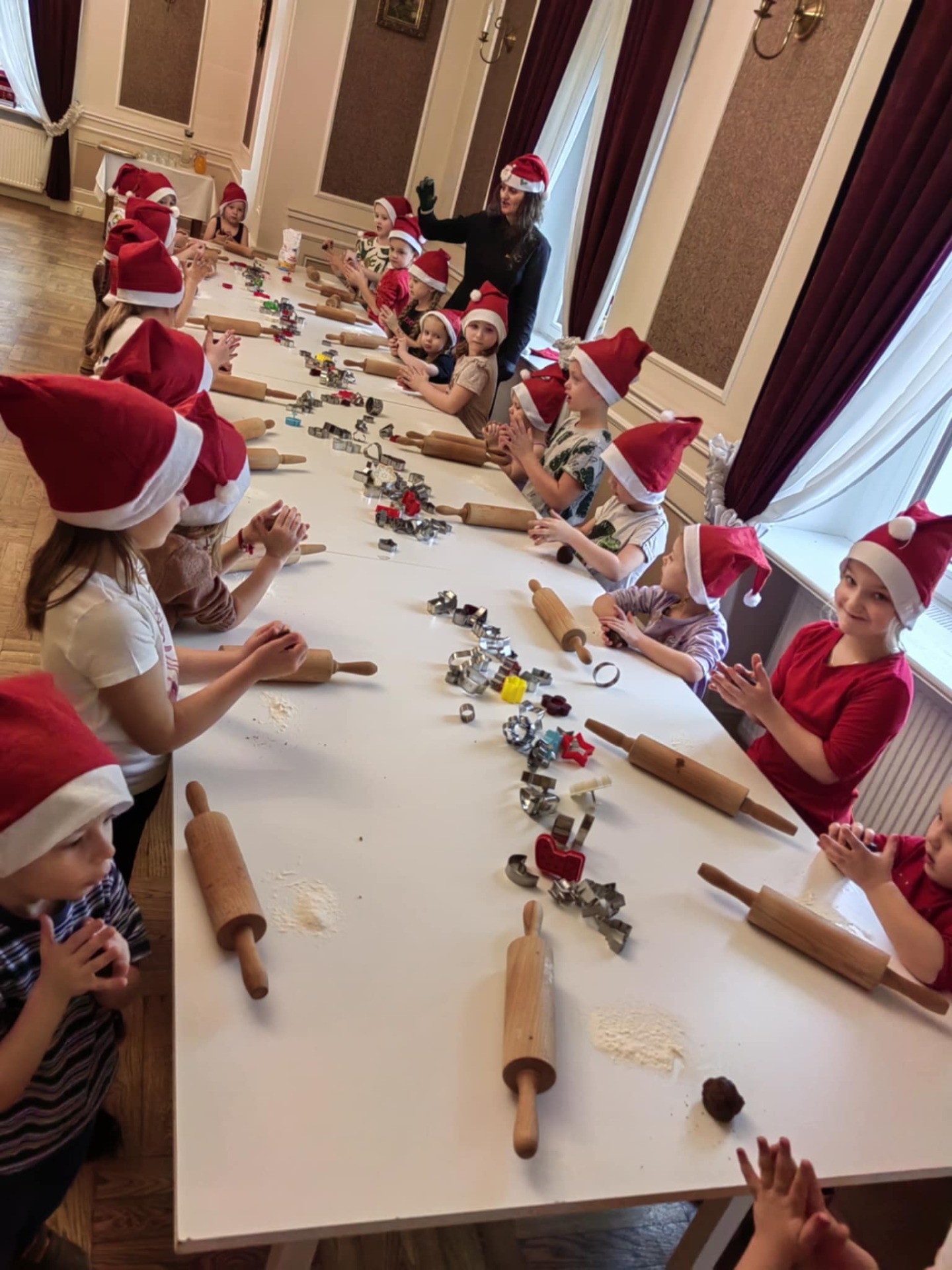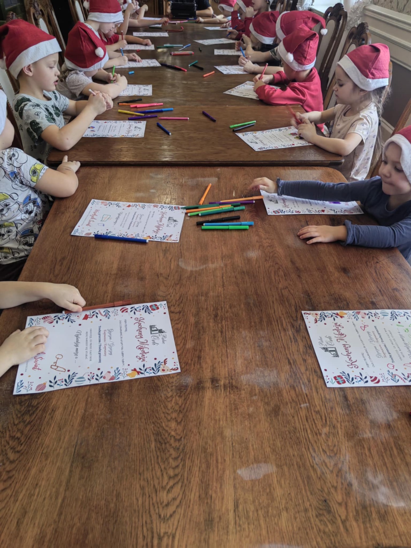 Klimat świąt czuć dookoła. Przedszkolaki wybrały się do Pałacu w Orli gdzie miały okazję świetnie zabawić się z animatorem, napisać list do św. Mikołaja, upiec i ozdobić pierniki, a na koniec obejrzeć film od św. Mikołaja. Czas minął nam szybko i bardzo miło. W świątecznych nastrojach i z uśmiechem na twarzy wróciliśmy do przedszkola.