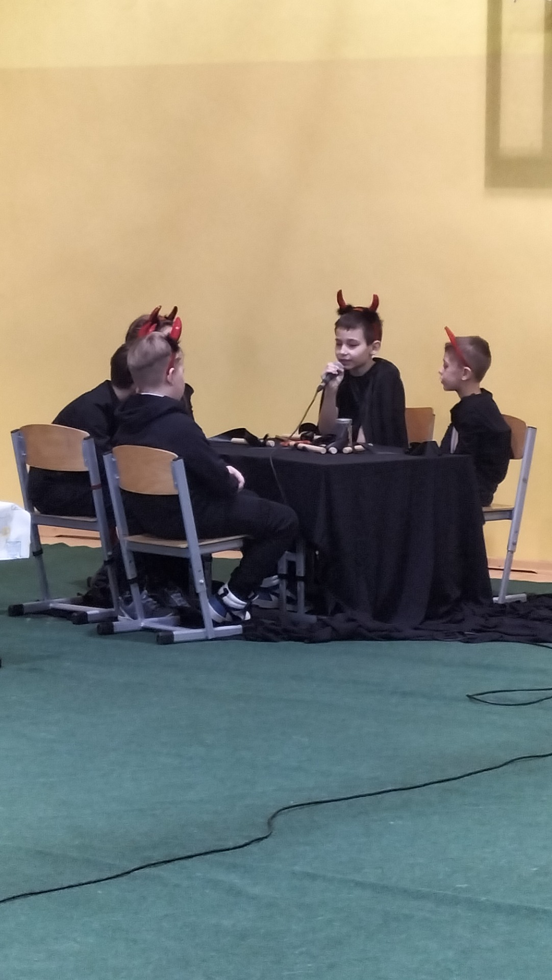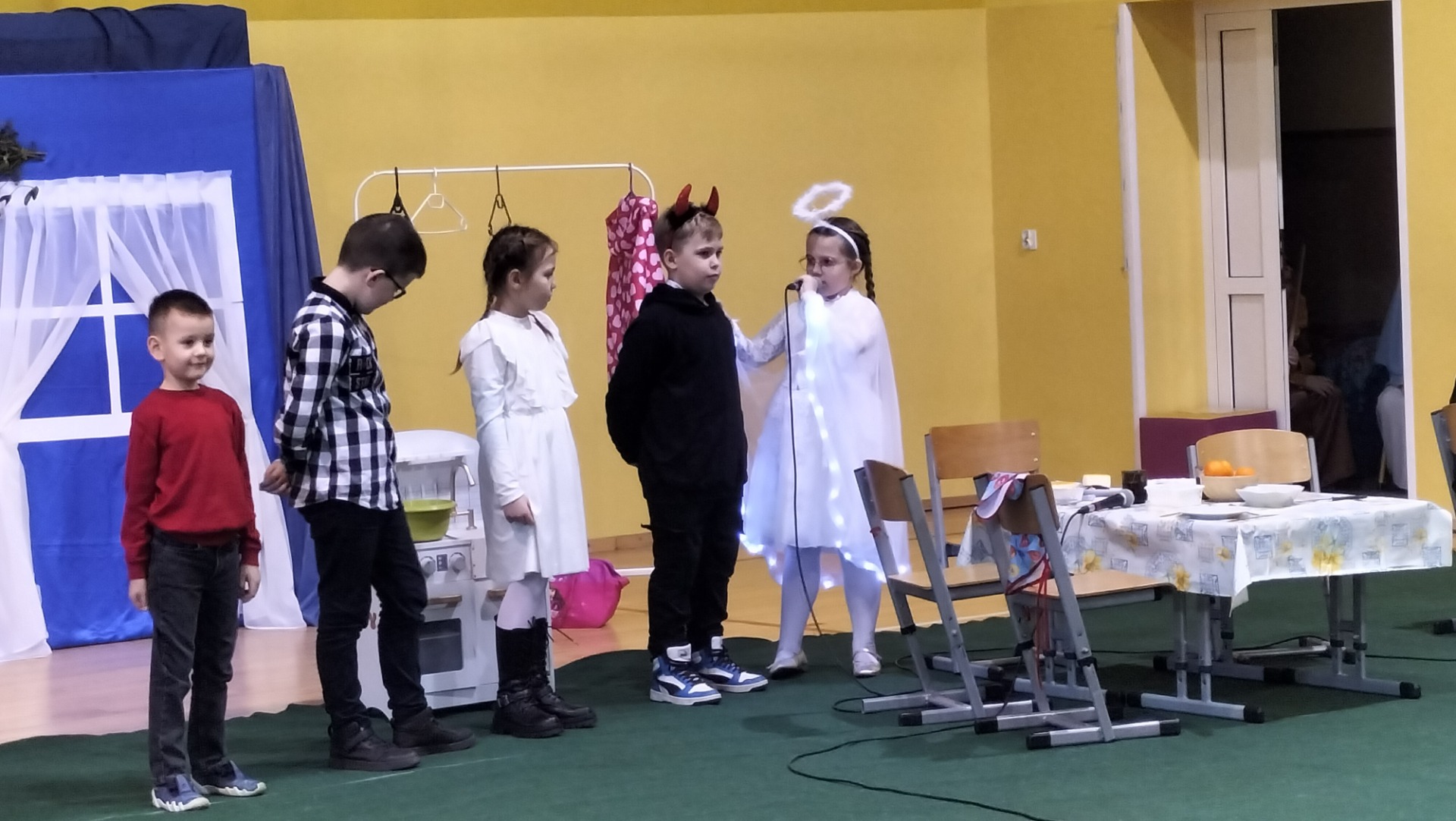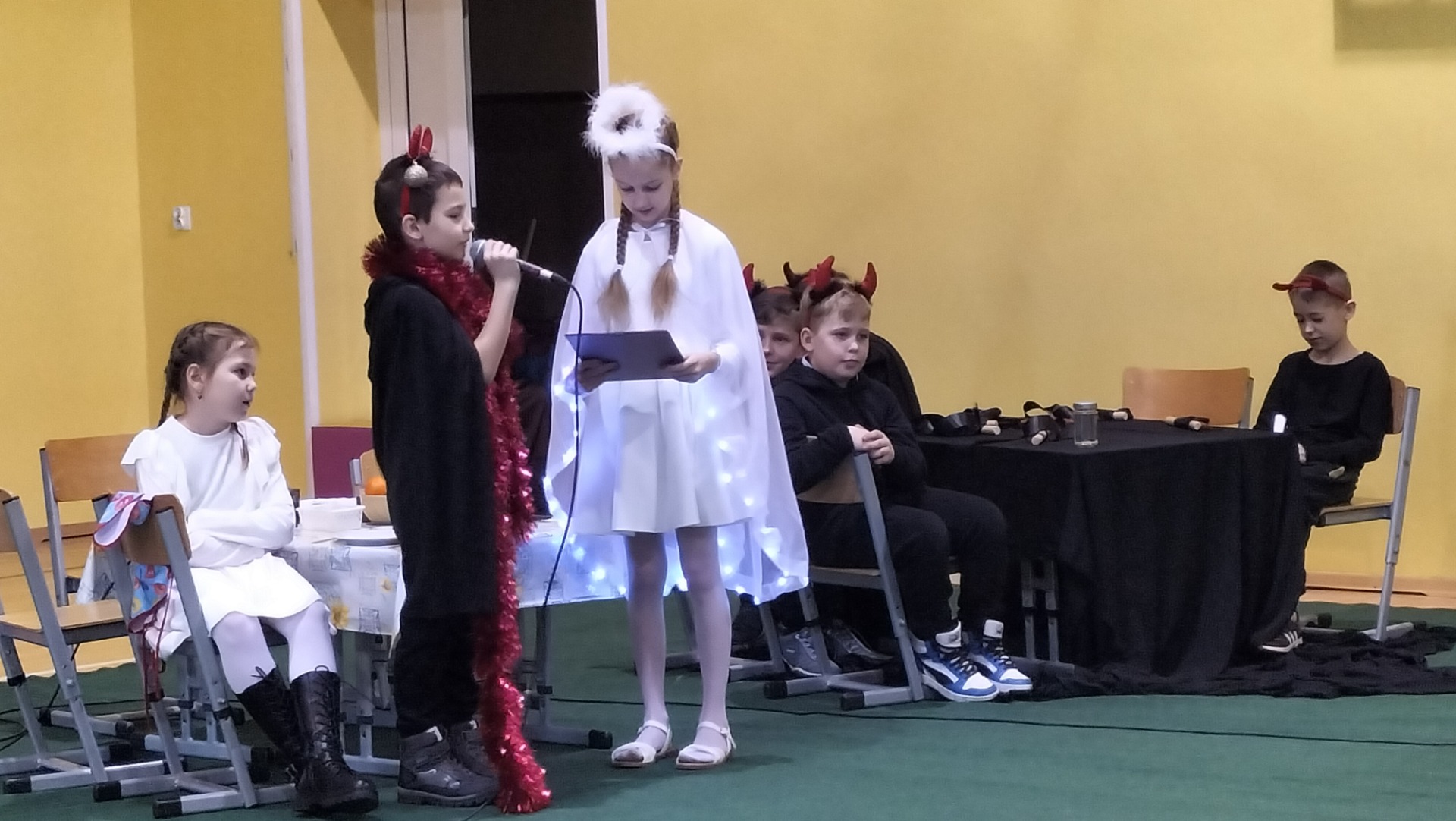 Klasa III wraz wychowawczynią B.Klause, przygotowała przedstawienie symboliczne, w którym rozgrywała się nieustanna walka dobra ze złem. Kontrast między postaciami aniołów i demonów podkreślał znaczenie, iż spór ten toczy się w życiu codziennym każdego z nas.
