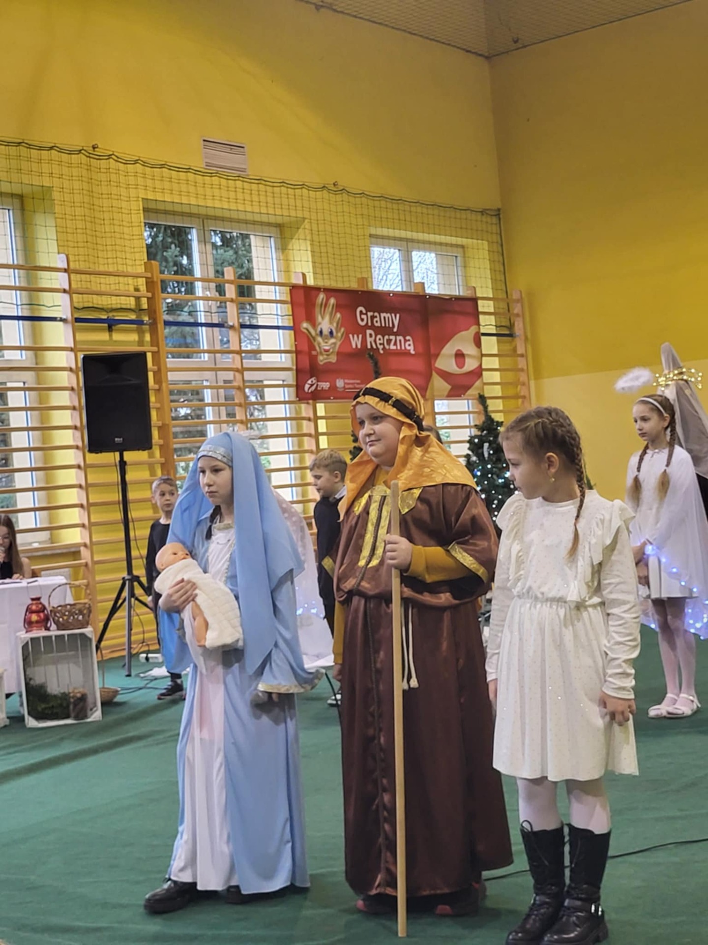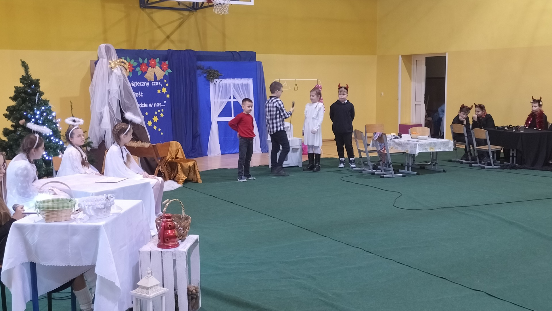 W ciepłej atmosferze świątecznego oczekiwania, w Szkole Podstawowej w Mokronosie, odbyło się niezwykłe przedstawienie świąteczne , nawiązujące do tradycyjnych jasełek.