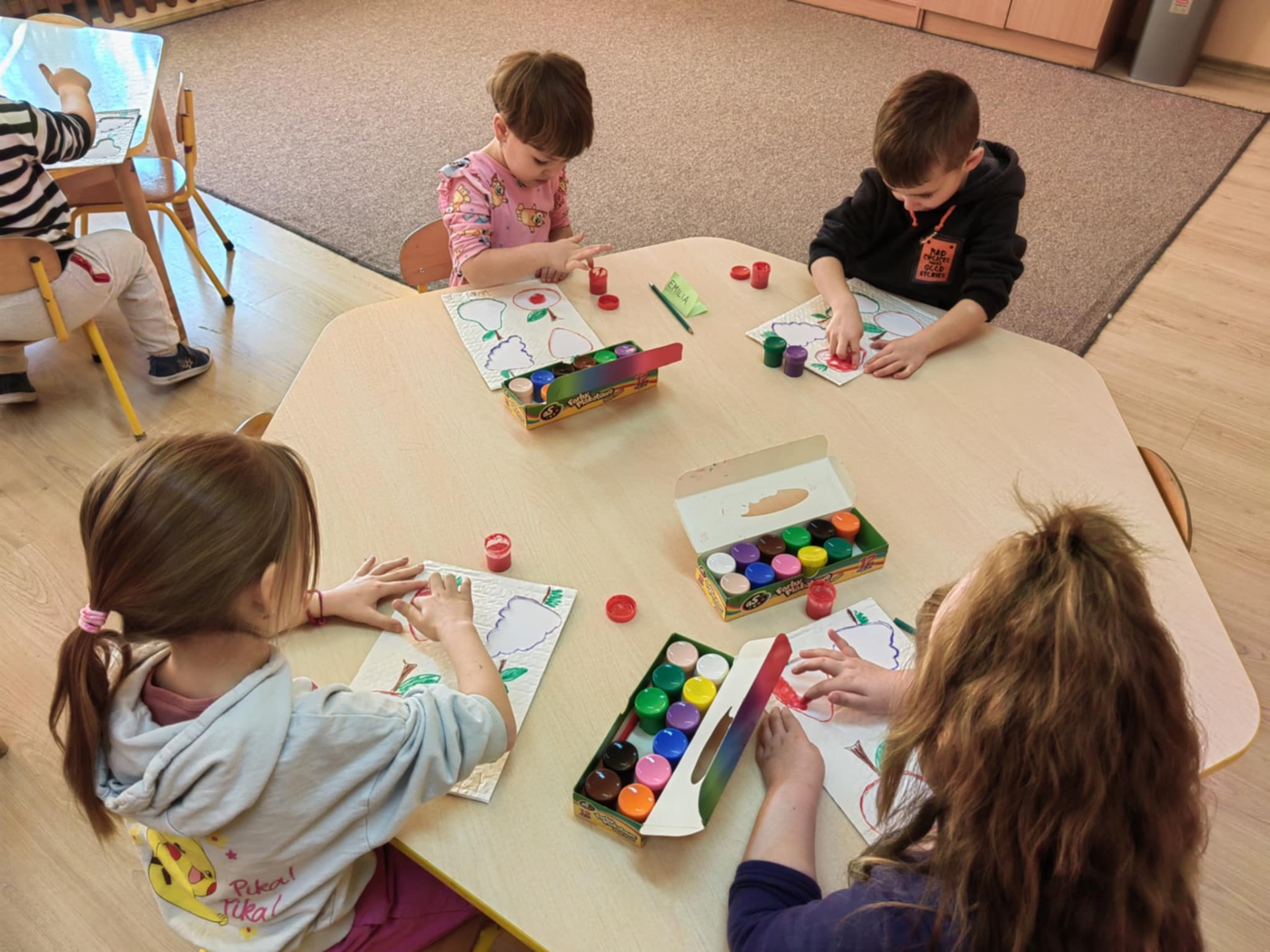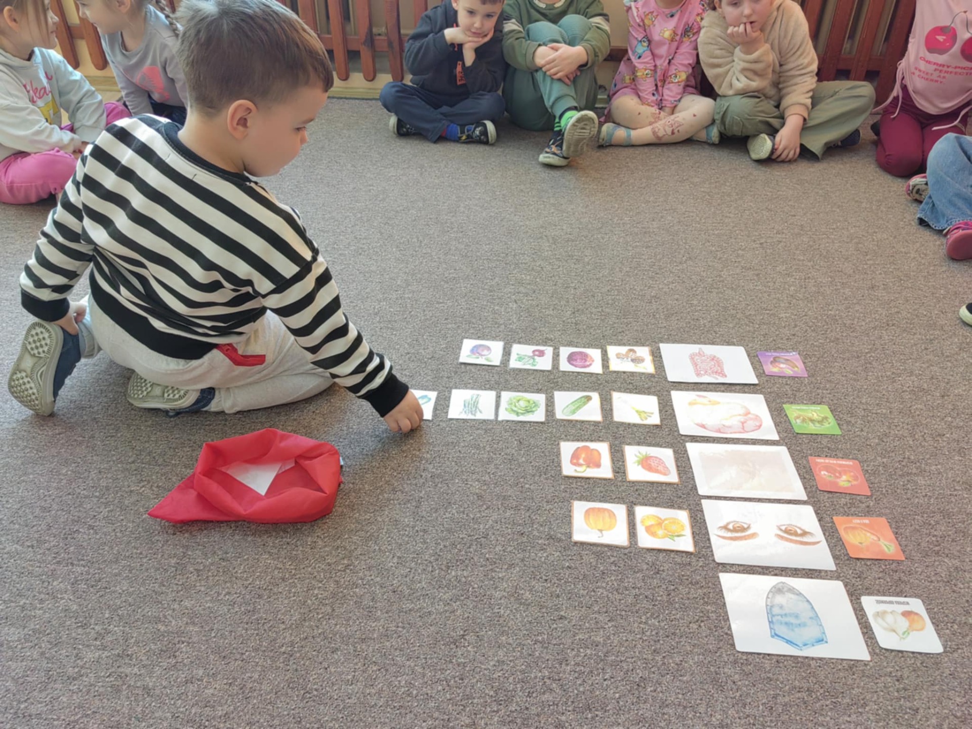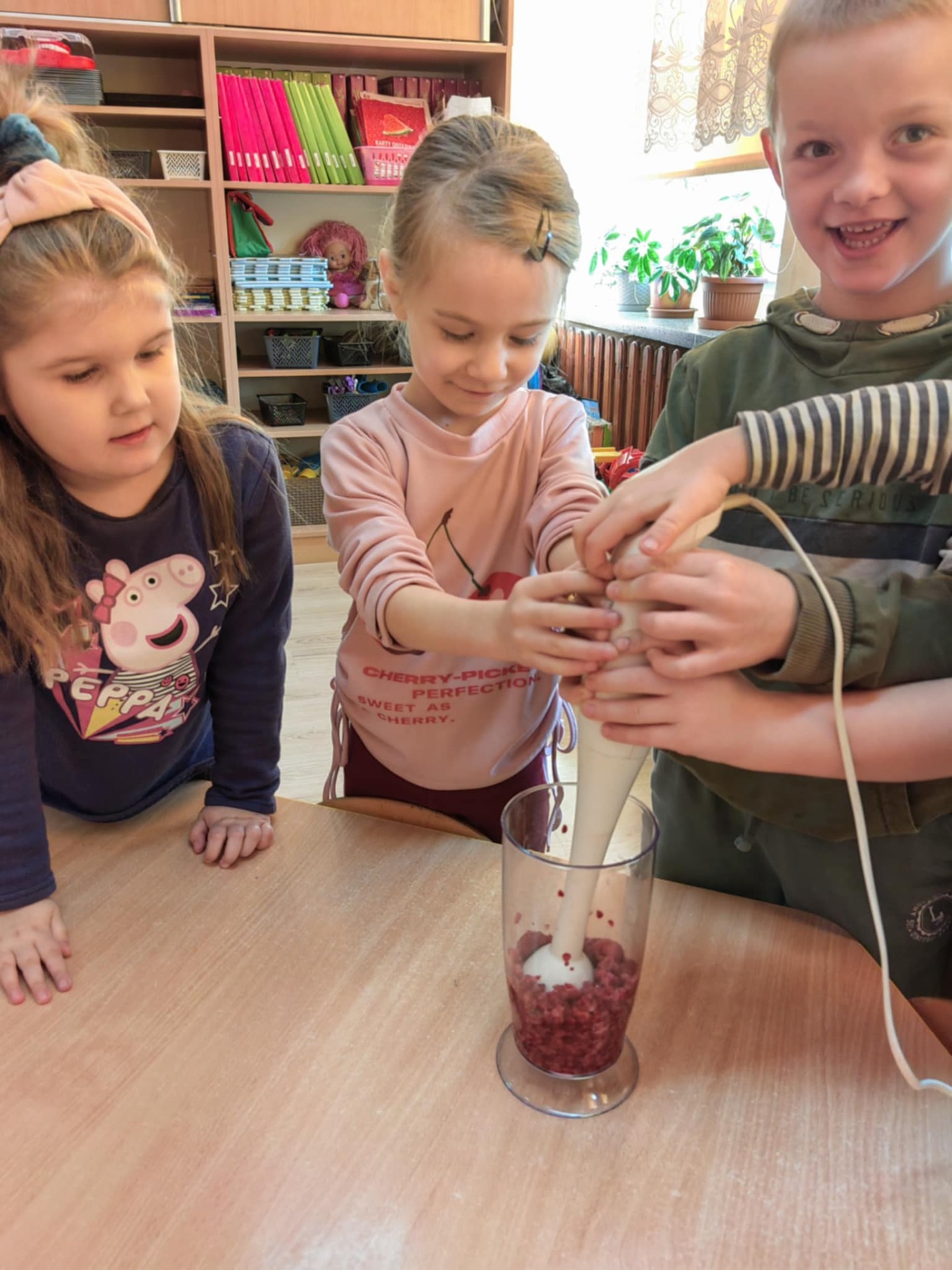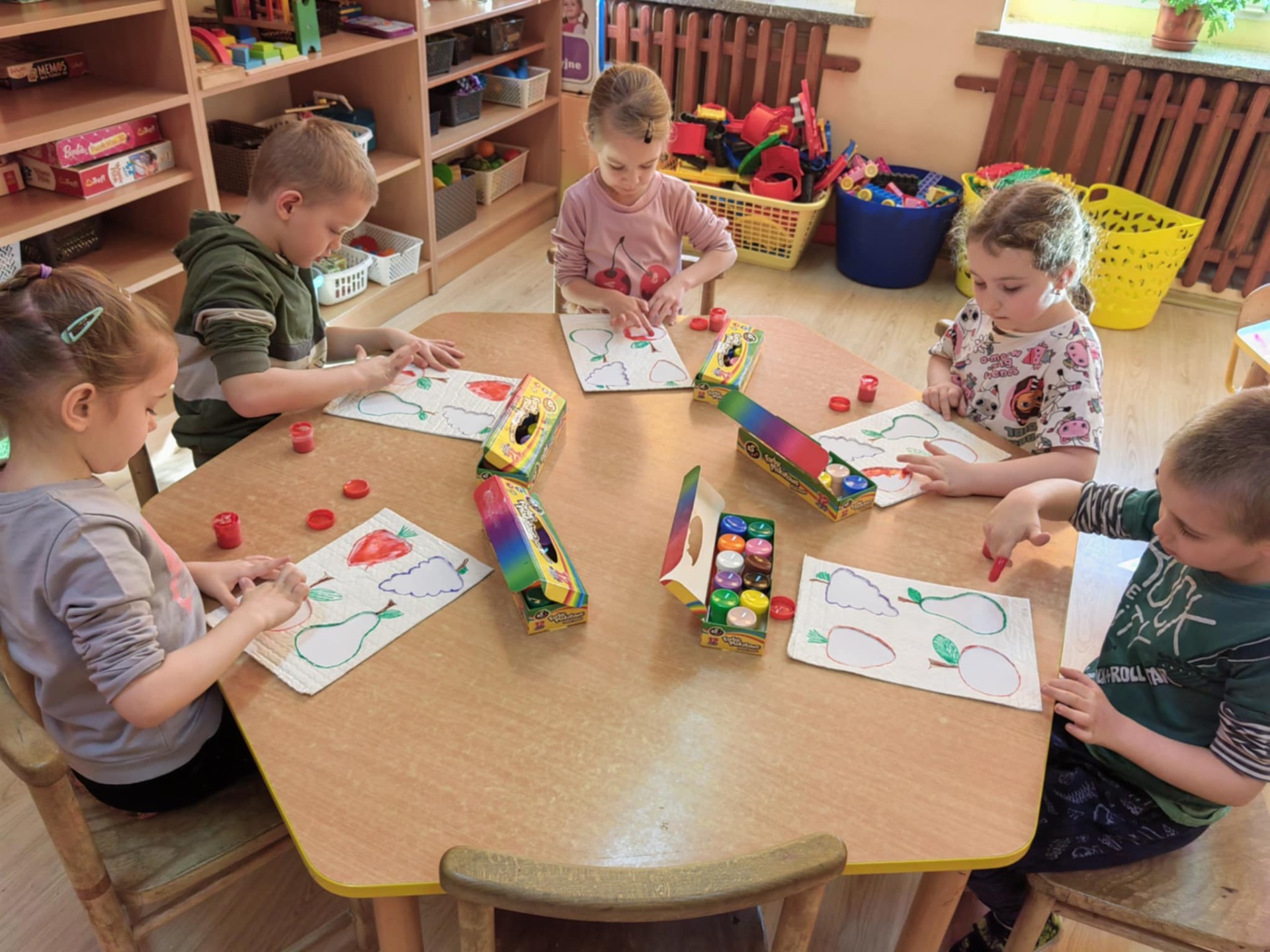 Grupa 4-5 latki zrealizowała kolejne zadanie tym razem „Wiemy po co jemy” w ramach programu edukacyjnego „Gotuj się na zmiany”. Celem zajęć było wprowadzenie dzieci w świat prawidłowych nawyków żywieniowych poprzez ciekawe i angażujące zabawy. Przedszkolaki poznały jakie warzywa i owoce wpływają na nasza odporność, wzrok, skórę, pracę mózgu oraz jelit. Zorganizowane zostały zabawy dla rozwoju grafomotoryki dużej oraz małej. Na zakończenie przygotowały zdrowy, owocowy deser.