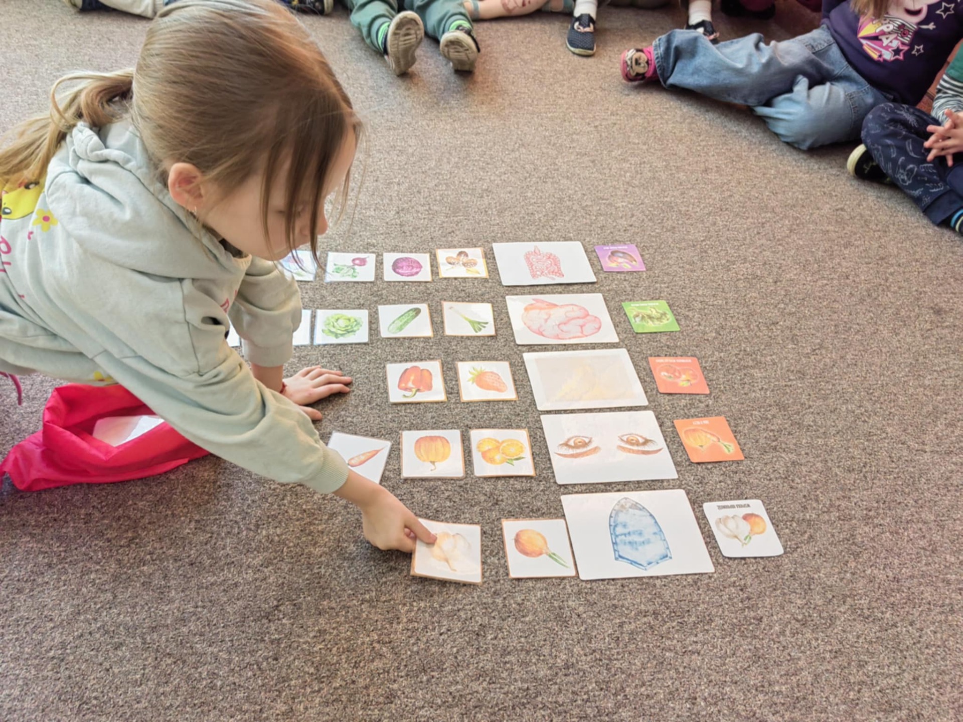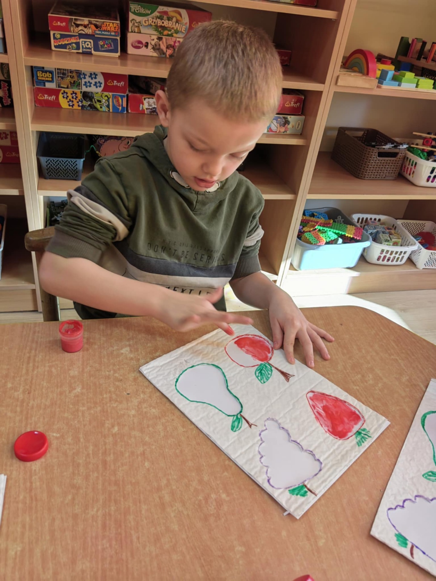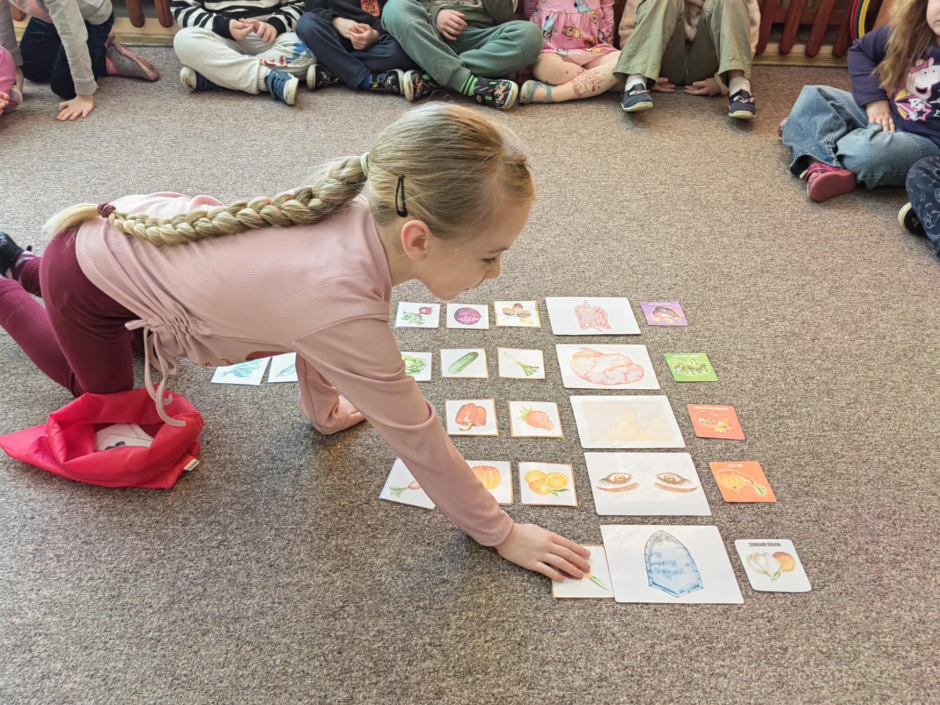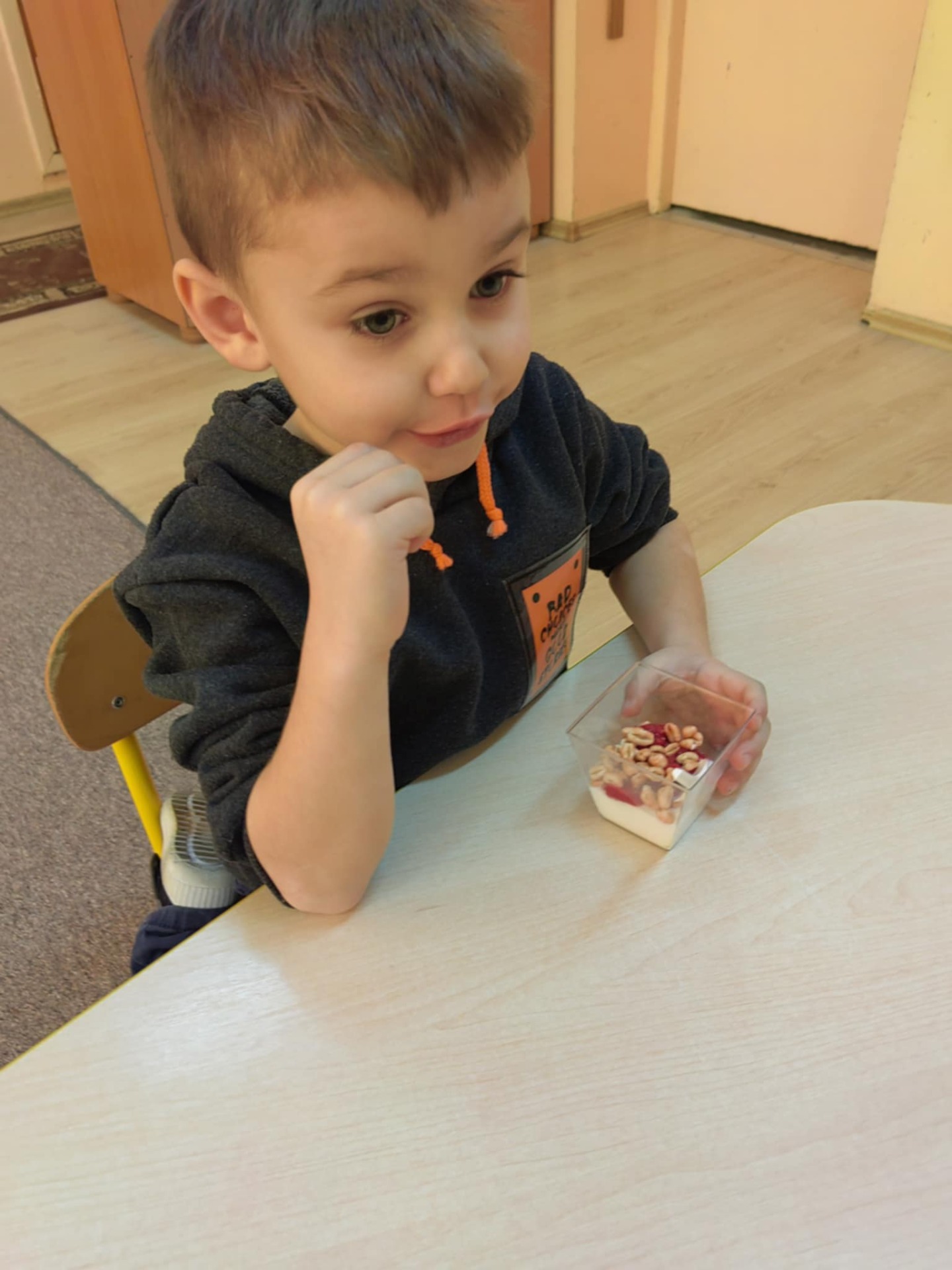 Grupa 4-5 latki zrealizowała kolejne zadanie tym razem „Wiemy po co jemy” w ramach programu edukacyjnego „Gotuj się na zmiany”. Celem zajęć było wprowadzenie dzieci w świat prawidłowych nawyków żywieniowych poprzez ciekawe i angażujące zabawy. Przedszkolaki poznały jakie warzywa i owoce wpływają na nasza odporność, wzrok, skórę, pracę mózgu oraz jelit. Zorganizowane zostały zabawy dla rozwoju grafomotoryki dużej oraz małej. Na zakończenie przygotowały zdrowy, owocowy deser.
