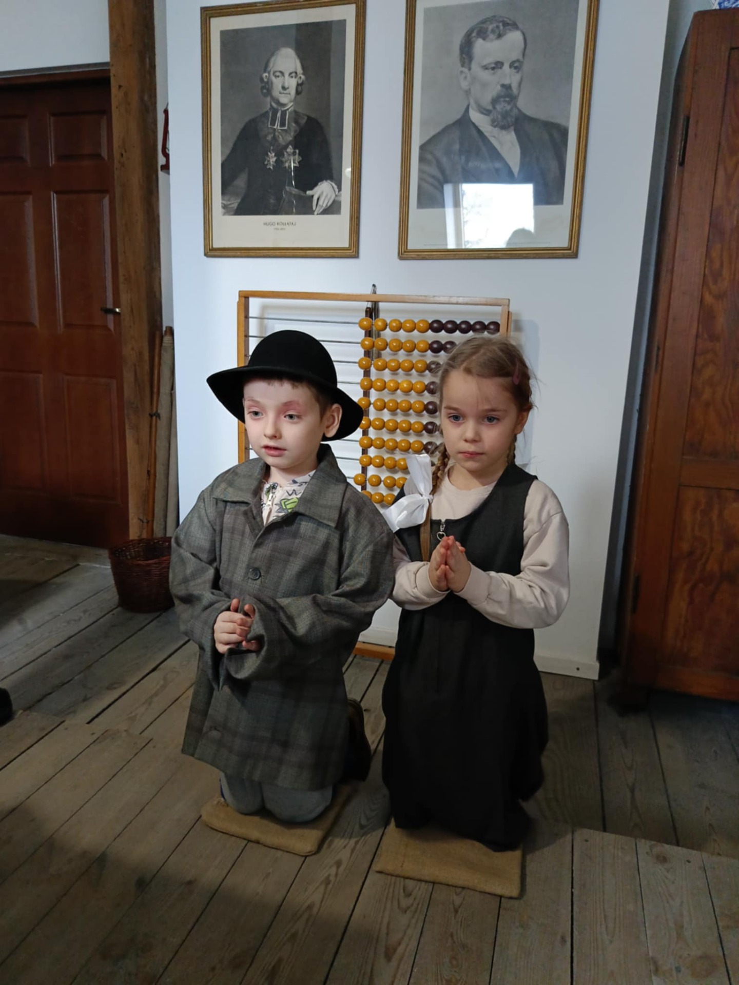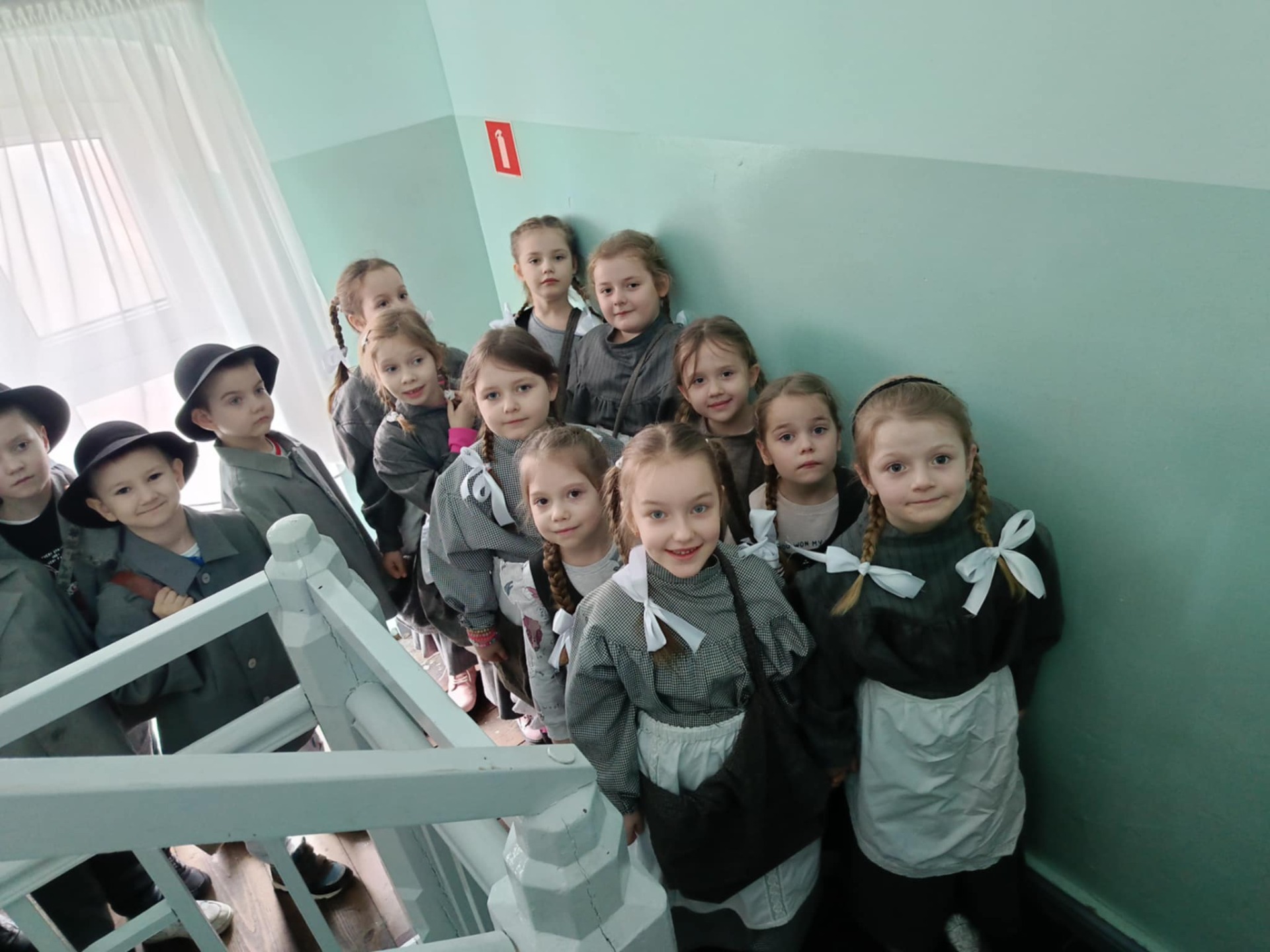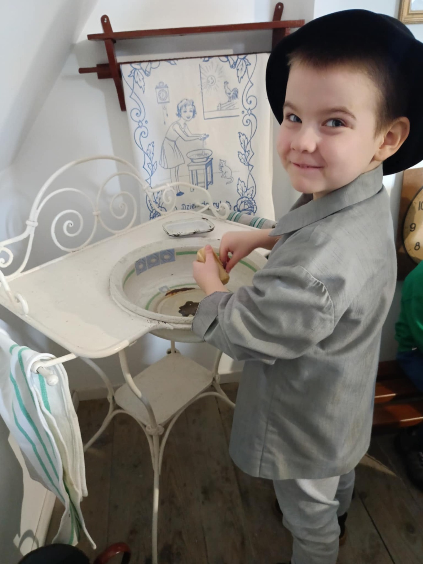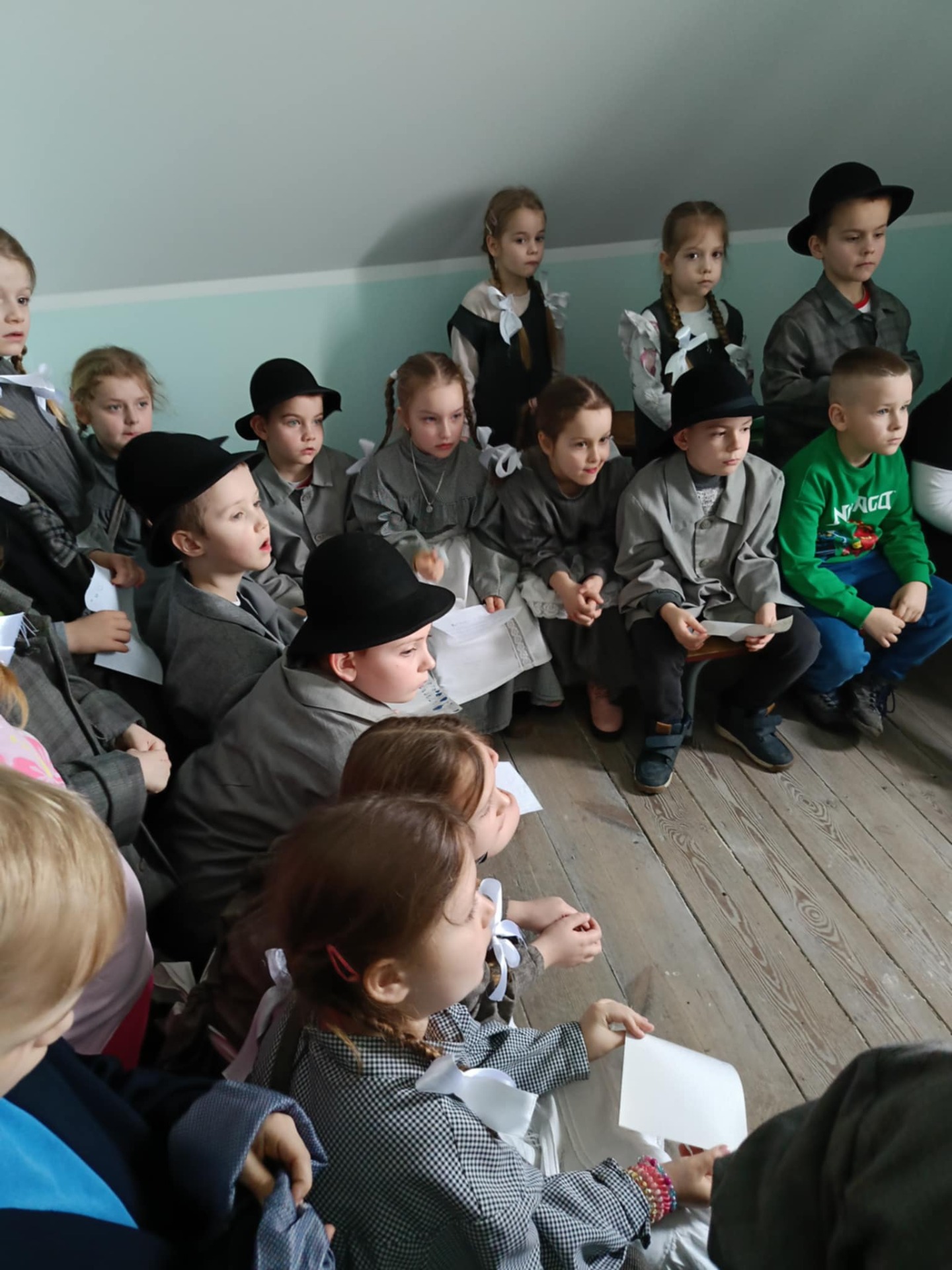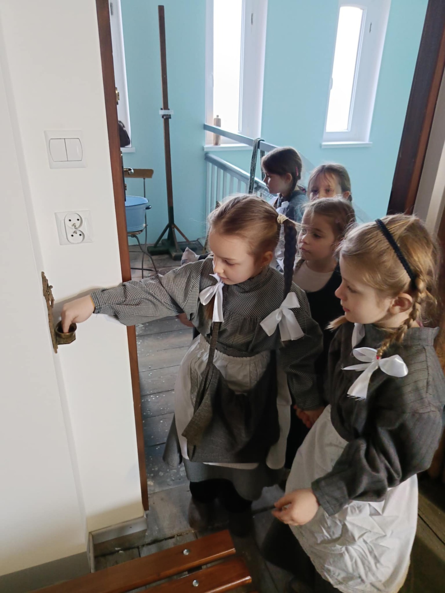 Oddział "0" w poniedziałkowy poranek odwiedził miejsce pamięci historycznej, które znajduje się w Dzielicach w gm. Rozdrażew. Podczas pobytu w sali lekcyjnej z dawnych lat dzieci przebrane w stroje, które noszono w odległych czasach wysłuchały ciekawych informacji z czasów wojennych związanych ze szkołą.