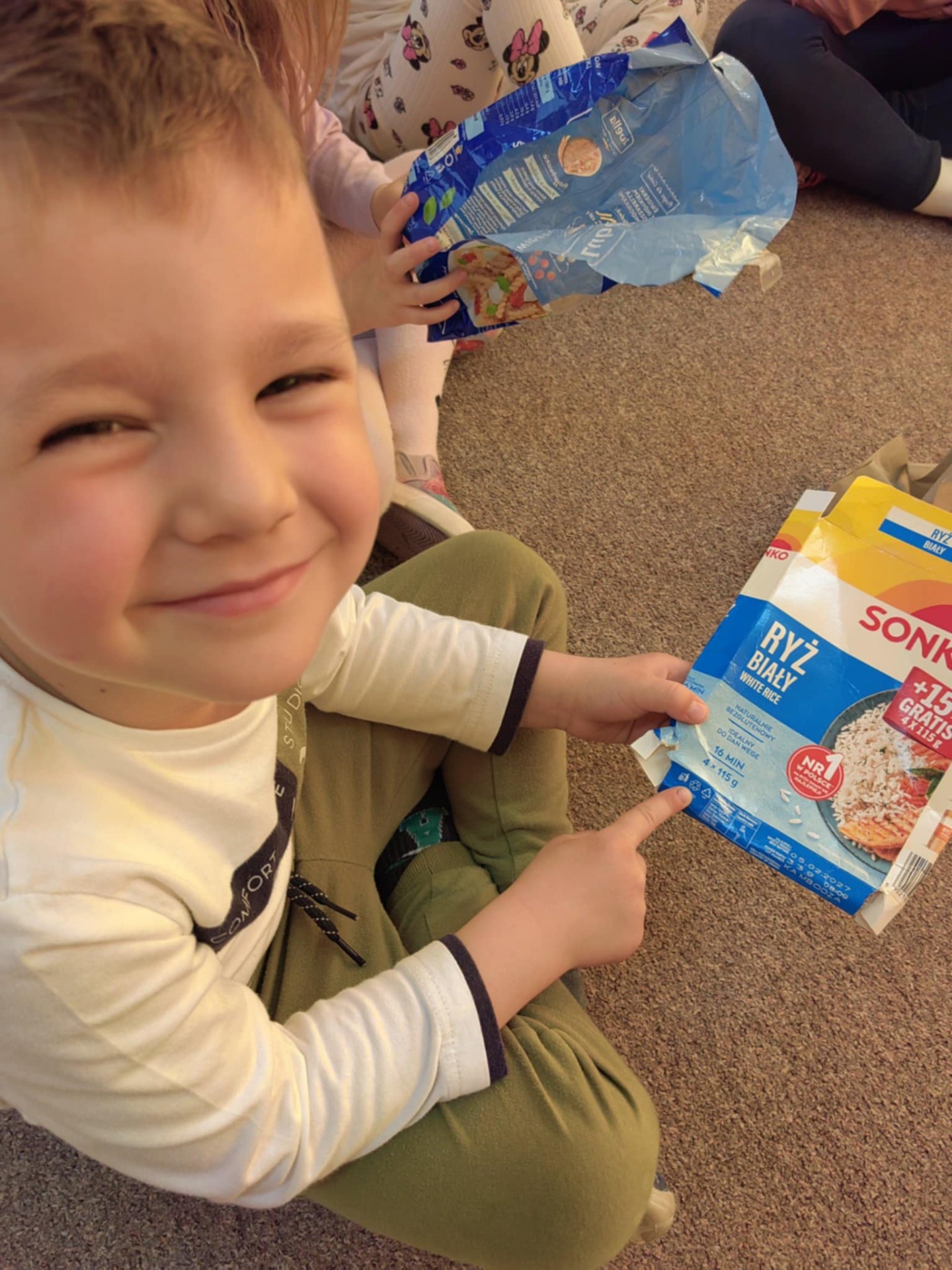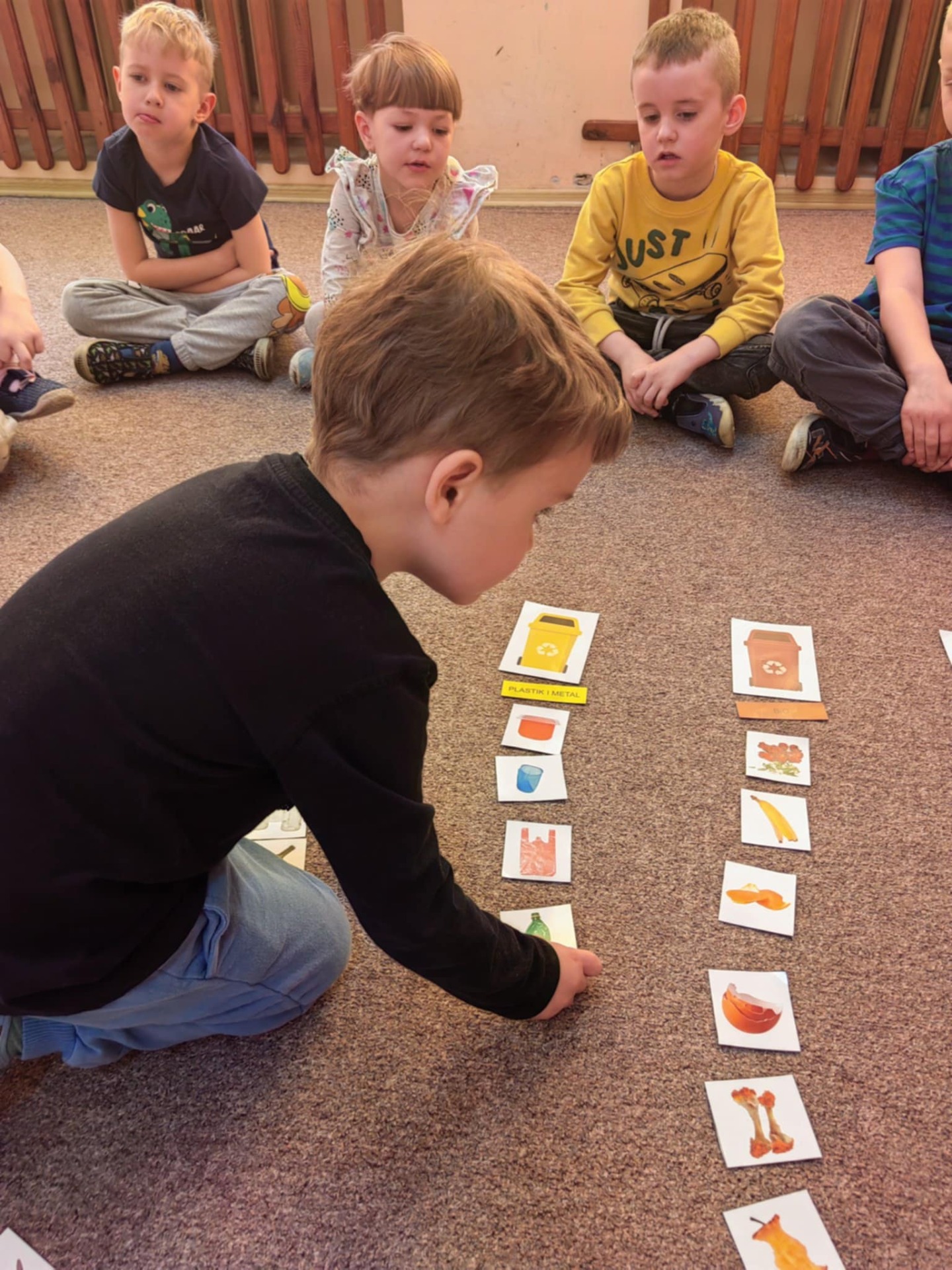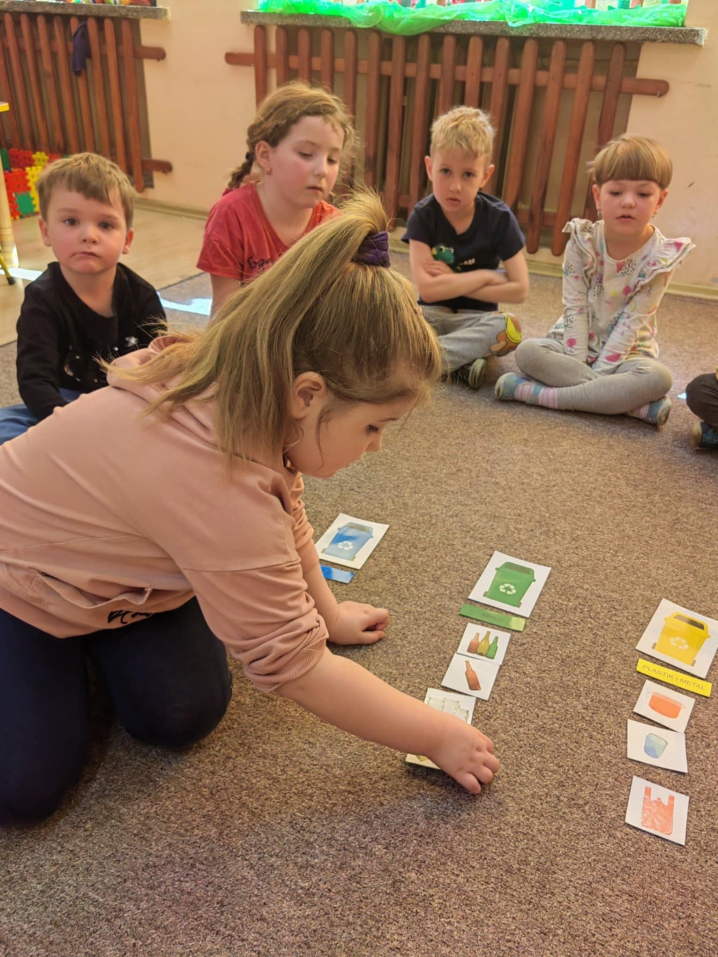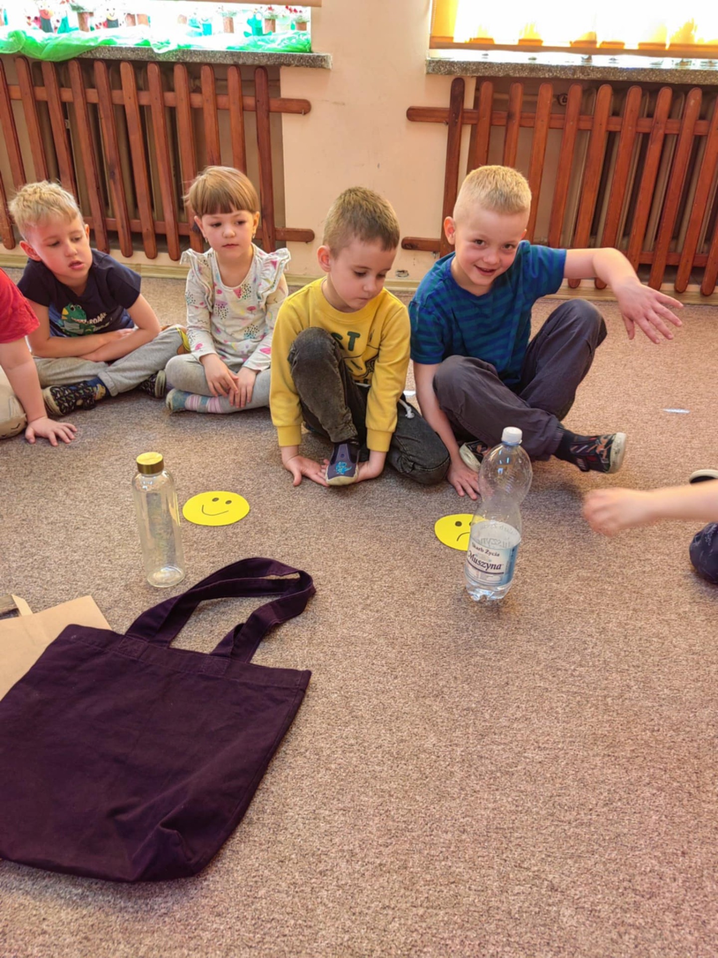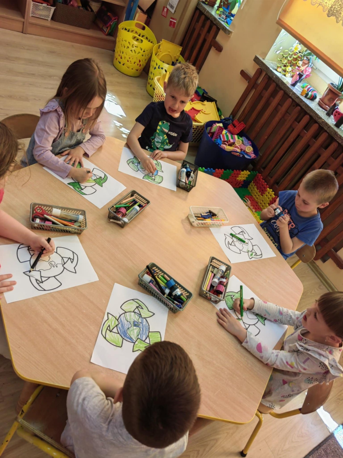 Dzieci z grupy 4-5 latki zrealizowały kolejne zadanie w ramach programu edukacyjnego „Gotuj się na zmiany”. Celem zajęć było zapoznanie dzieci z zasadami recyklingu i sortowania odpadów. Poznanie różnych rodzajów opakowań i surowców. Podczas realizacji wysłuchały ilustrowanej bajki „Paka z warzywniaka i tajemnica zaginionej listy zakupowej”, z której zapamiętały cenną radę- warto zrobić listę zakupów wybierając się do sklepu. Jednym z kluczowych punktów tego modułu było zadanie konkursowe- nasza grupa stworzyła bazar- ozdobę zero waste. Na zakończenie dzieci wykonały eko torby, z którymi wybiorą się na kolejne zakupy.