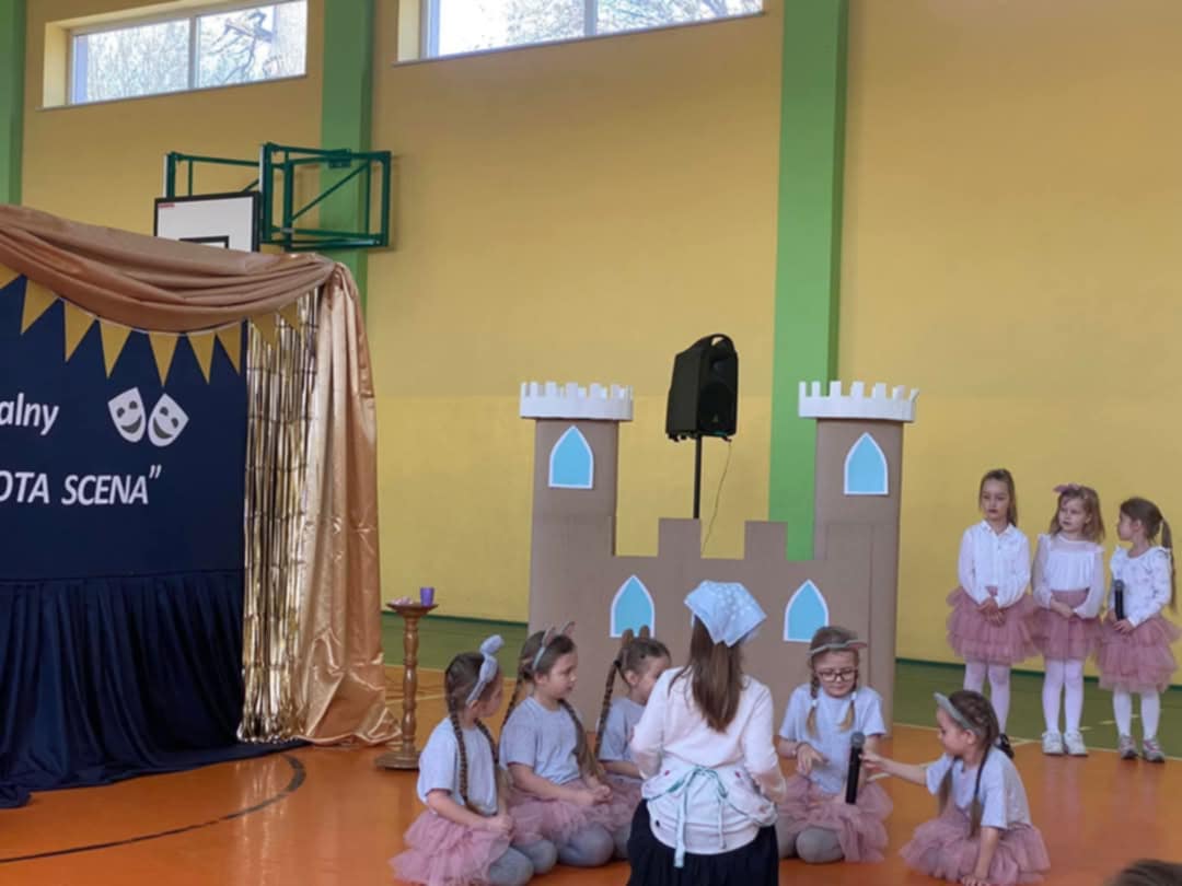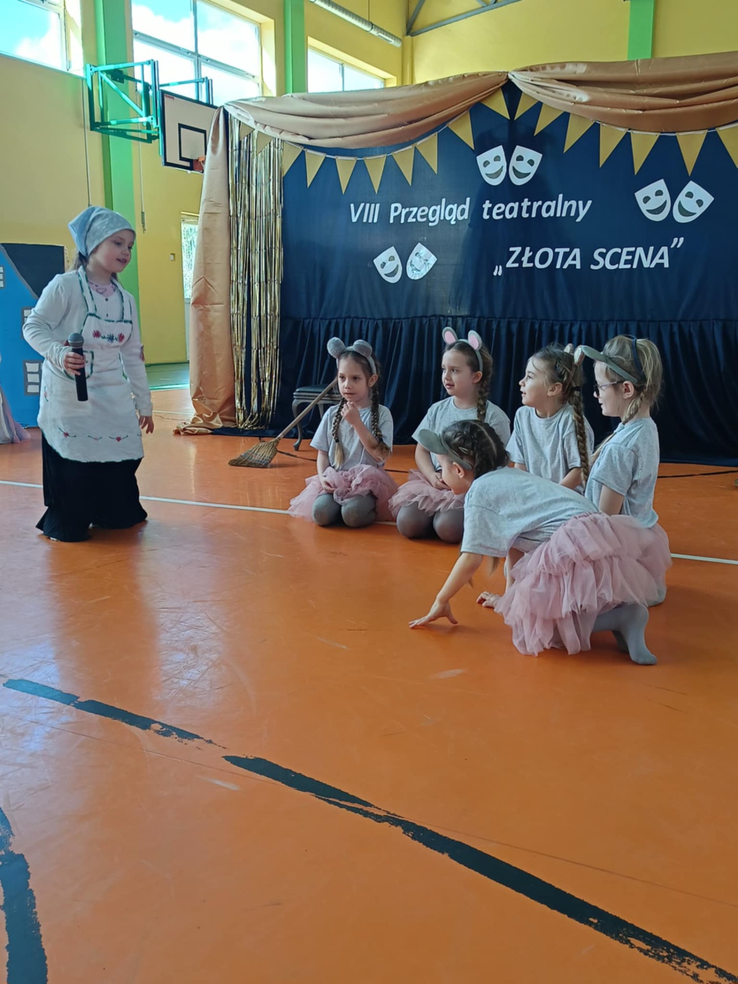 Grupa dzieci z oddziału przedszkolnego uczestniczyła dziś już VIII raz w przeglądzie teatralnym "Złota Scena" w Zespół Szkolno - Przedszkolny im. Marii Konopnickiej w Borzęciczkach .