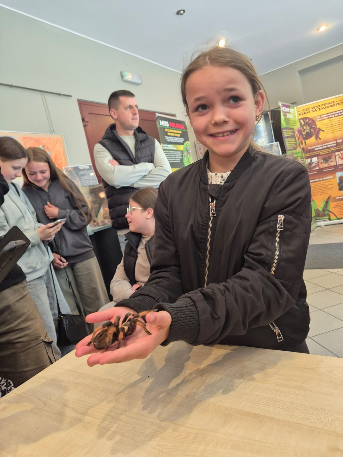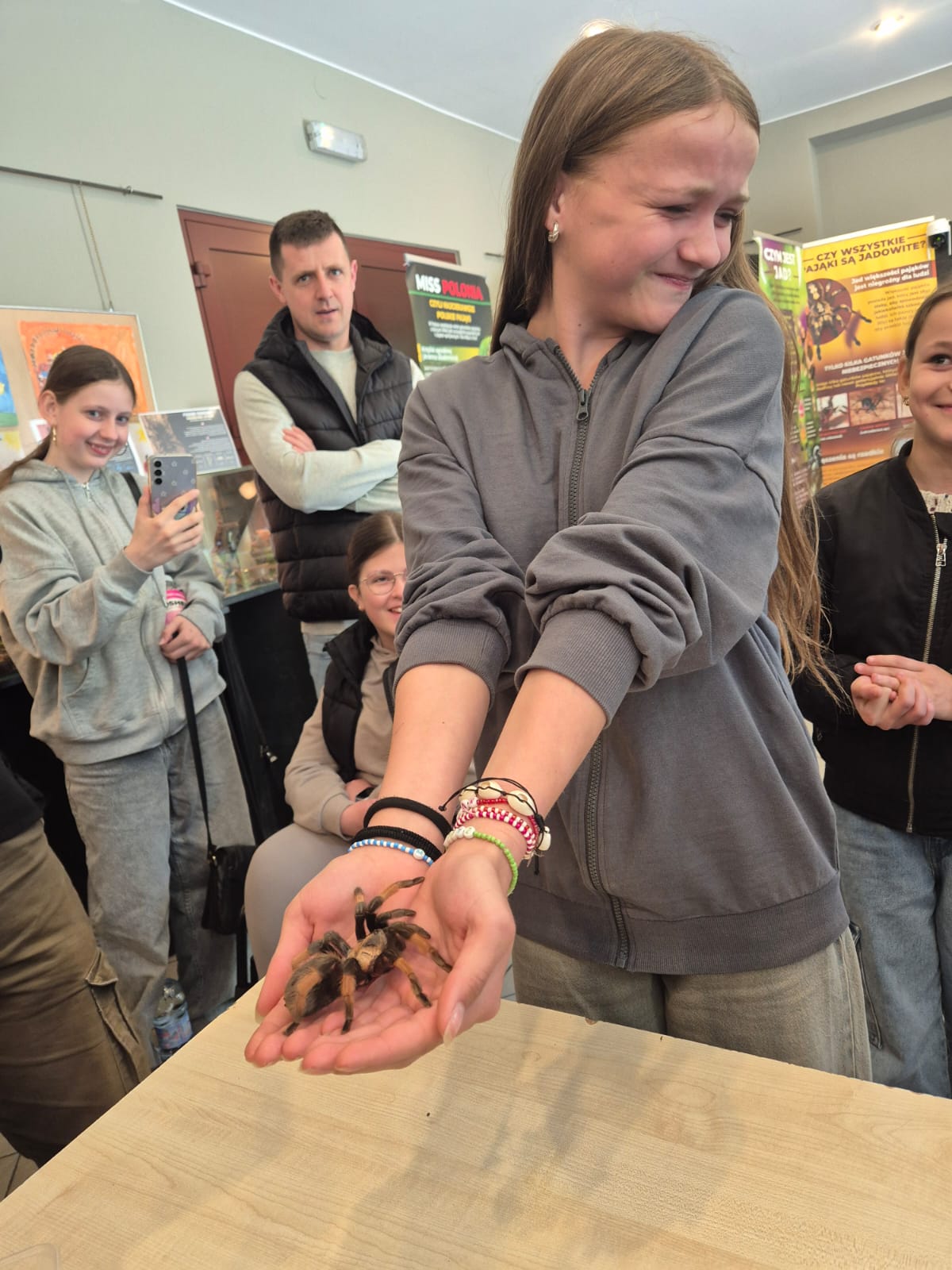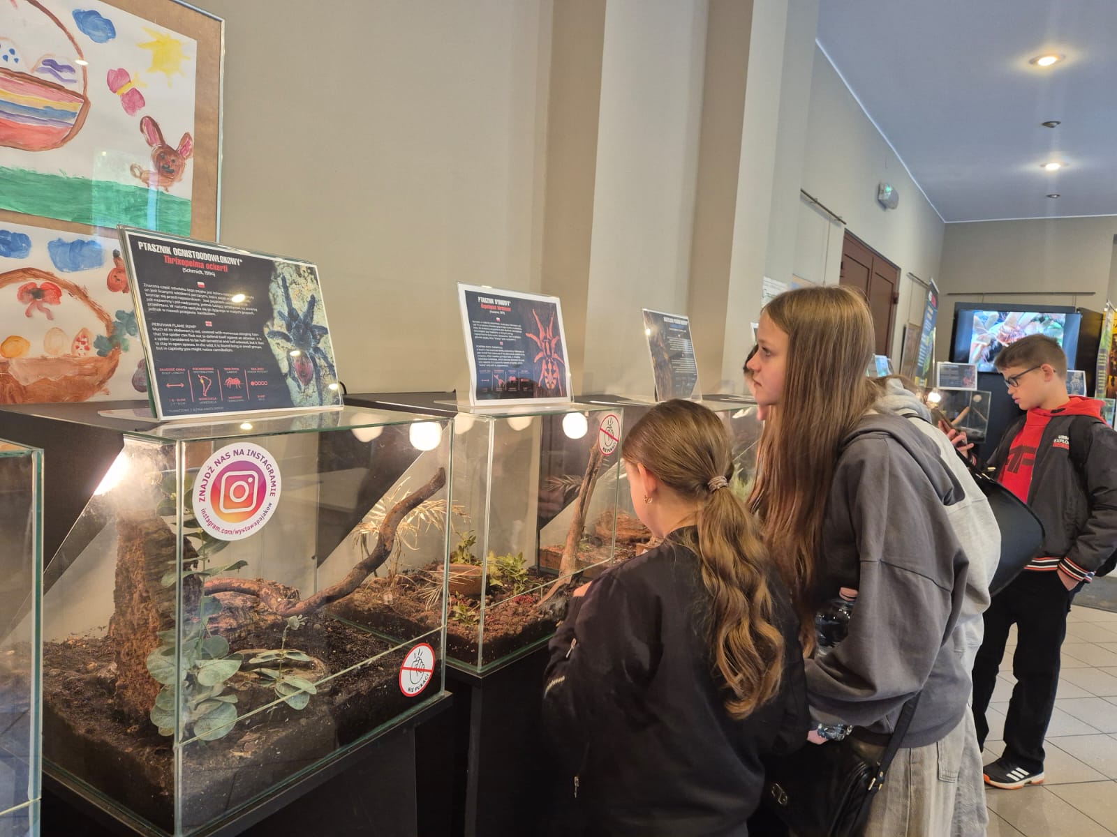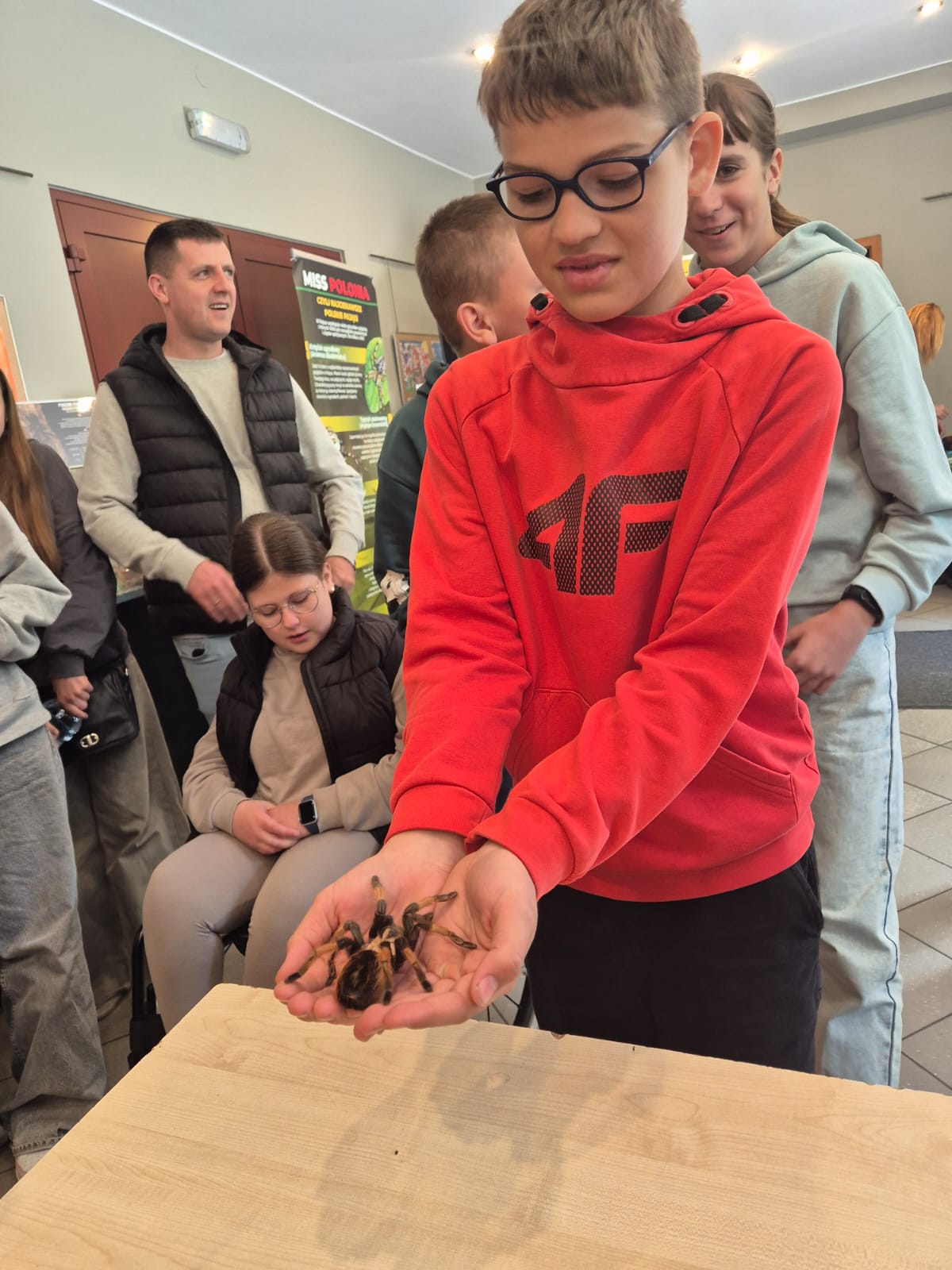 Kolejnym punktem naszej wycieczki była wystawa pająków. Wielu z nas pierwszy raz w życiu miało okazję z bliska zobaczyć takie okazy ptaszników, skorpionów i innych pająków.