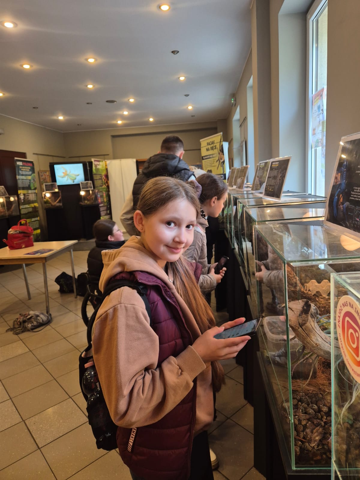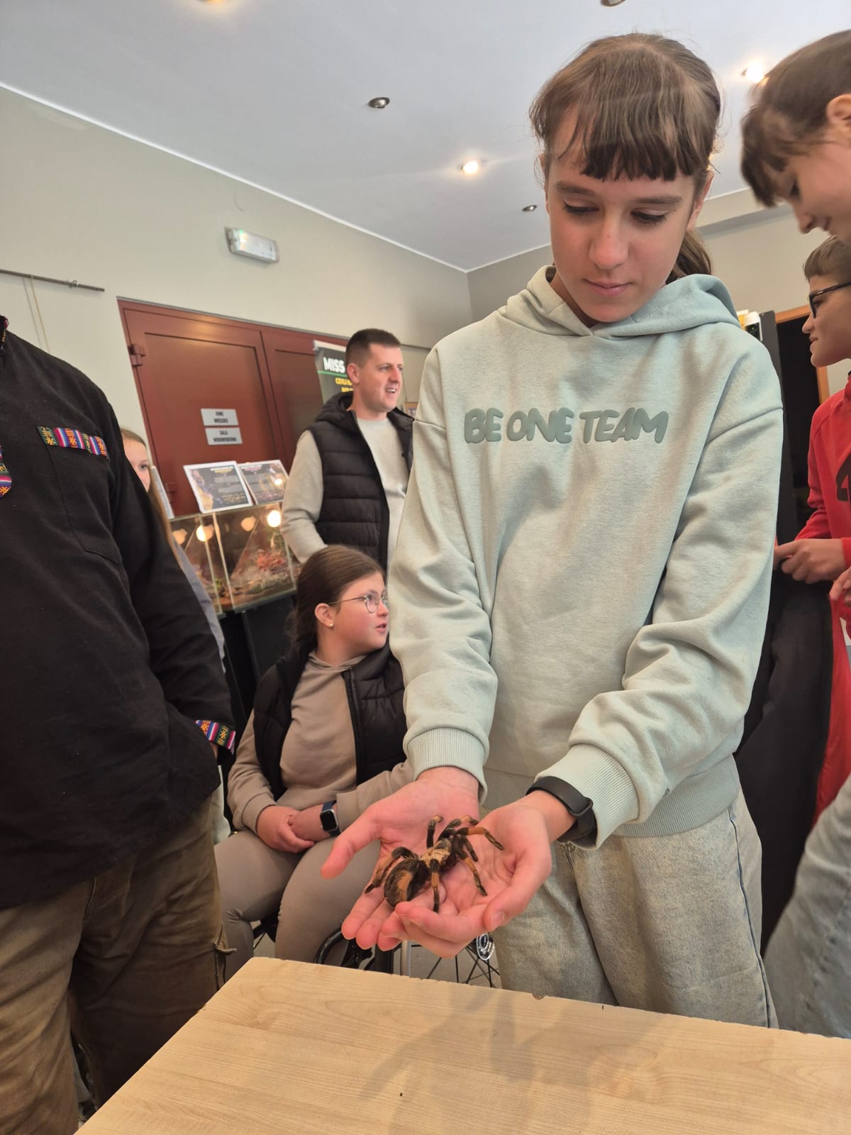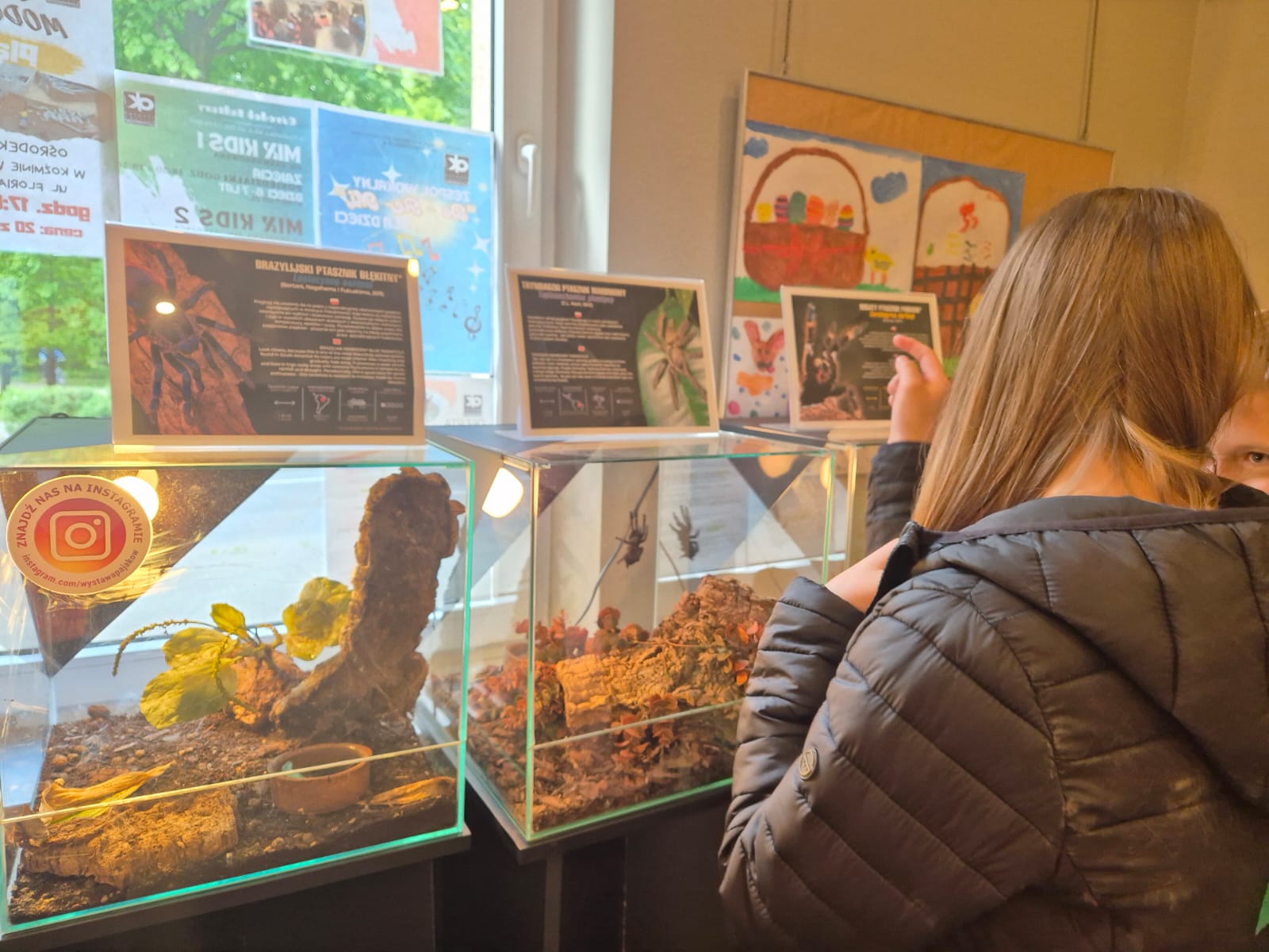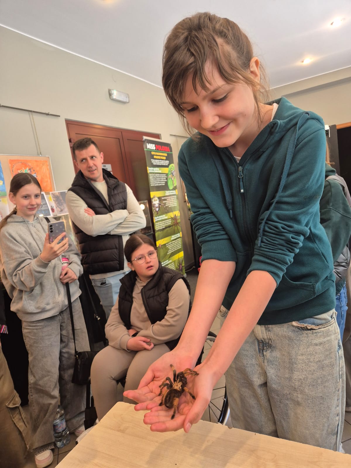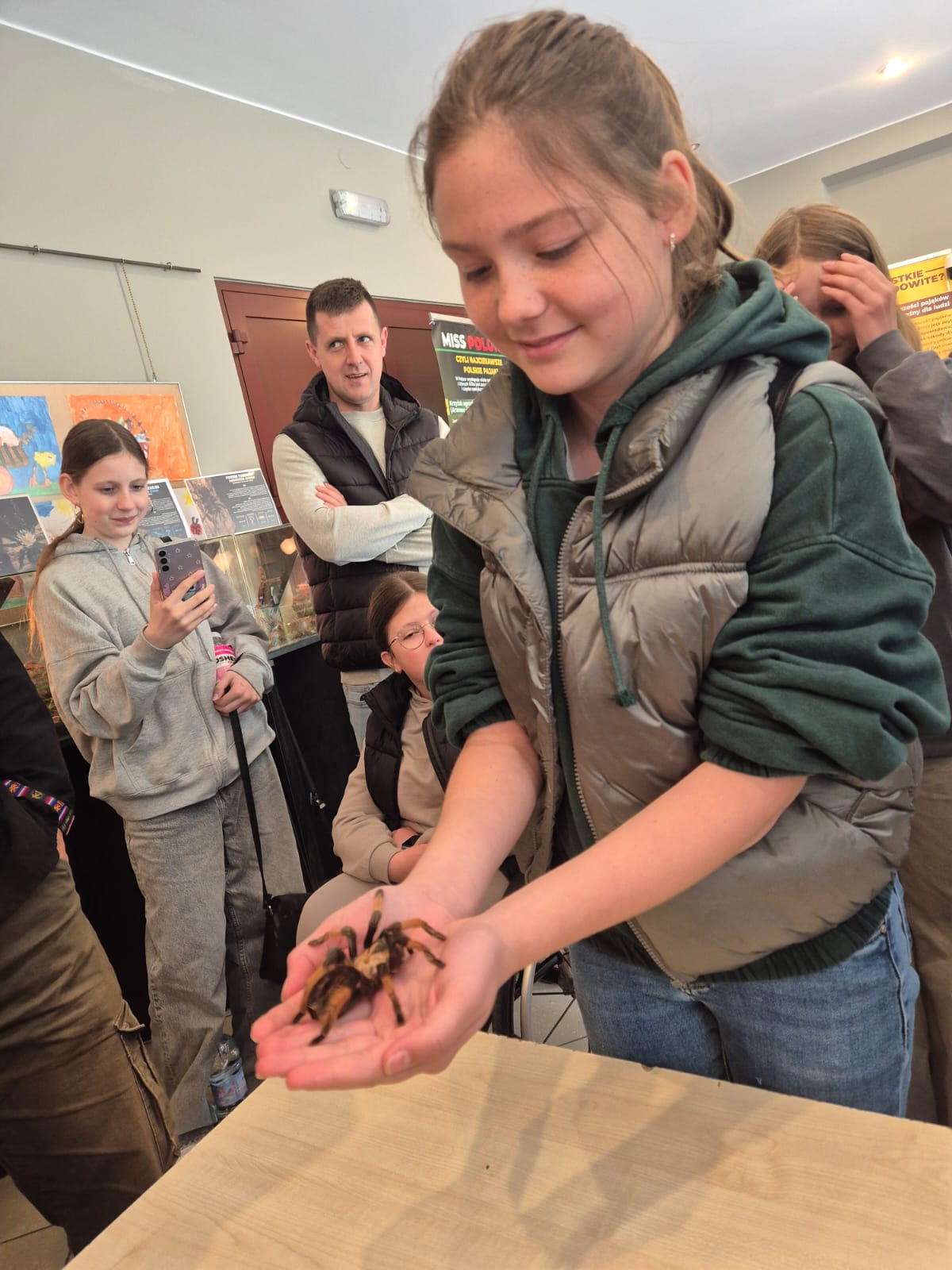 Kolejnym punktem naszej wycieczki była wystawa pająków. Wielu z nas pierwszy raz w życiu miało okazję z bliska zobaczyć takie okazy ptaszników, skorpionów i innych pająków.