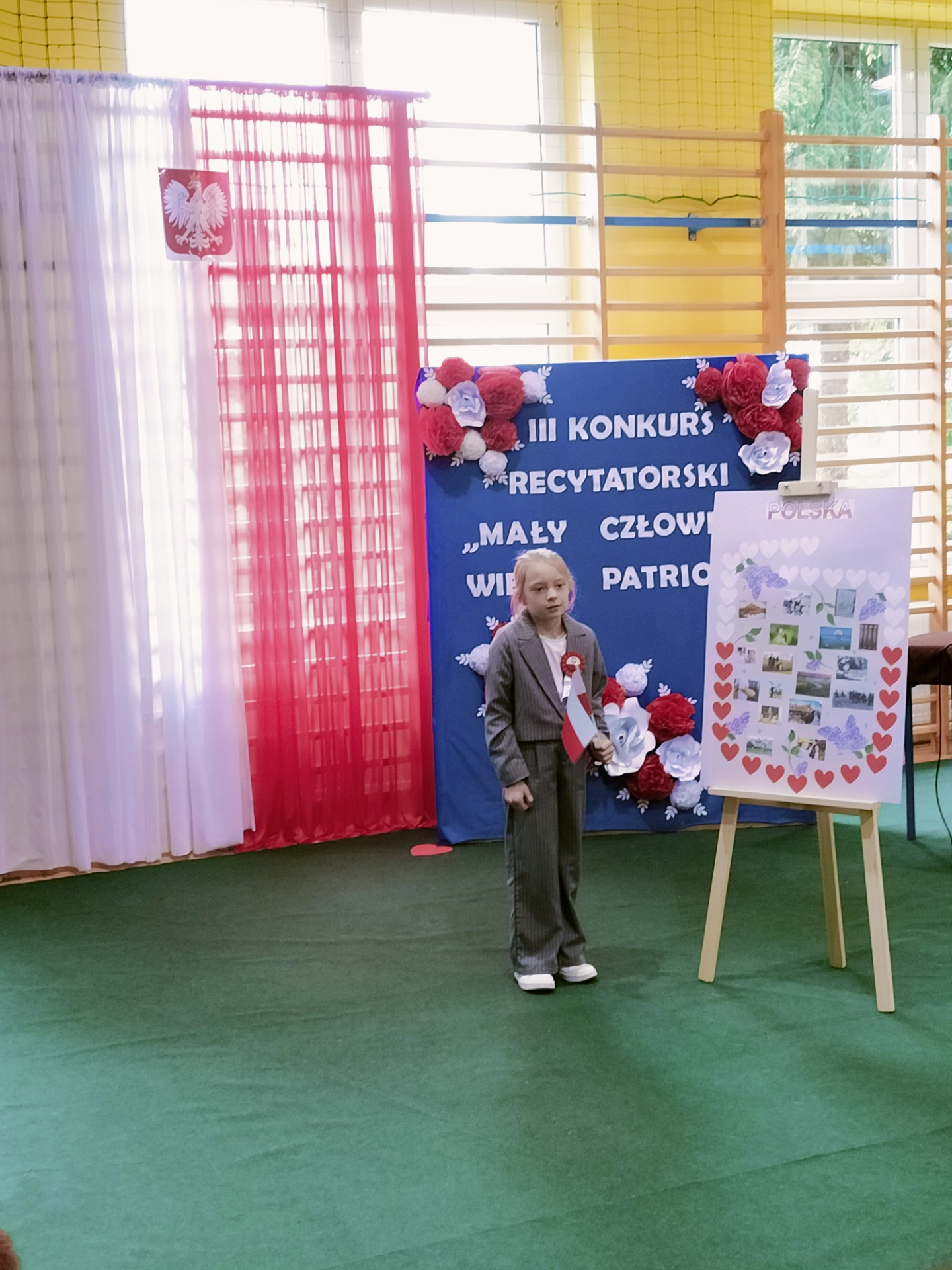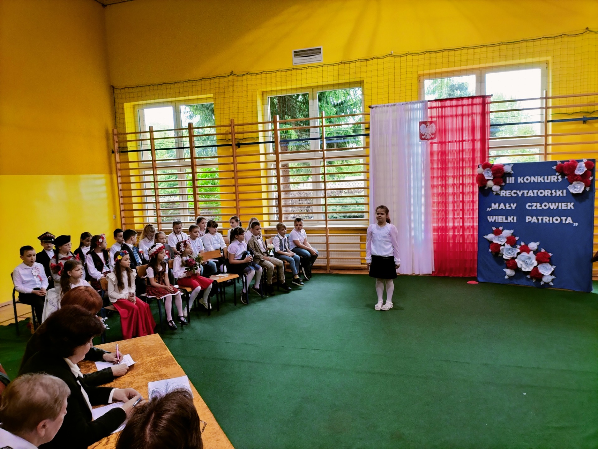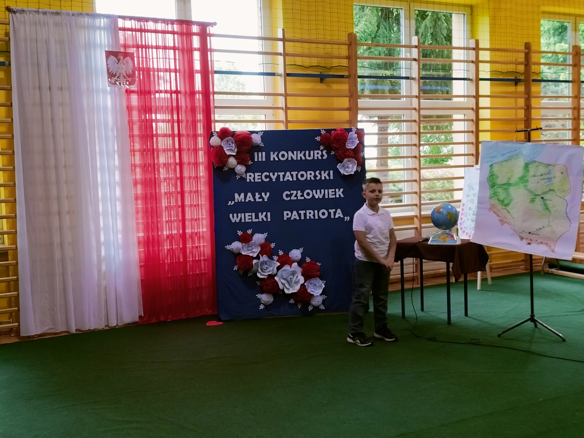 22 maja 2025 r. w Szkole Podstawowej w Mokronosie już po raz trzeci odbył się gminny konkurs recytatorski „Mały człowiek – wielki patriota”. Wydarzenie skierowane było do uczniów klas I–III szkół podstawowych z terenu Gminy Koźmin Wielkopolski.