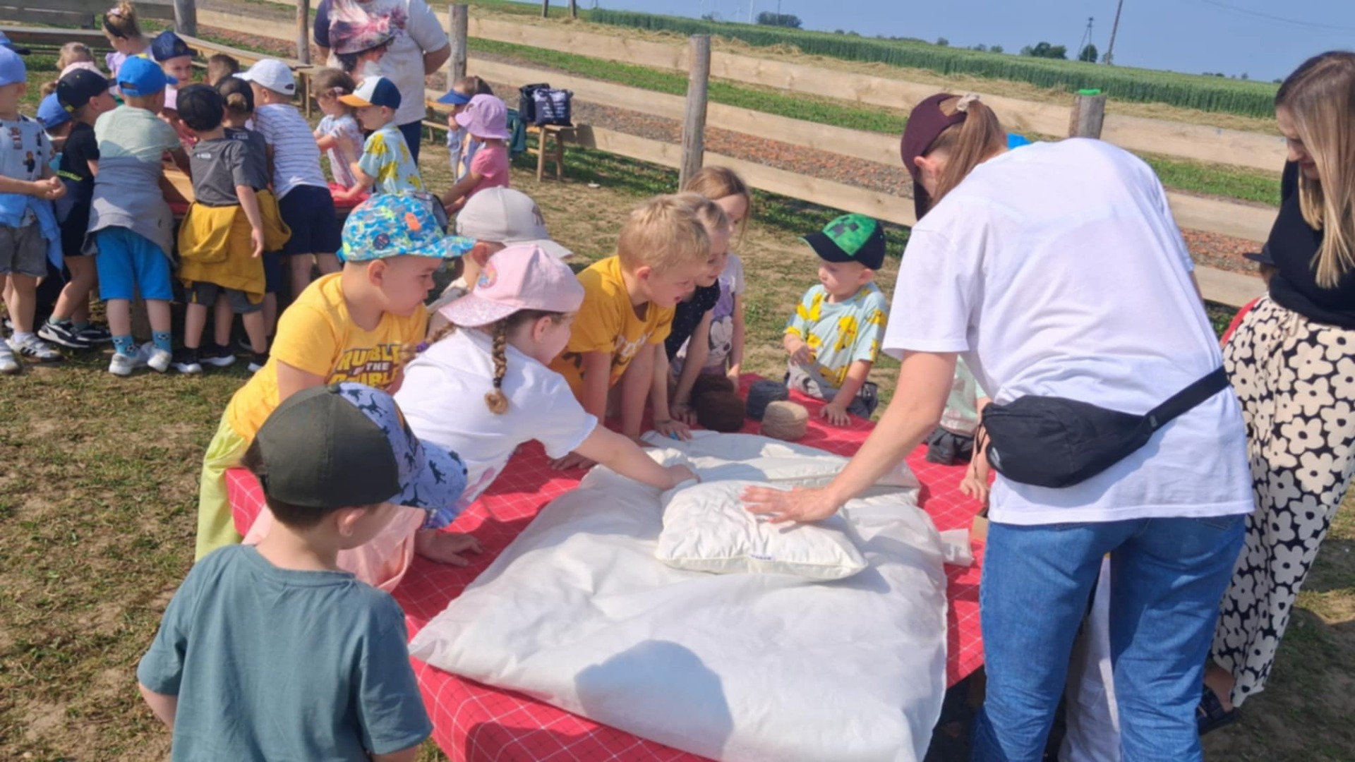 W piękny, słoneczny poranek dzieci z oddziału z Wrotkowa oraz gr. 4-5 latki wybrały się na wycieczkę do przepięknego miejsca w Raciborowie. Czekało na nich mnóstwo atrakcji: