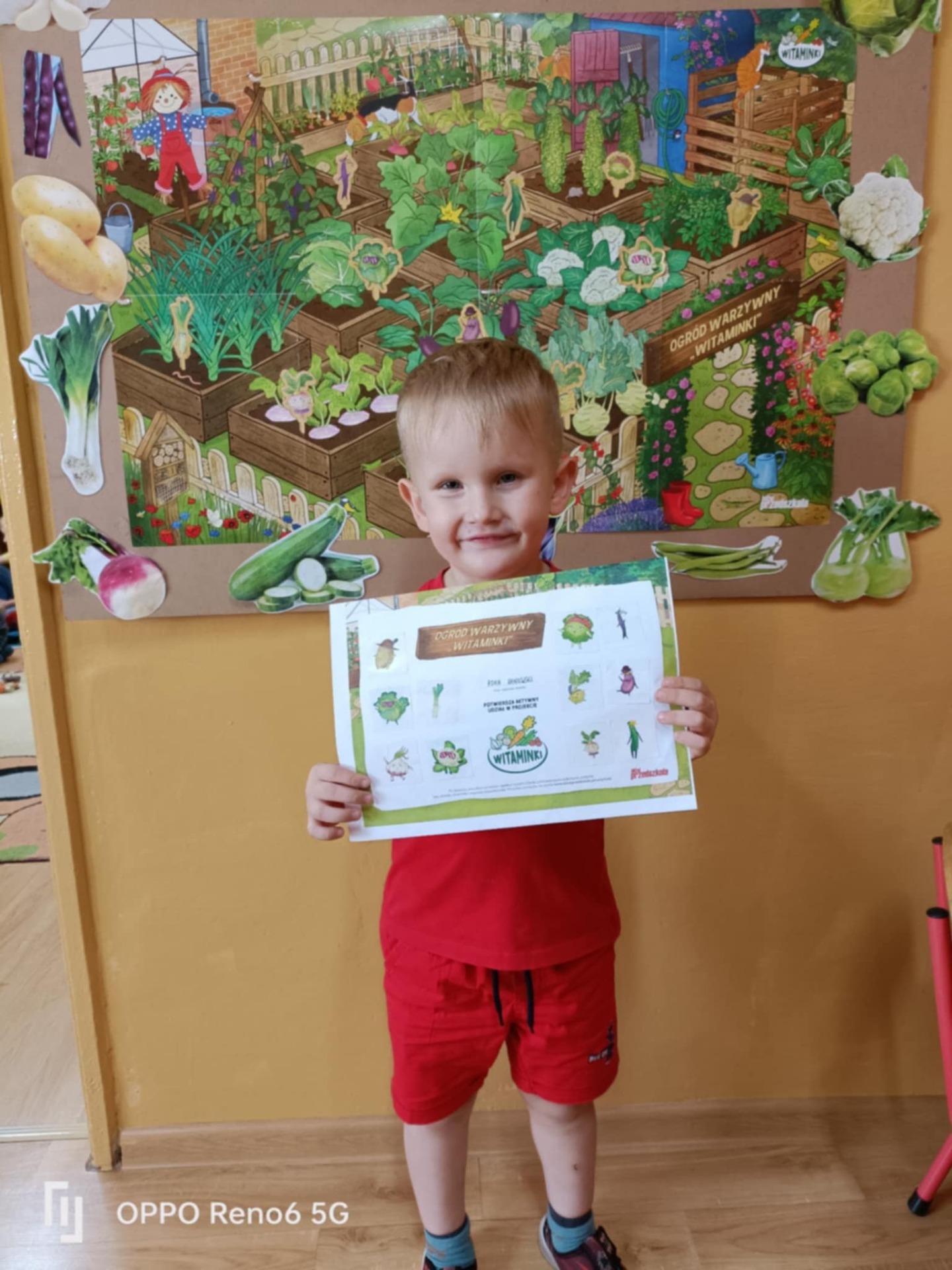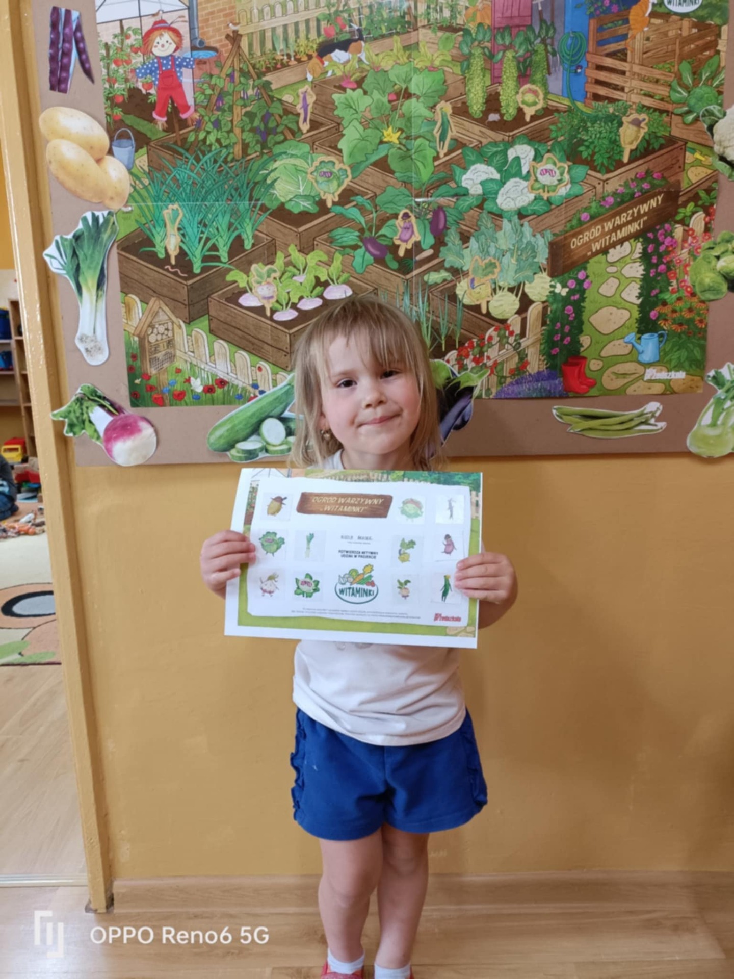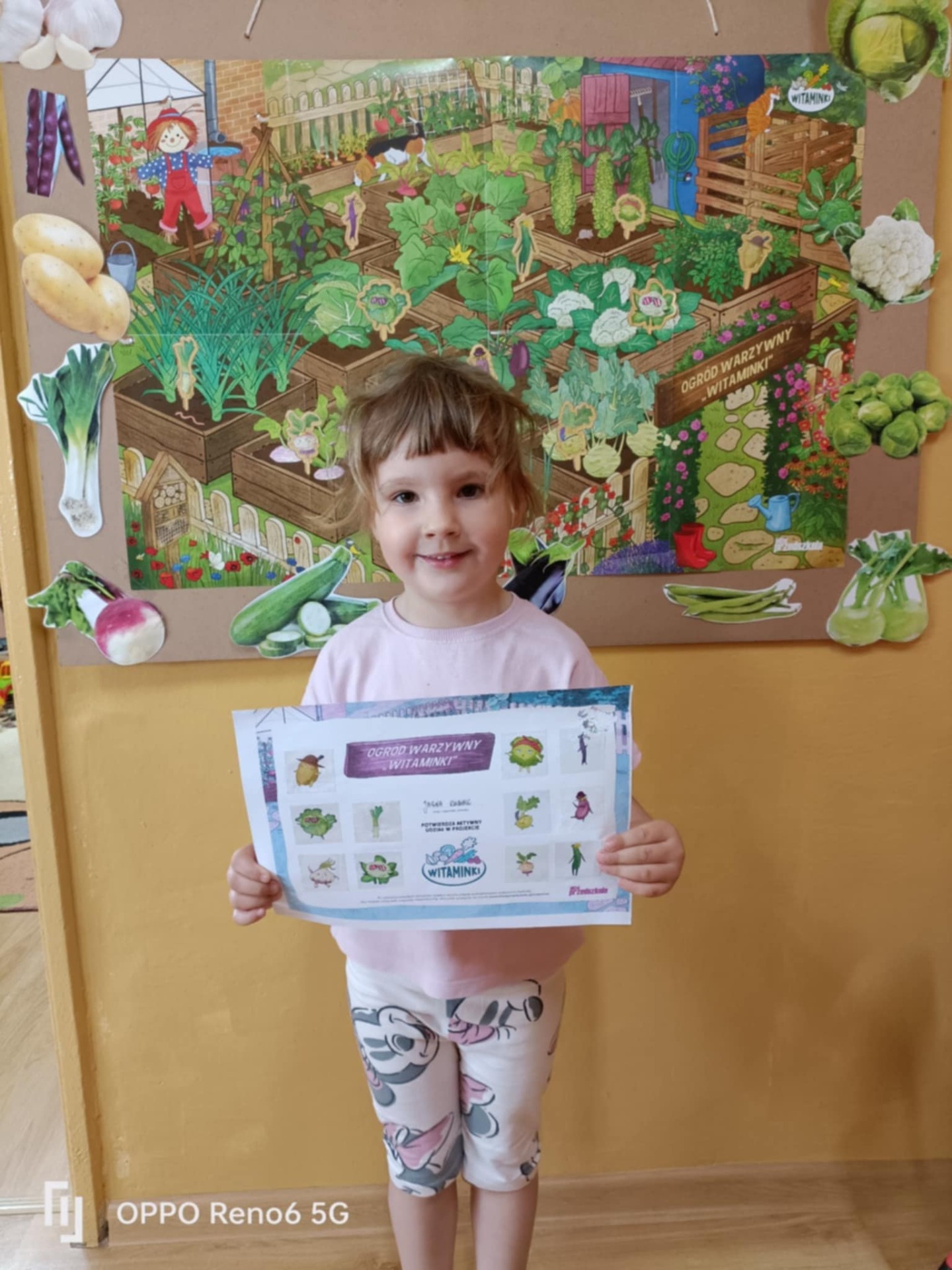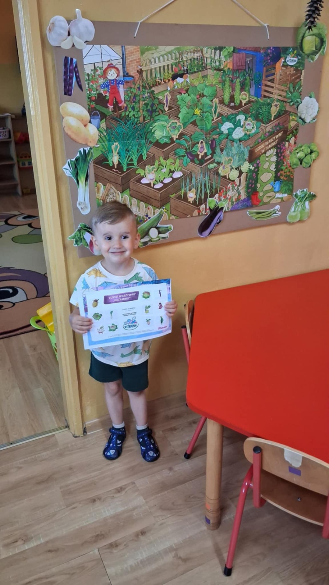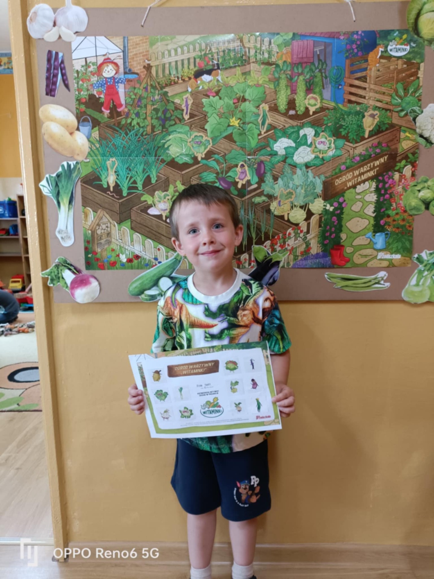 - wdrażanie do samodzielnego komponowania posiłków i robienia prostych potraw według przepisów kulinarnych. Dzieci zebrały wszystkich warzywnych bohaterów na swoich kartach, zadowoleni i bogatsi o "witaminową" wiedzę mogą rozpoczynać wakacje. 😊