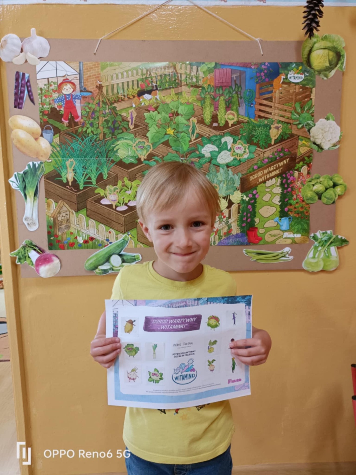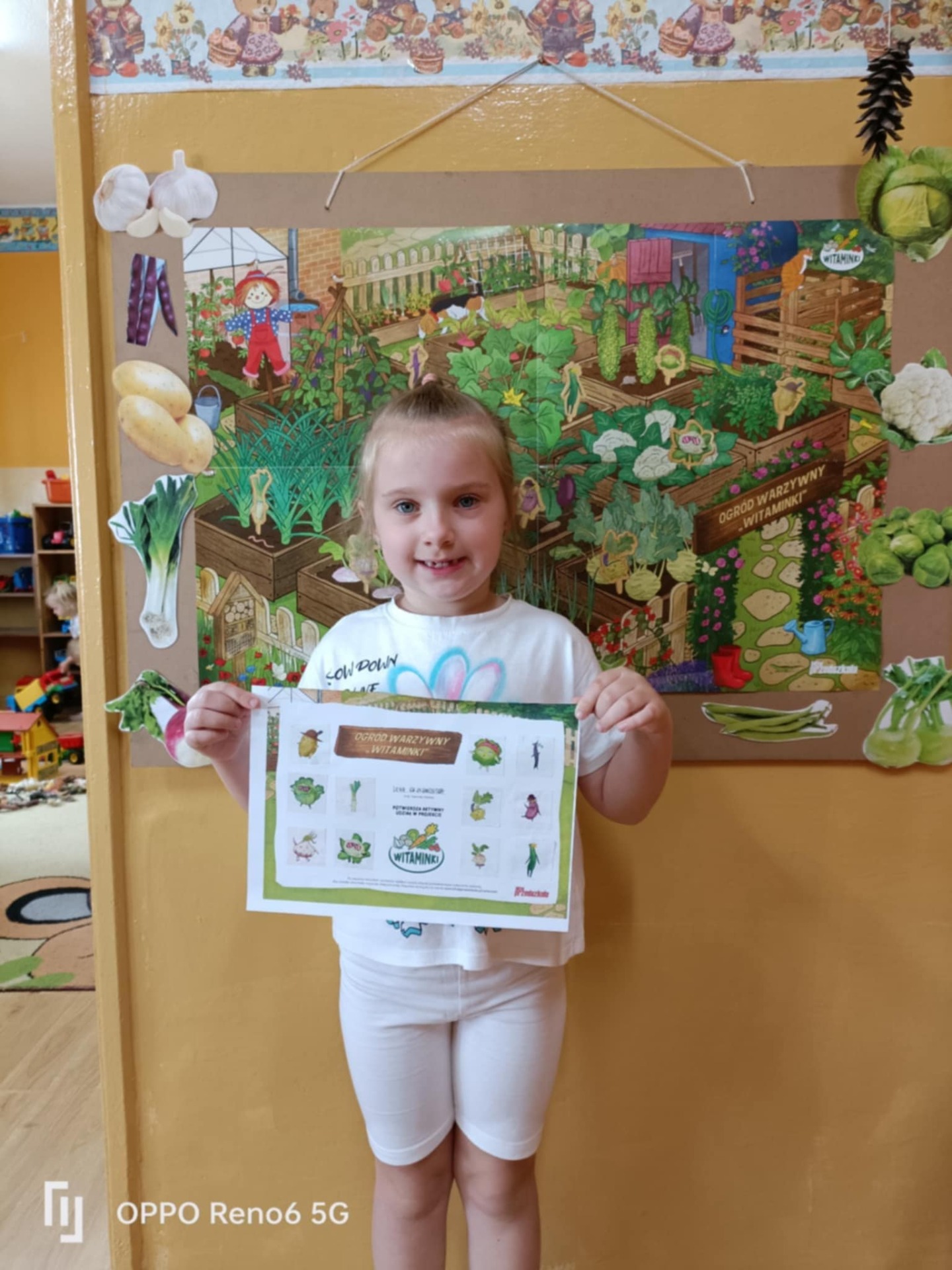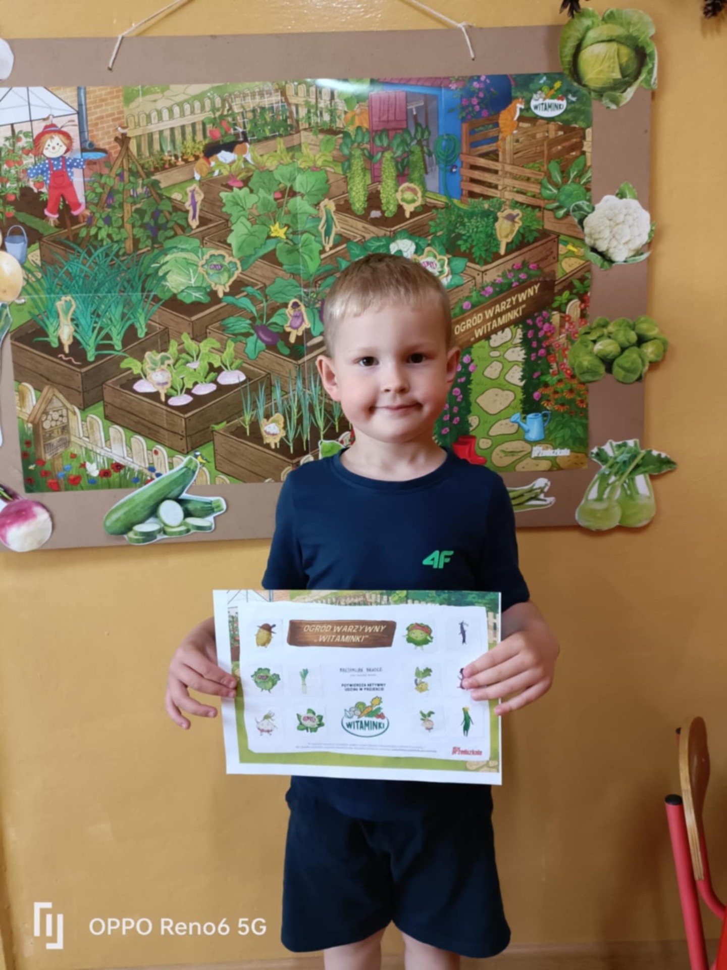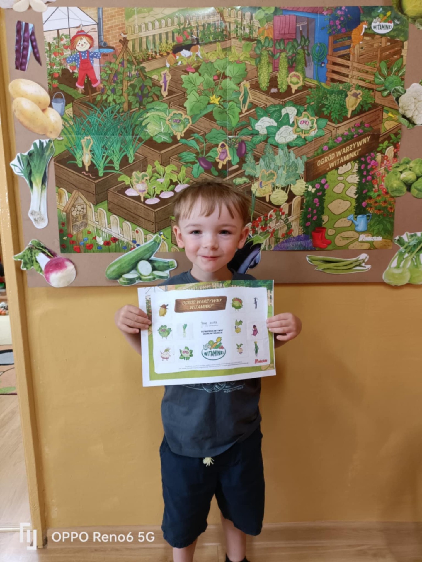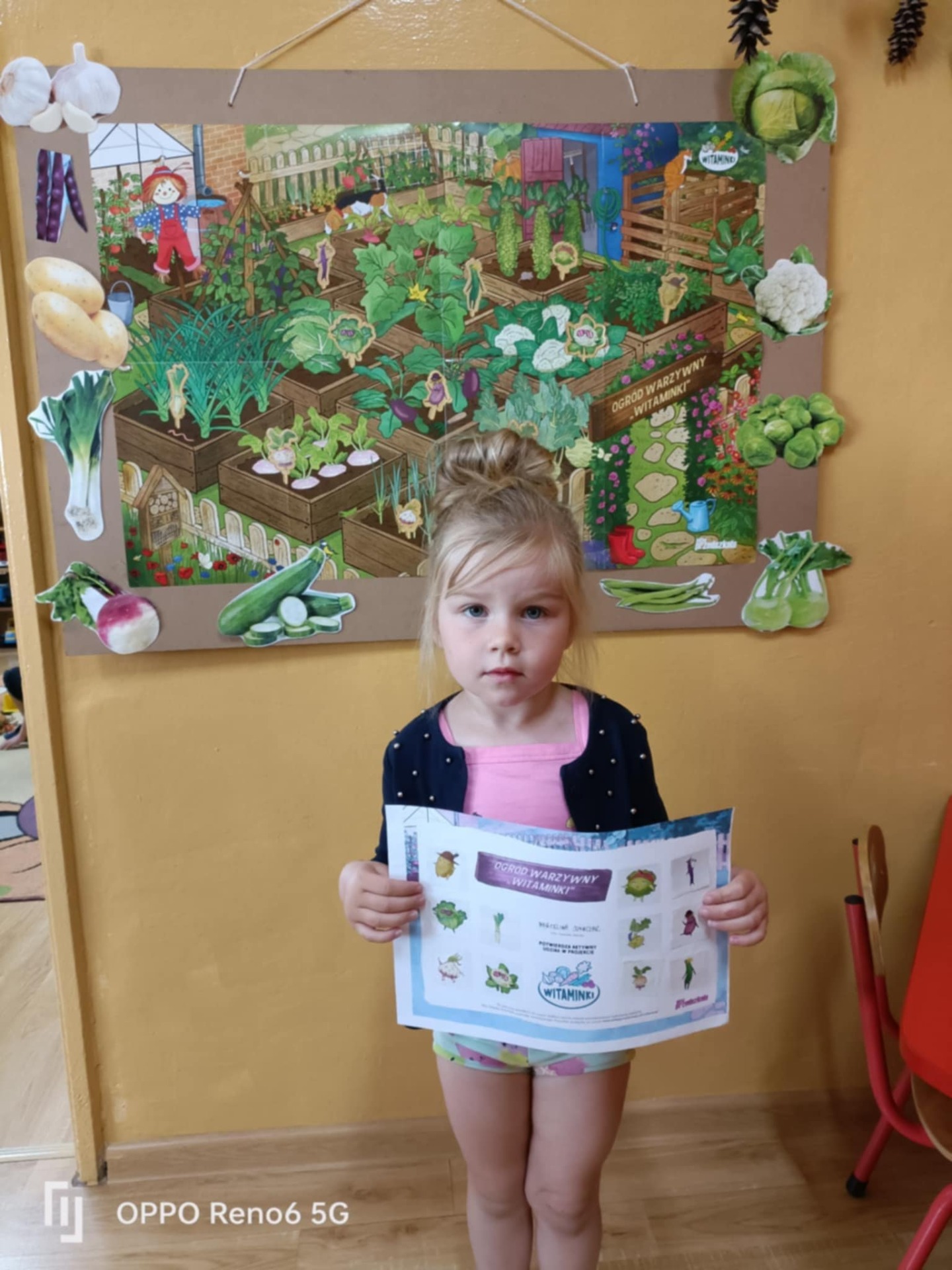 - wdrażanie do samodzielnego komponowania posiłków i robienia prostych potraw według przepisów kulinarnych. Dzieci zebrały wszystkich warzywnych bohaterów na swoich kartach, zadowoleni i bogatsi o "witaminową" wiedzę mogą rozpoczynać wakacje. 😊