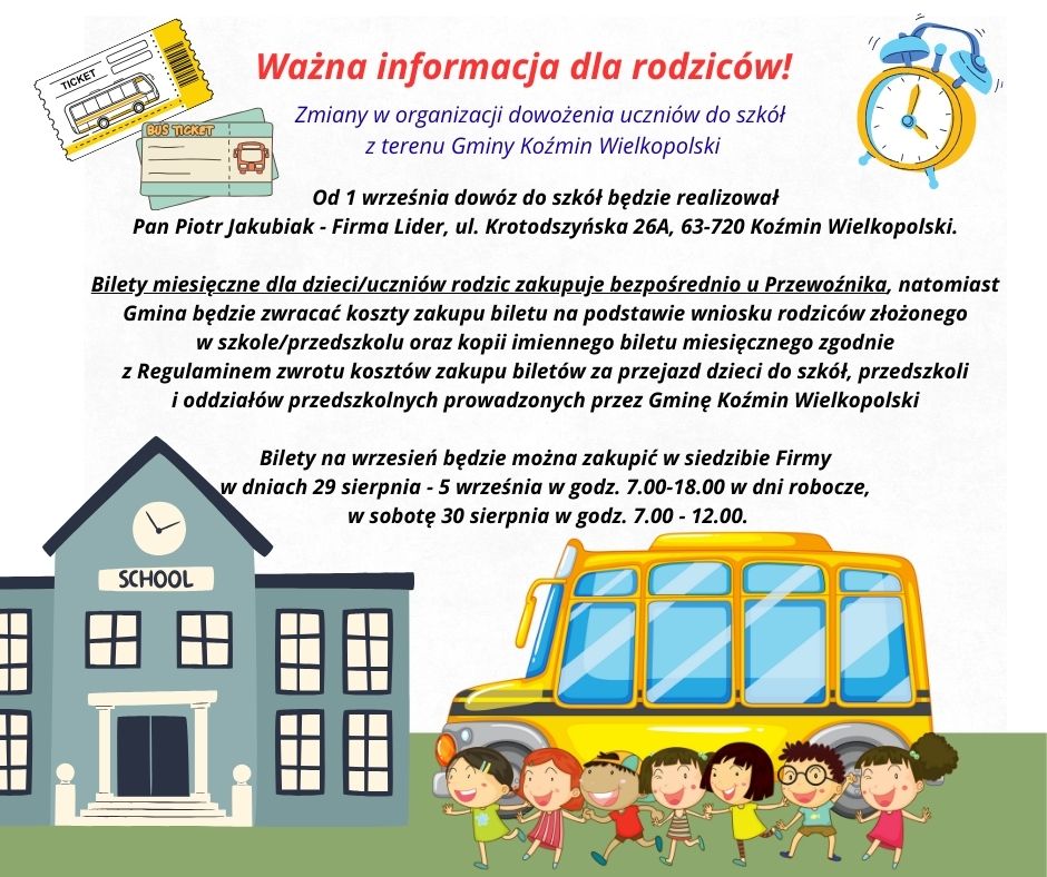 Ważna informacja !! Zmiany w organizacji dowożenia od 01.09.2025 r.