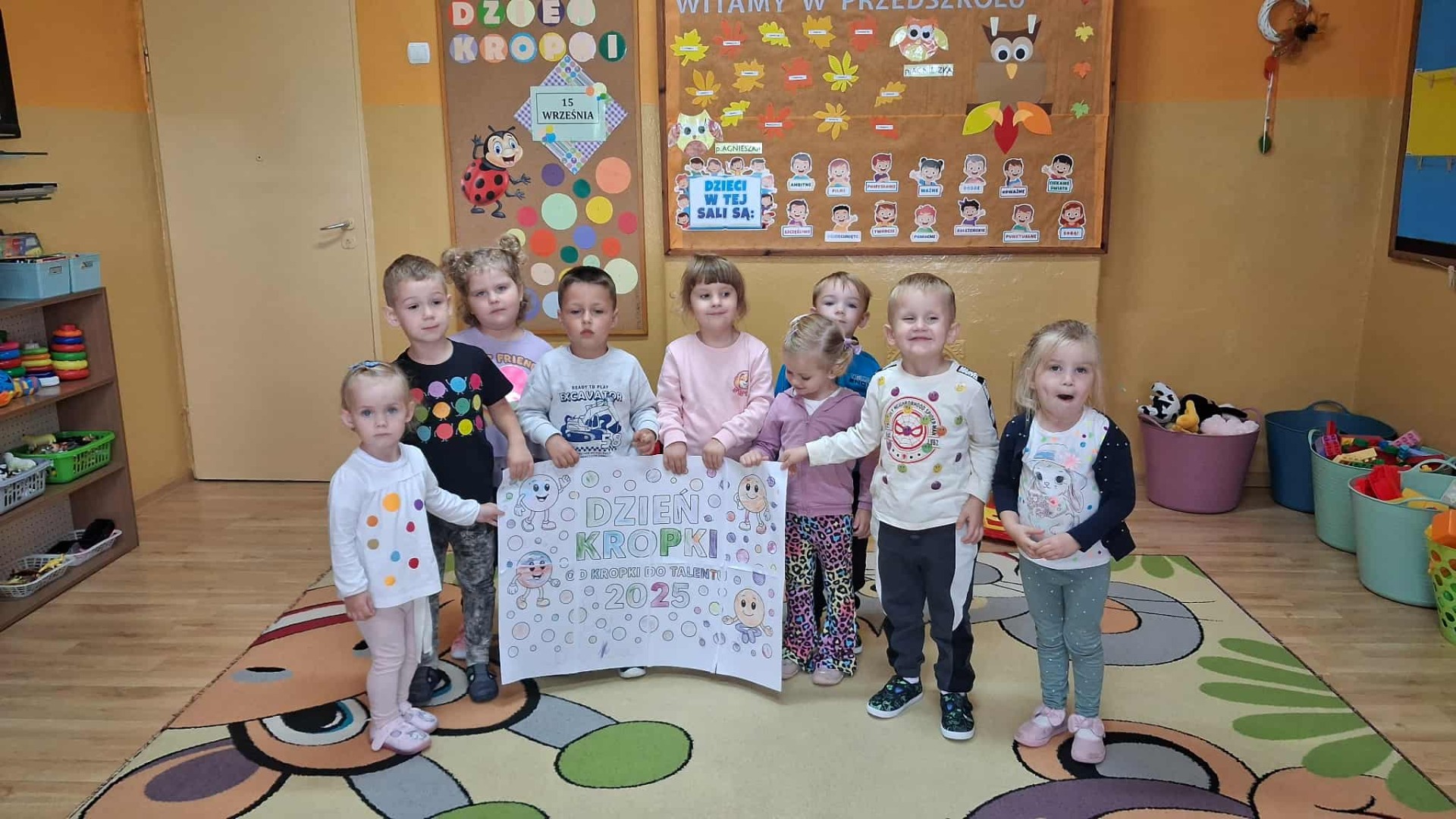 Dziś w naszym przedszkolu obchodziliśmy Międzynarodowy Dzień Kropki – święto pomysłowości i wiary w siebie. Dzieci tworzyły wyjątkowe prace plastyczne, bawiły się w „kropkowe” zabawy i odkrywały, że każdy ma w sobie talent.