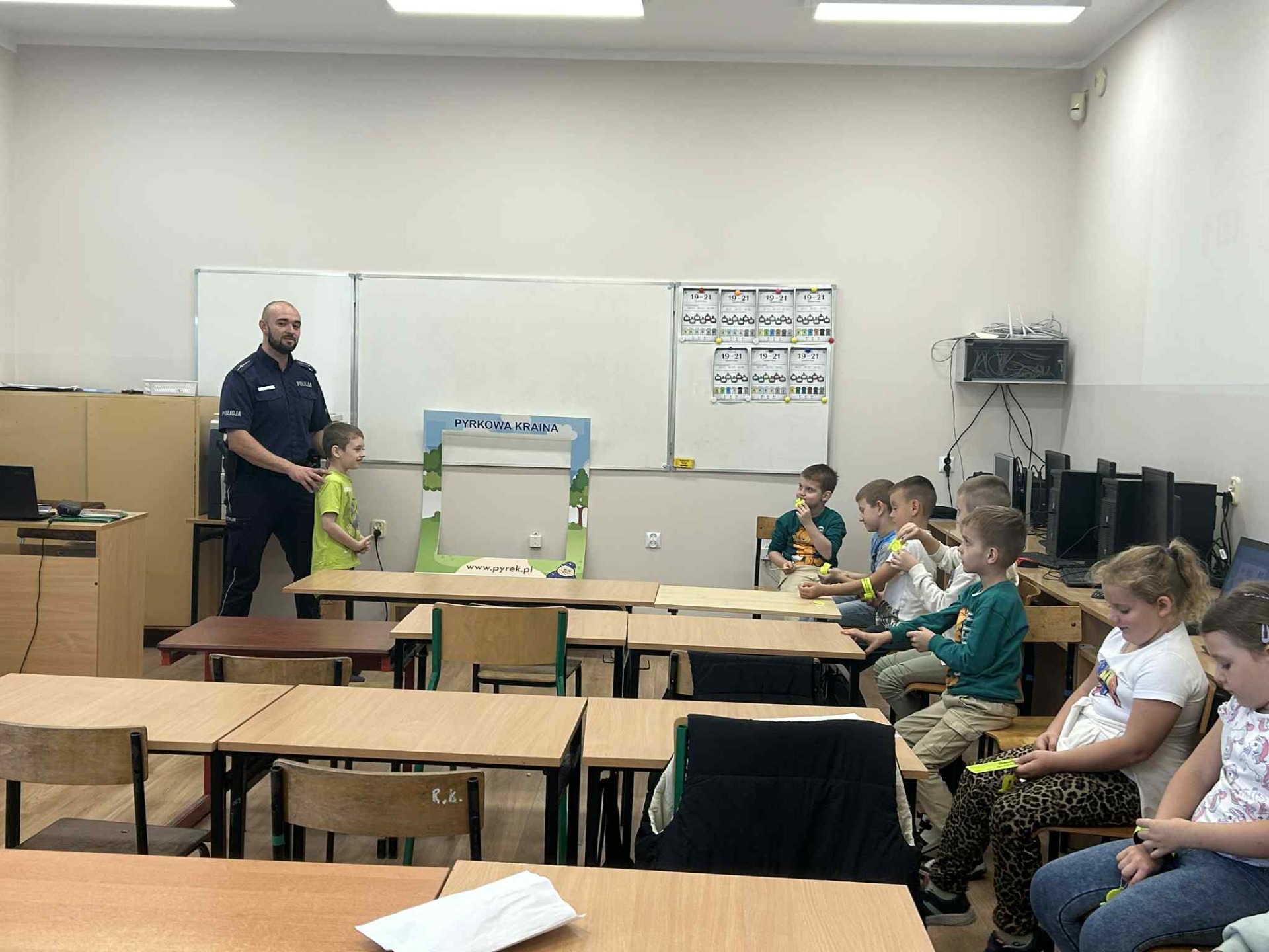 POLICJANT Z WIZYTĄ U PIERWSZOKLASISTÓW