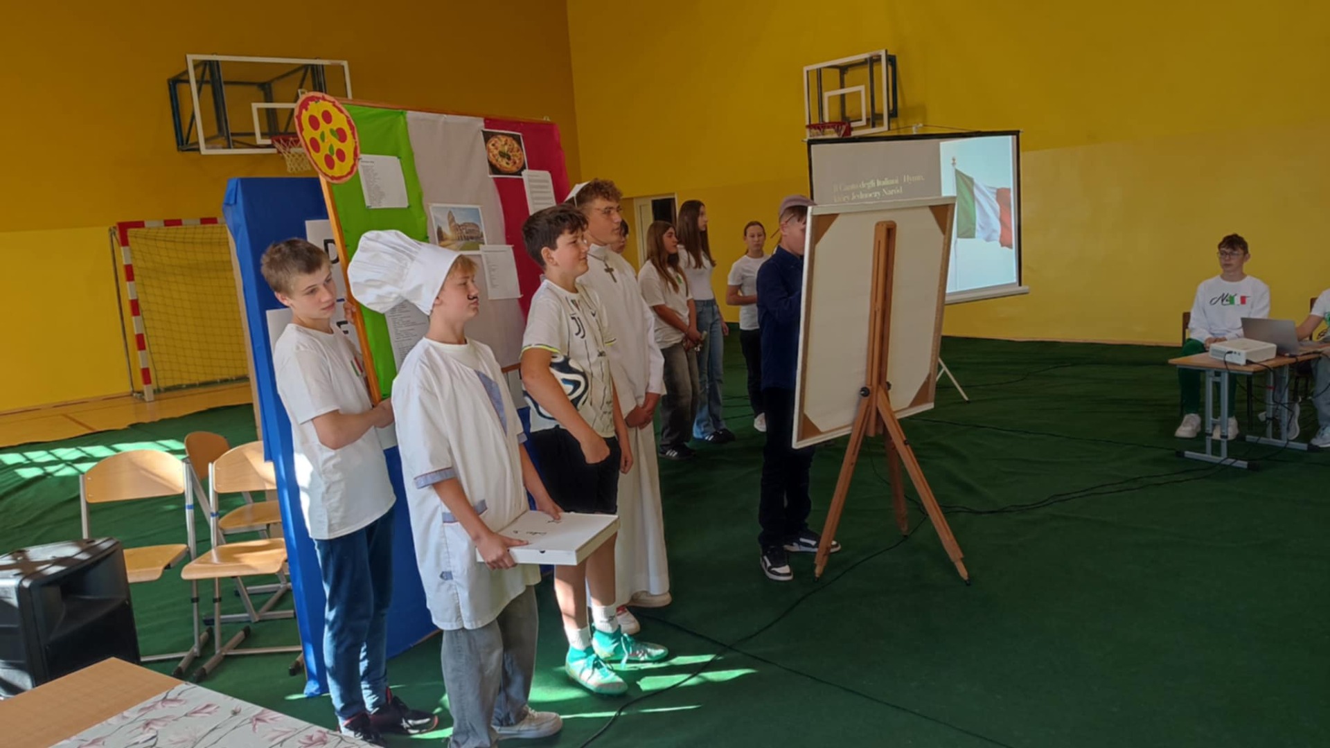 W wyniku losowania uczniom klas 4-8 zostały przydzielone konkretne państwo (kl.4 Hiszpania, kl.5 – Niemcy, kl.6 –Wlk. Brytania, kl.7- Francja, kl.8-Włochy). Następnie zadaniem zespołu klasowego było przygotowanie wystroju pomieszczenia dla danego kraju (gazetka oraz kącik tematyczny) oraz prezentacja danego kraju całej społeczności szkolnej na wspólnym spotkaniu.